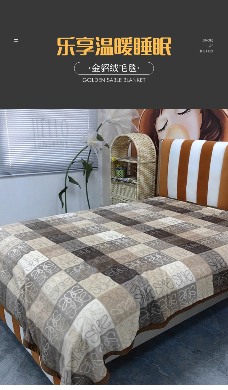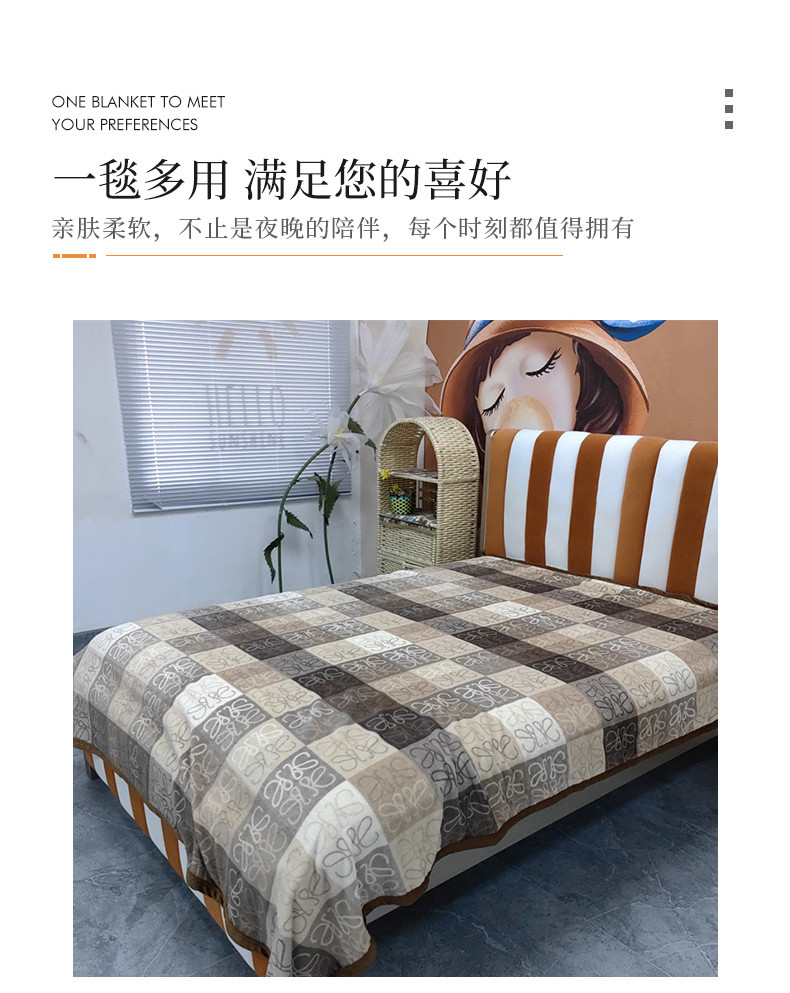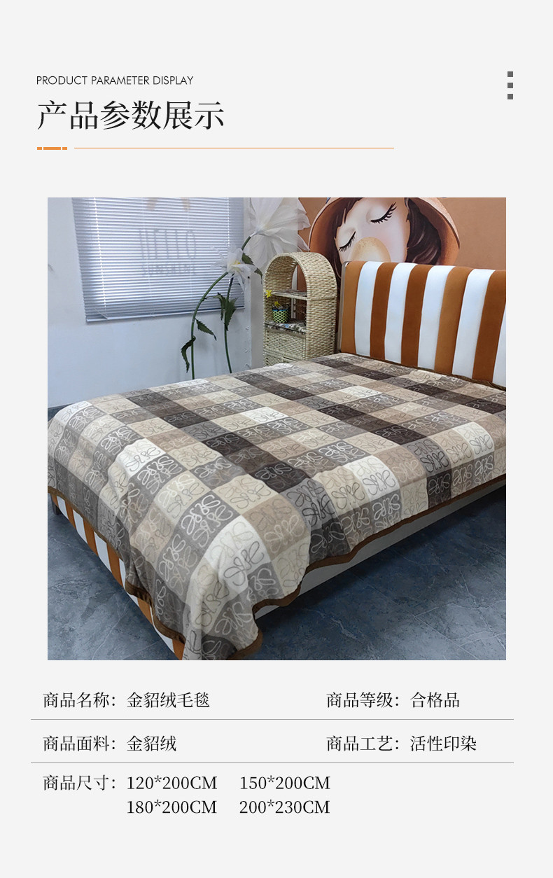 商品名称:爱她美 2023新款300g金貂绒系列加厚包边法莱绒盖毯毛毯子棕大格