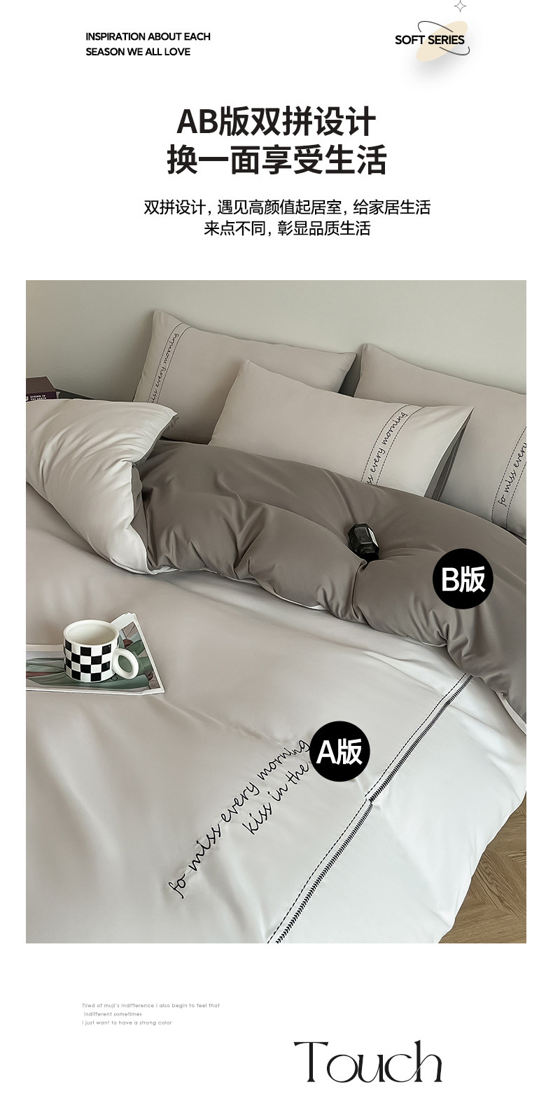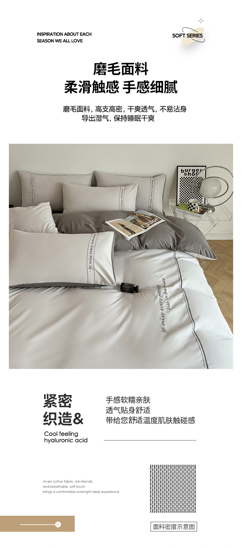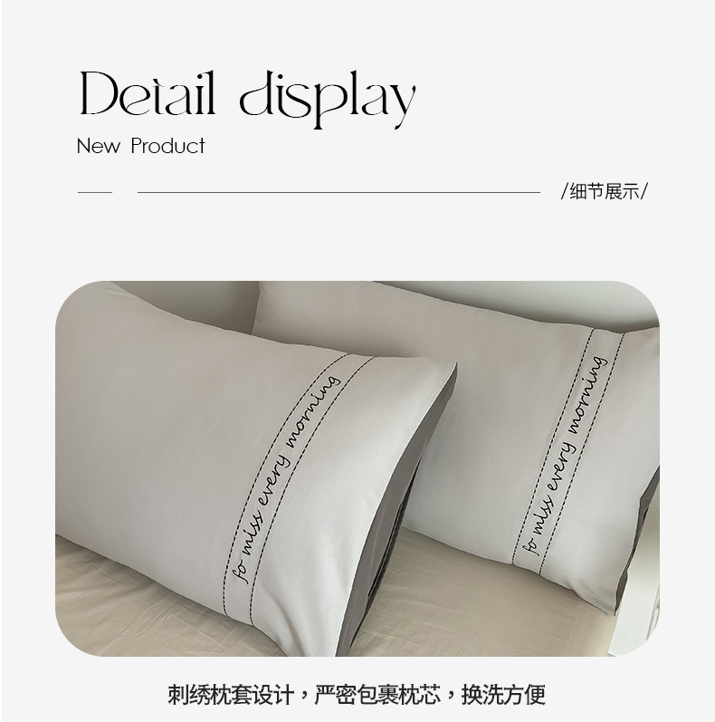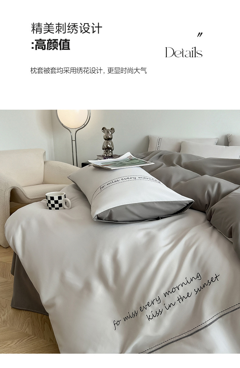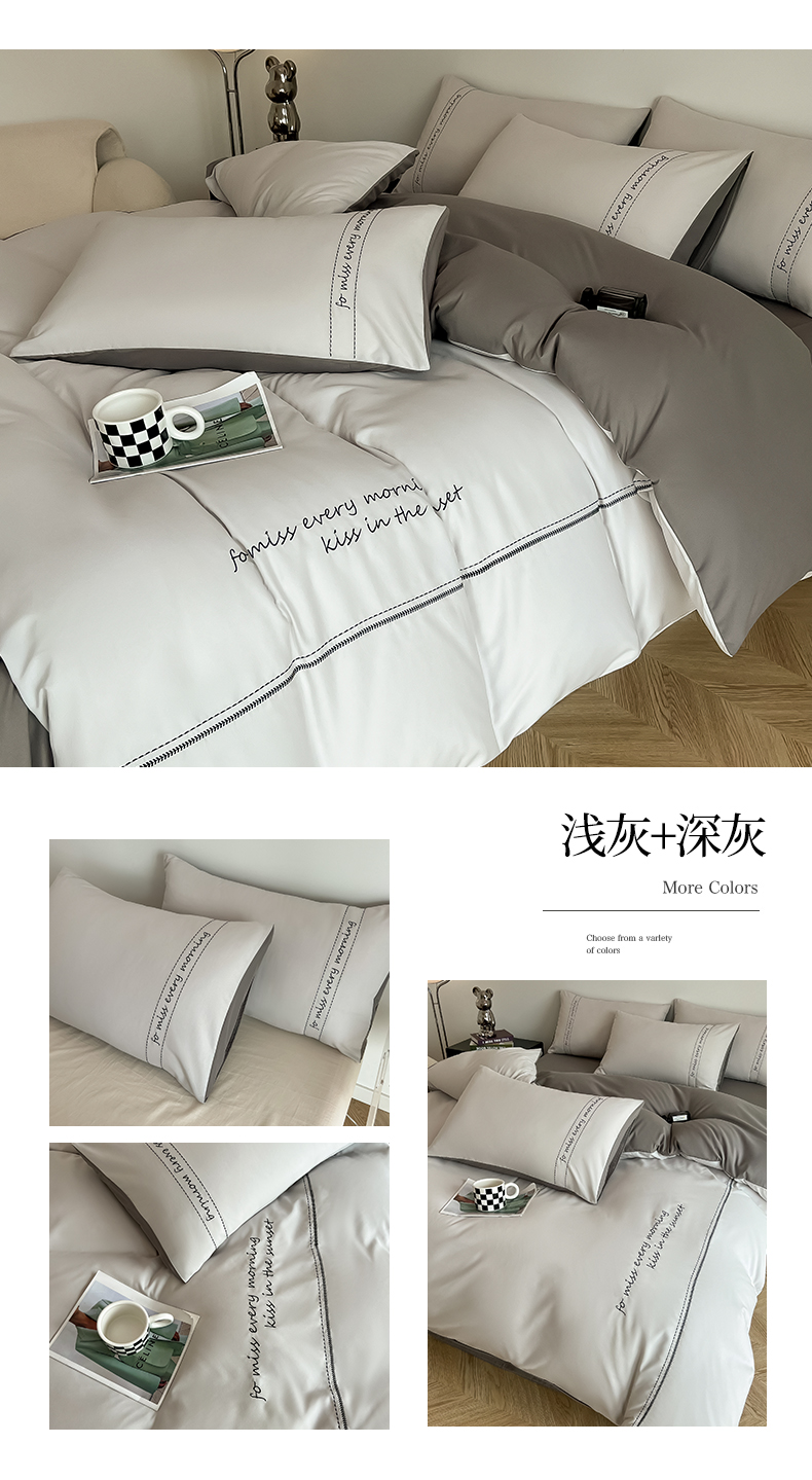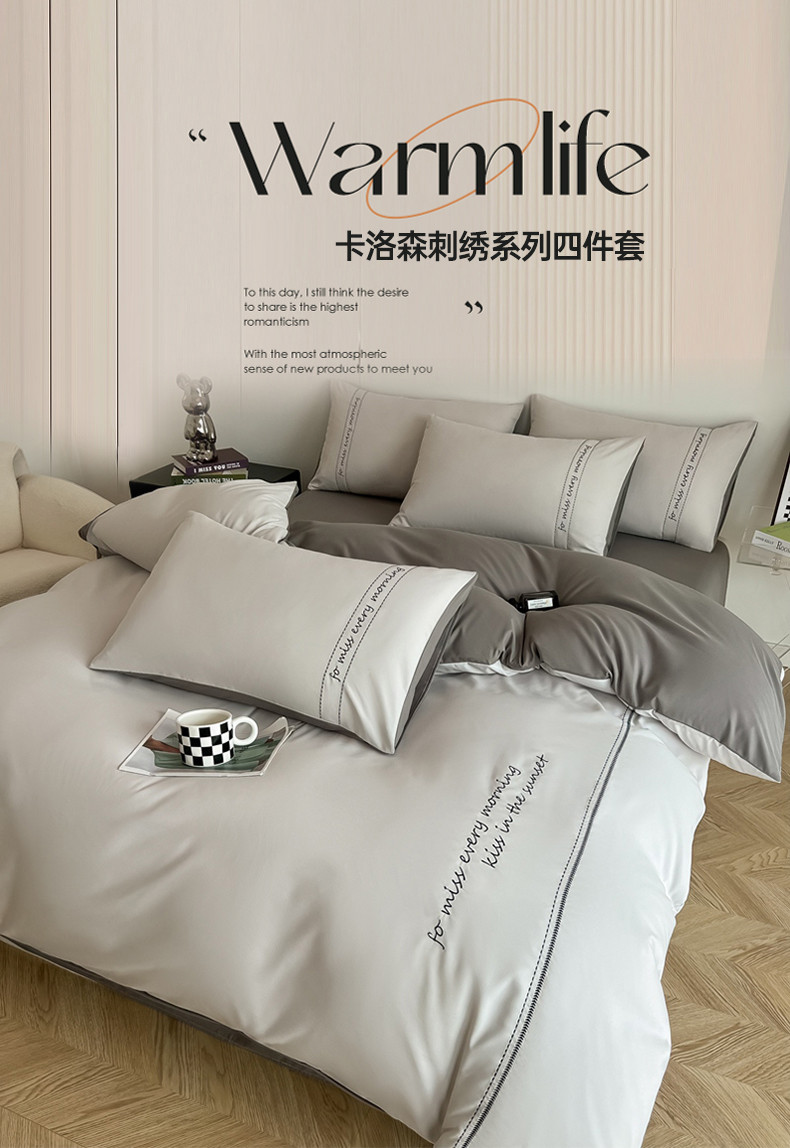 当前位置: 91家纺网 > 商品网购 > 床品套件 > 四件套 > 普通磨毛四件套 > 尤米 2023新款磨毛刺绣纯色双拼卡洛森系列--四件套 浅灰+深灰