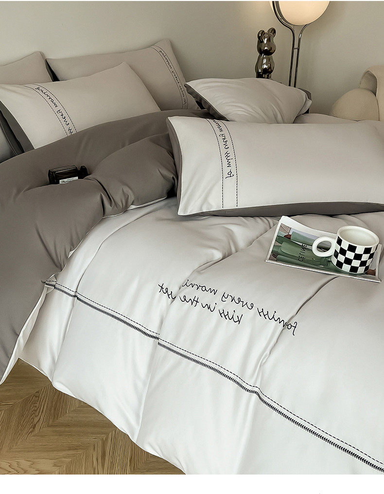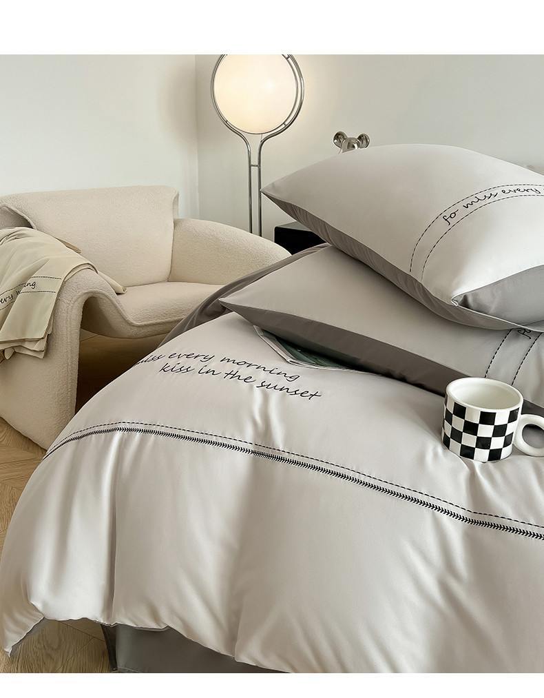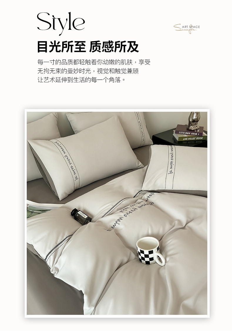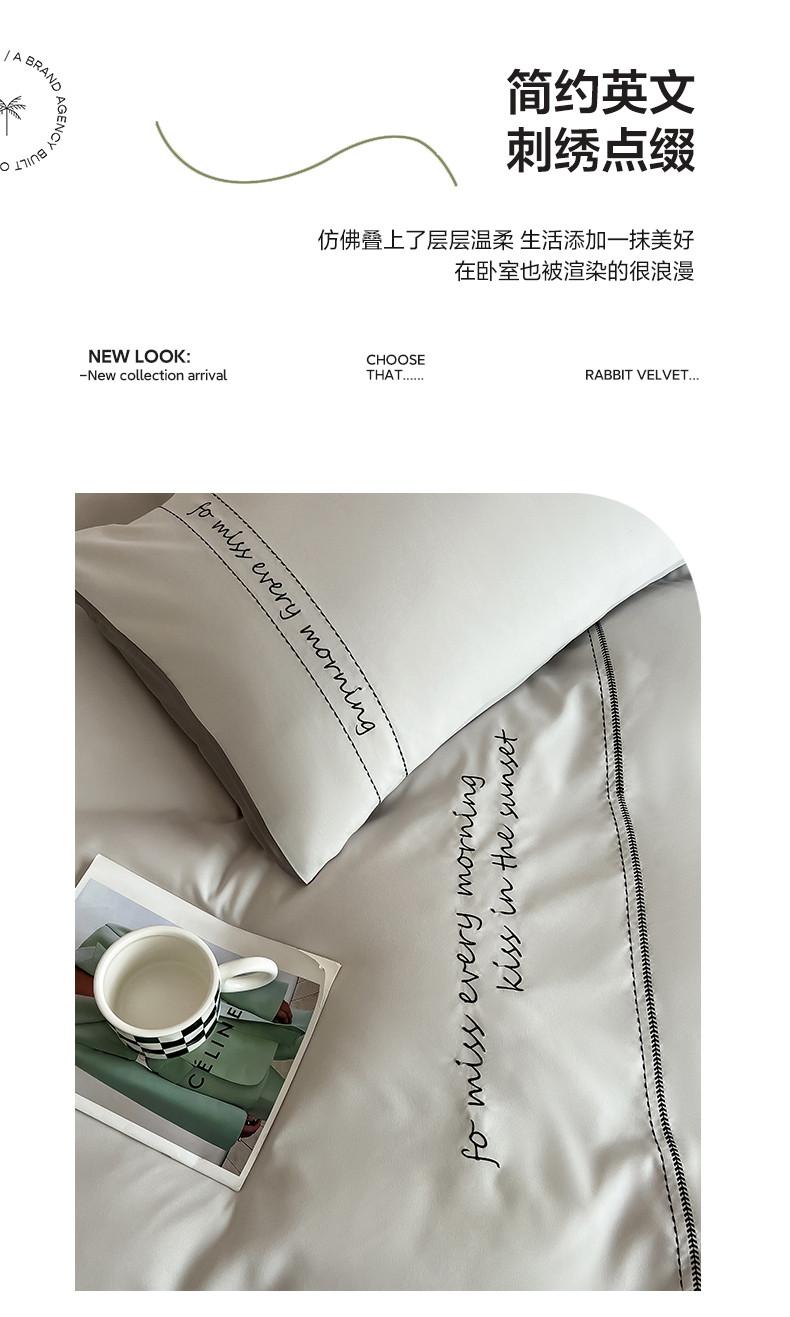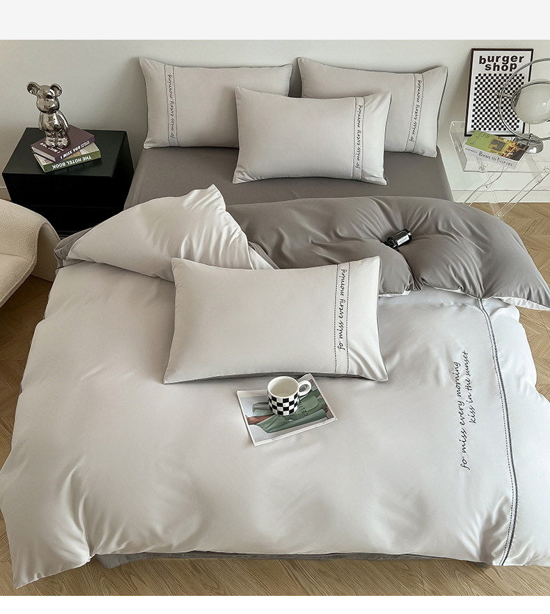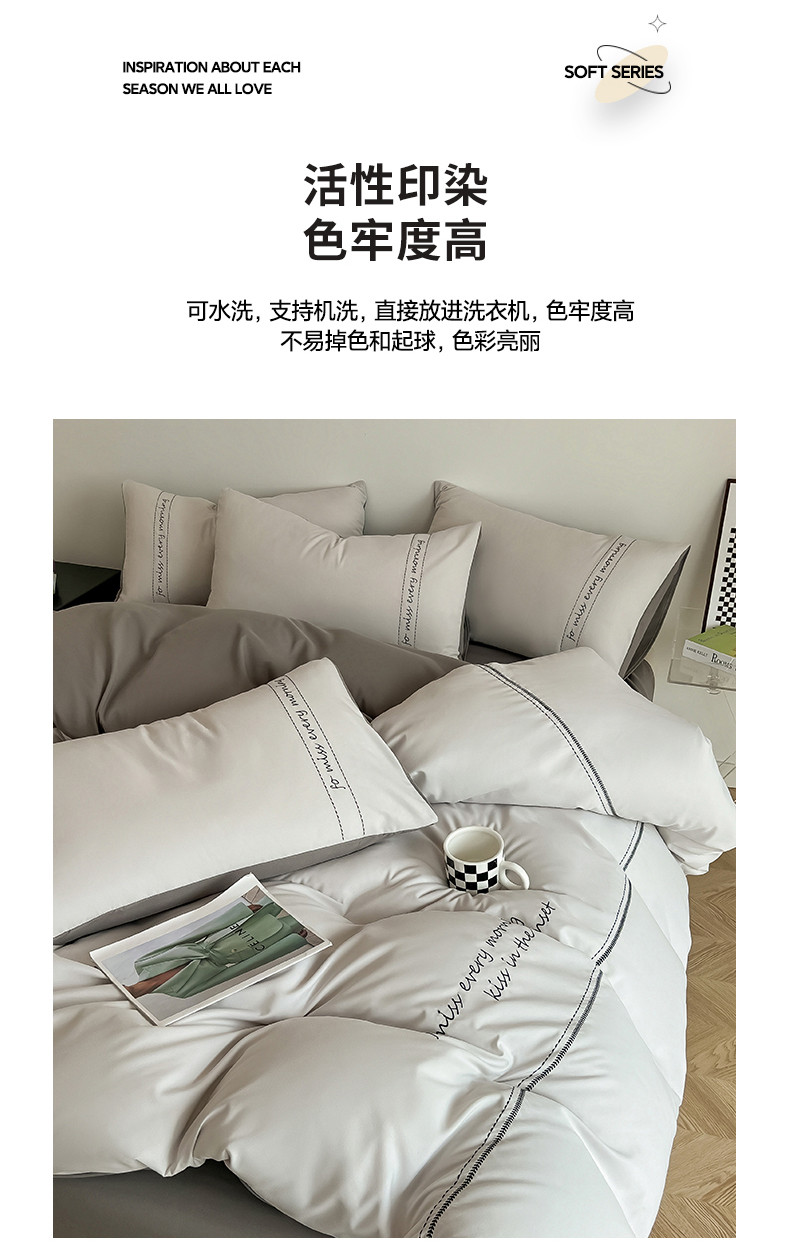 当前位置: 91家纺网 > 商品网购 > 床品套件 > 四件套 > 普通磨毛四件套 > 尤米 2023新款磨毛刺绣纯色双拼卡洛森系列--四件套 浅灰+深灰