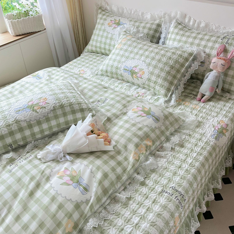 添越 2024小清新韩版蕾丝款花边纯棉夹棉床盖三件套全棉爱意时光蕾丝款,爱意时光蕾丝款