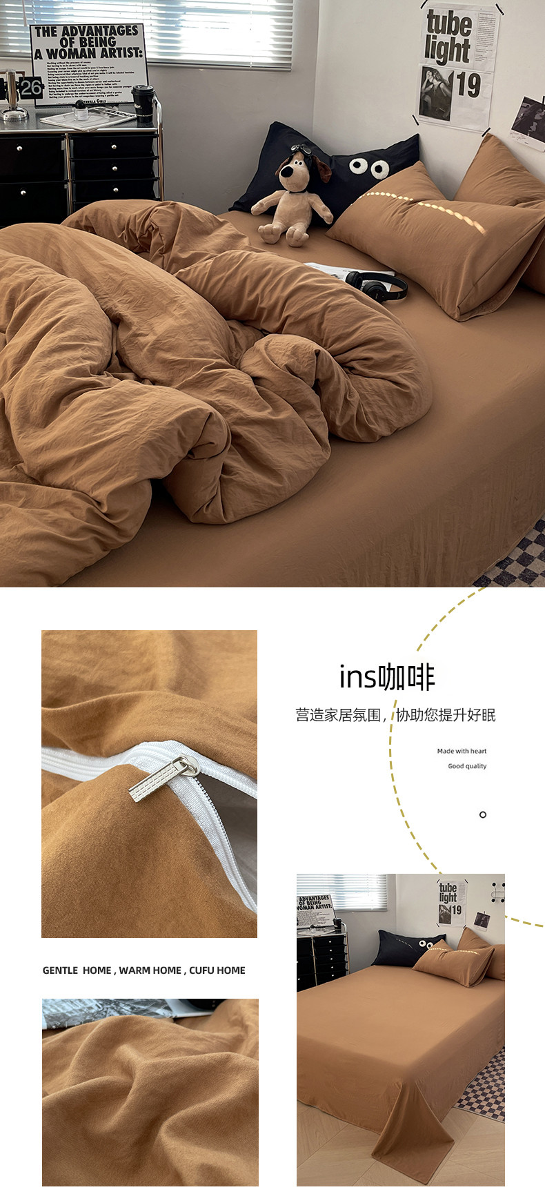 贝拉梦 2023新款ins风超柔亲肤磨毛褶皱水洗棉四件套 ins咖啡