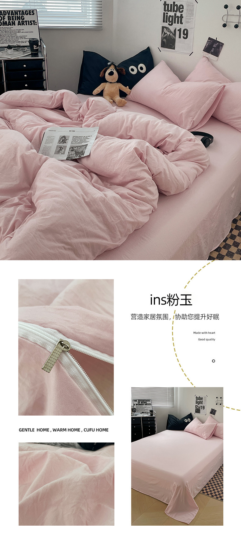 贝拉梦 2023新款ins风超柔亲肤磨毛褶皱水洗棉单被套 ins粉玉