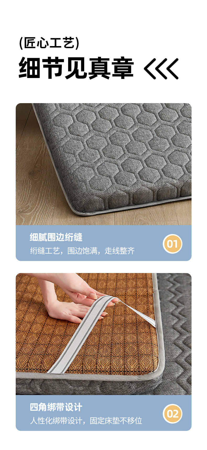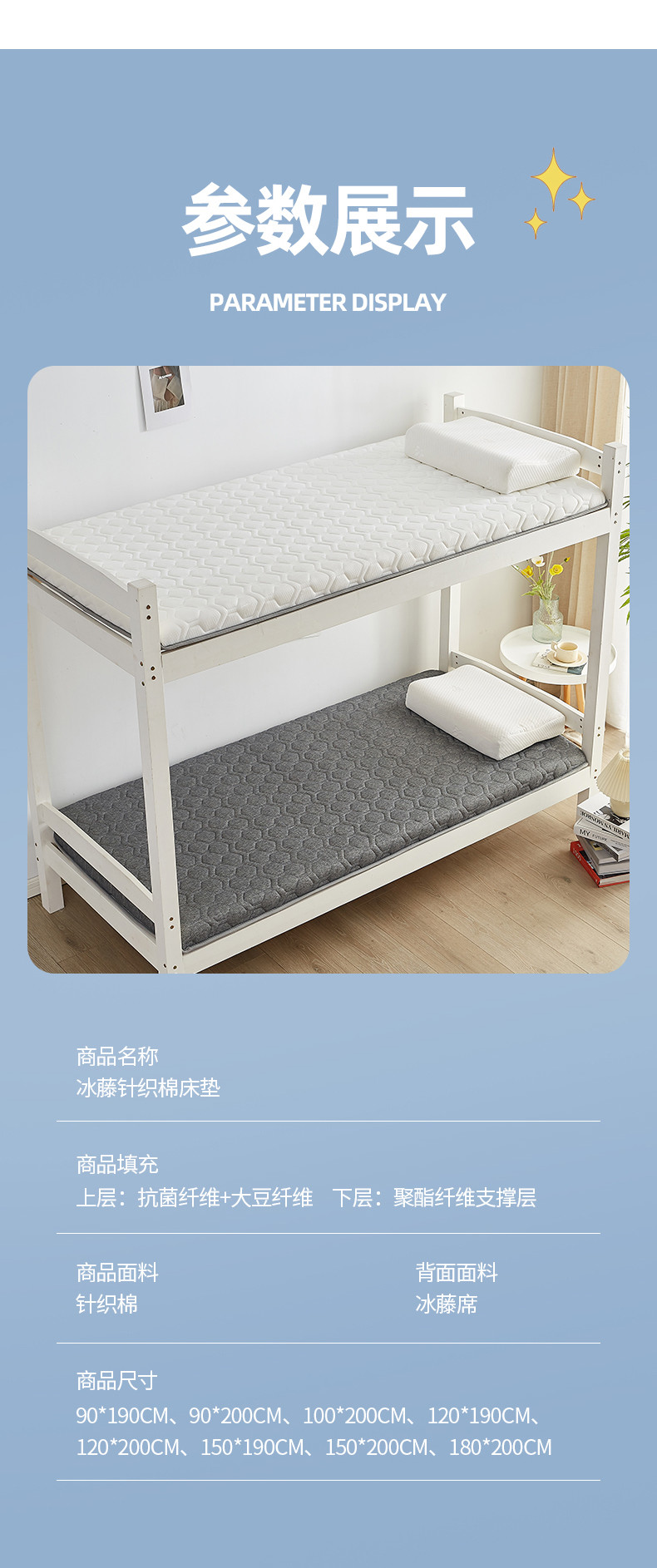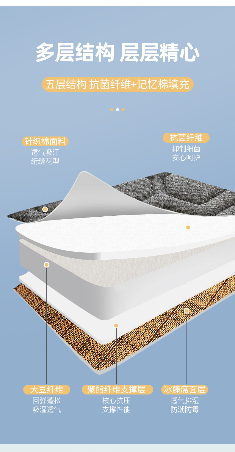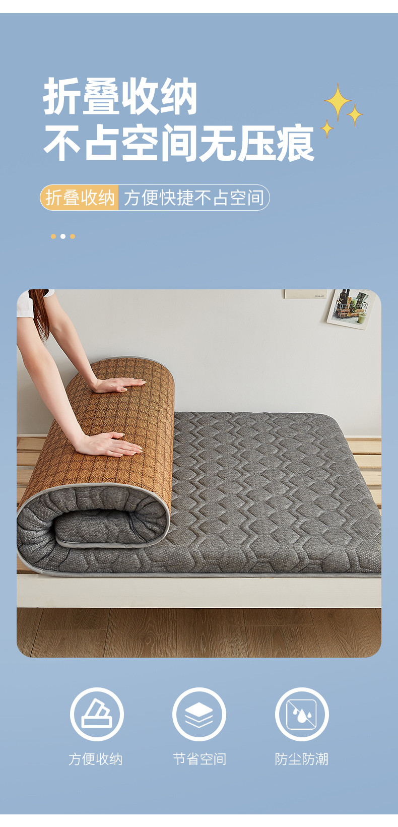 当前位置: 91家纺网 > 商品网购 > 床垫/床褥 > 普通床垫 > 锦丝钰床垫 2025新款学生多功能冰藤针织棉双面四季两用床垫 格子灰