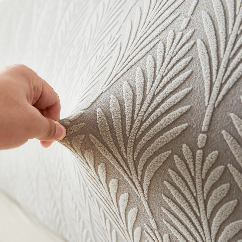 商品名称:逐日沙发套 2023新款纯色提花床头罩叶恋系列 叶恋-浅灰色