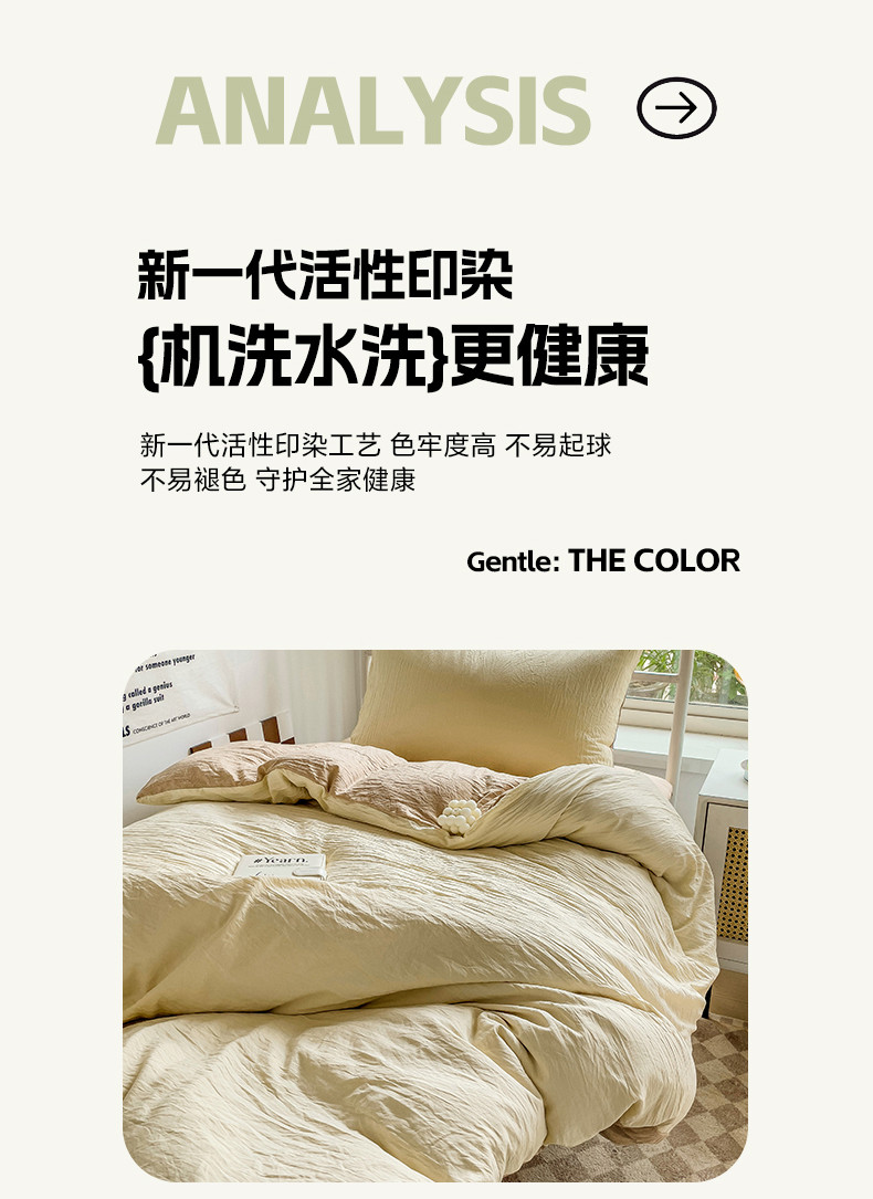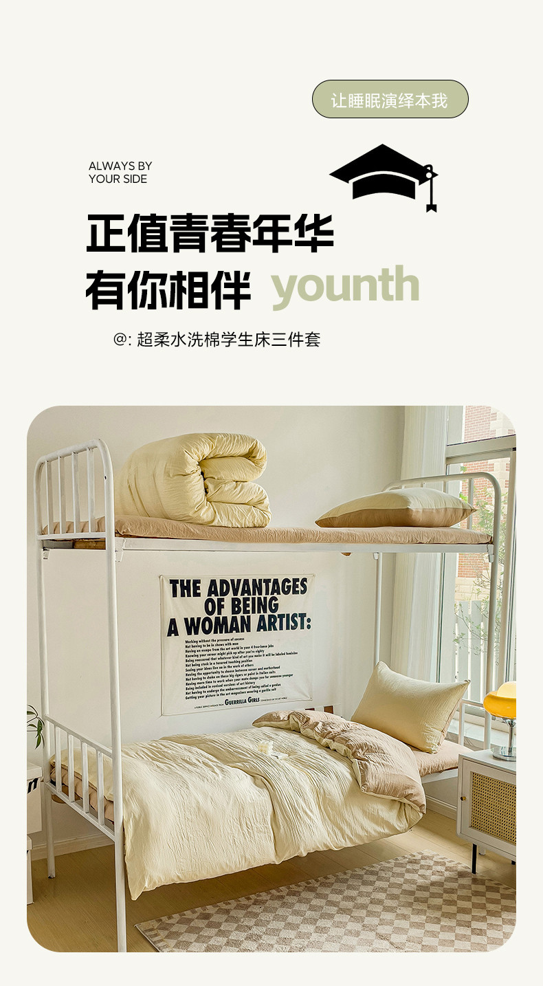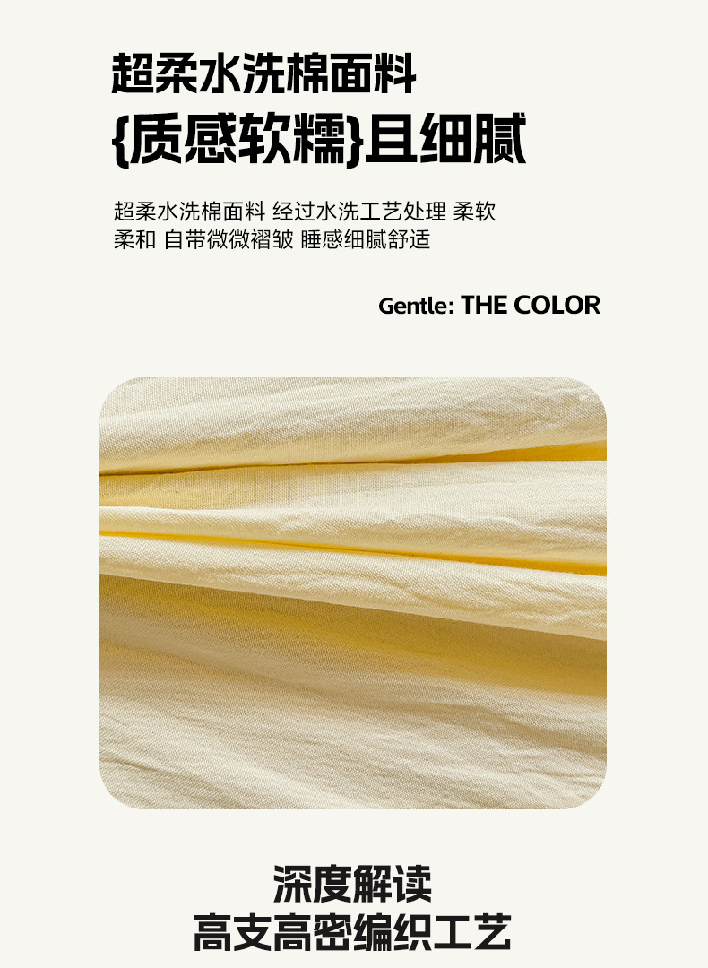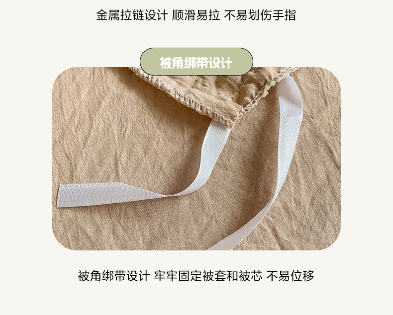 商品名称:水墨江南 2023新款超柔水洗棉褶皱款学生床三件套 米黄中驼