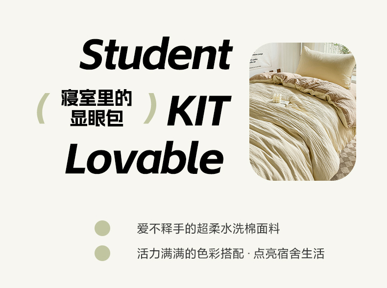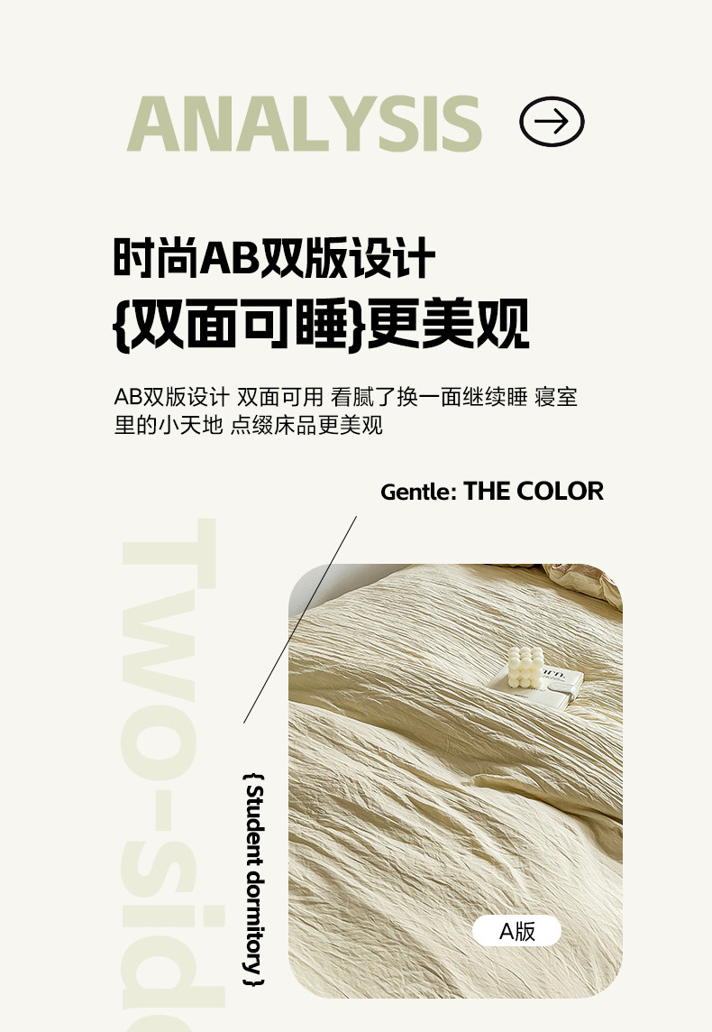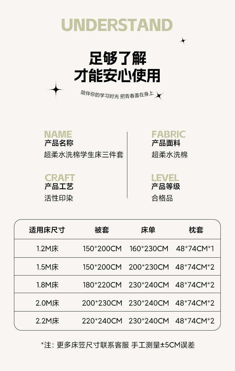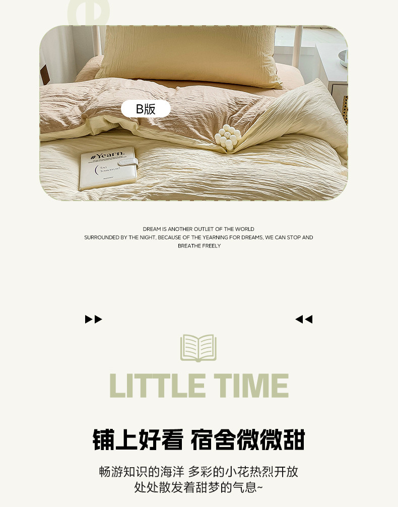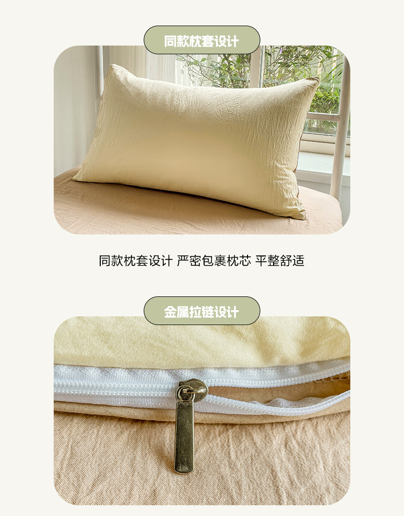 商品名称:水墨江南 2023新款超柔水洗棉褶皱款学生床三件套 米黄中驼