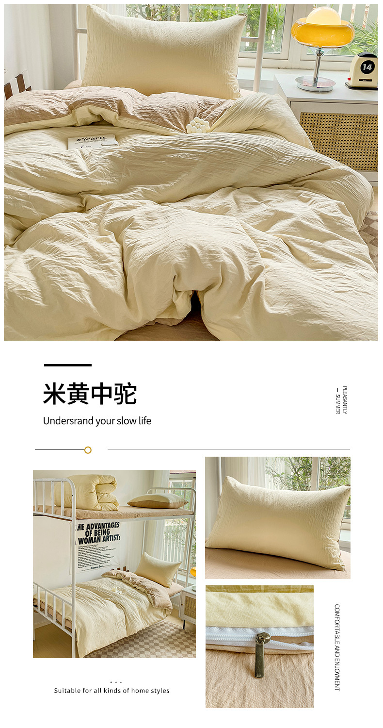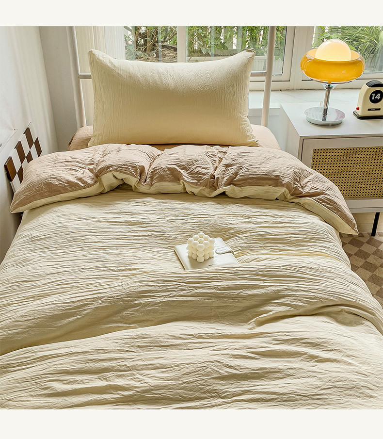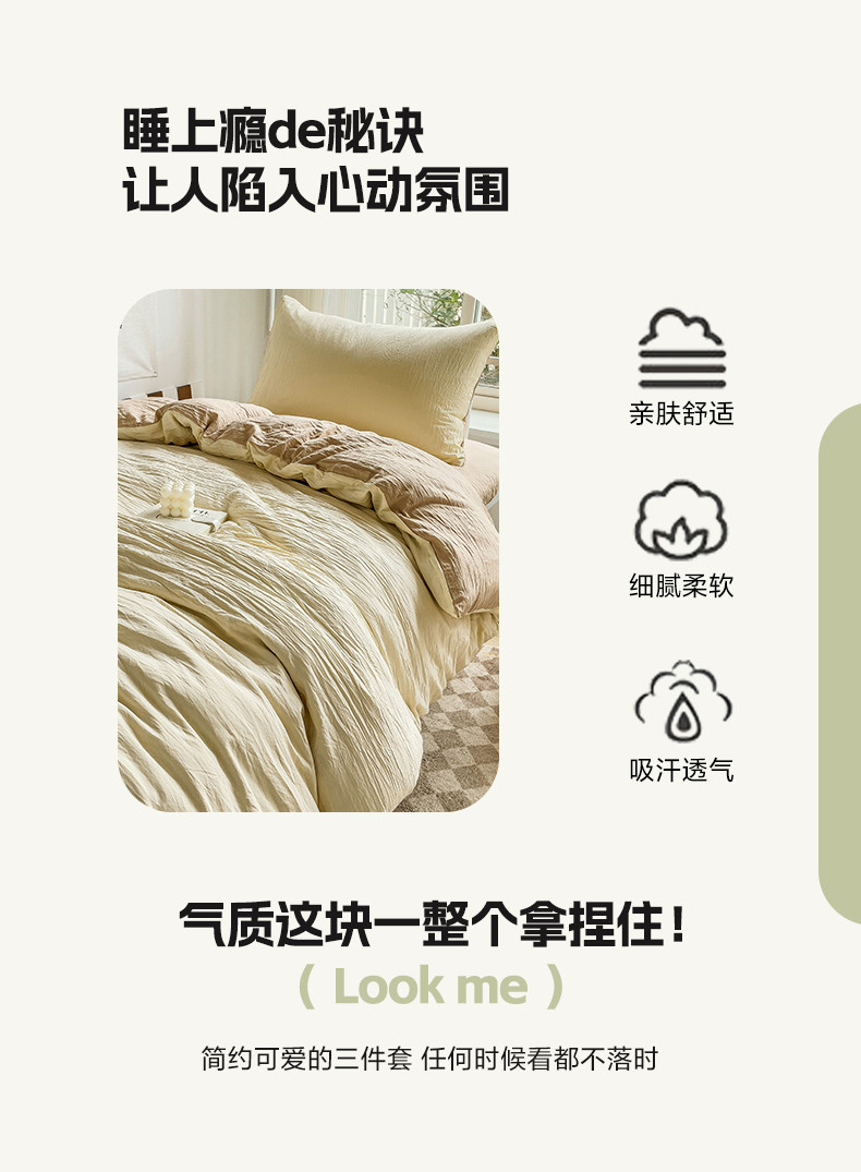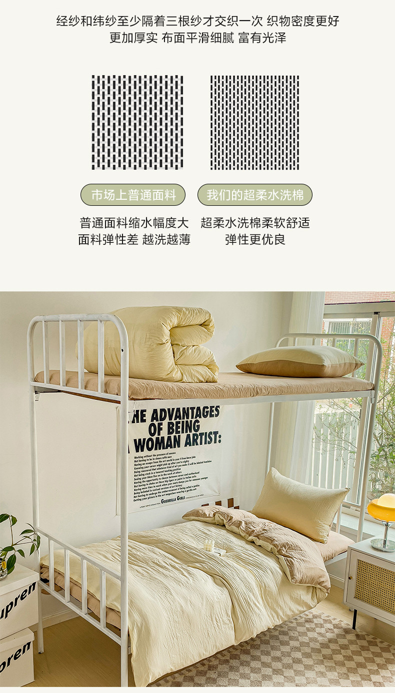 水墨江南 2023新款超柔水洗棉褶皱款学生床三件套 米黄中驼