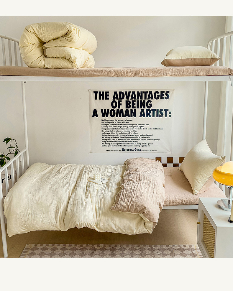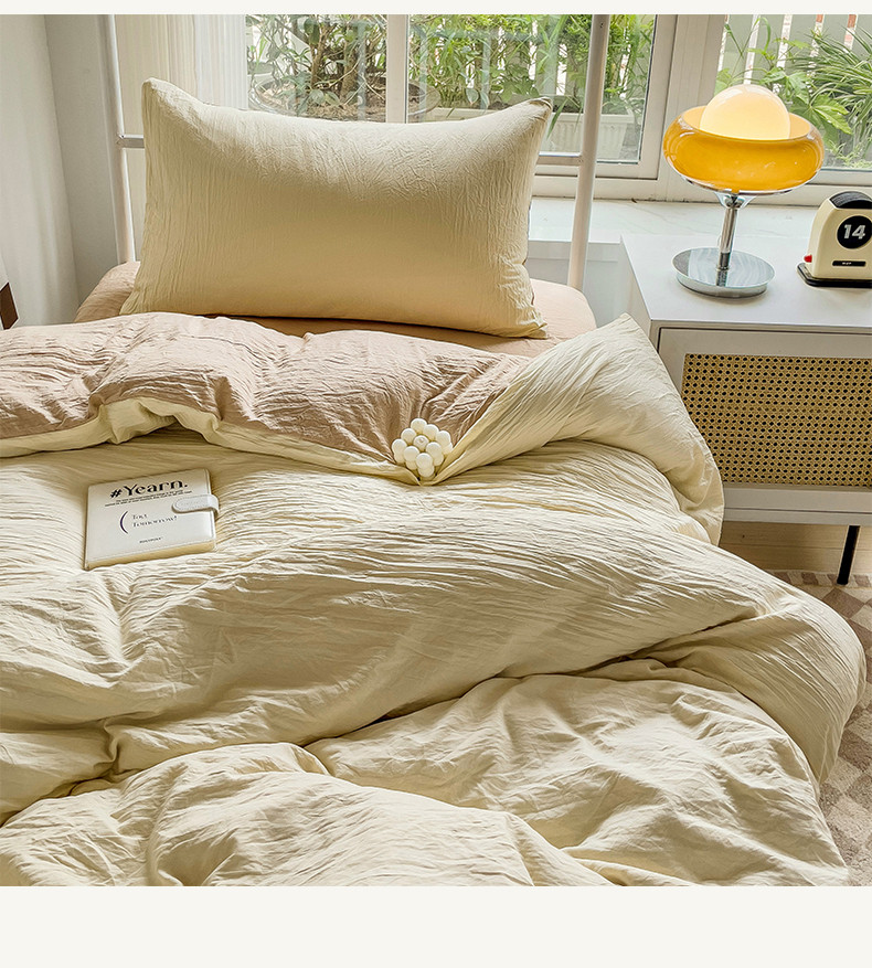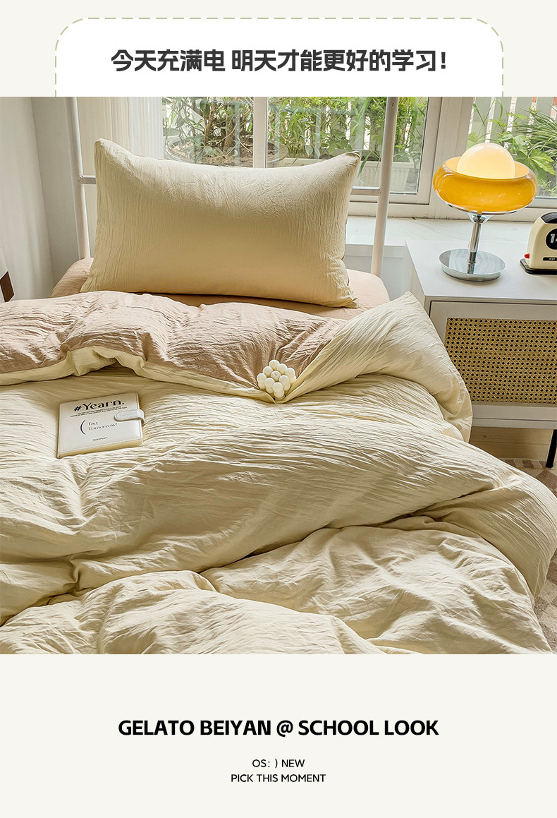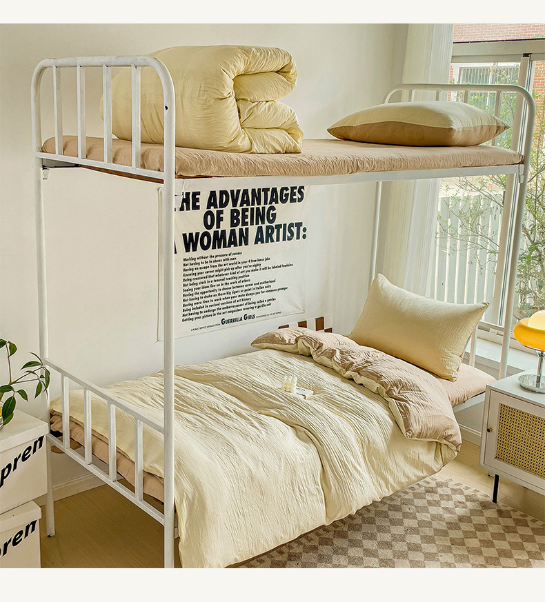 水墨江南 2023新款超柔水洗棉褶皱款学生床三件套 米黄中驼