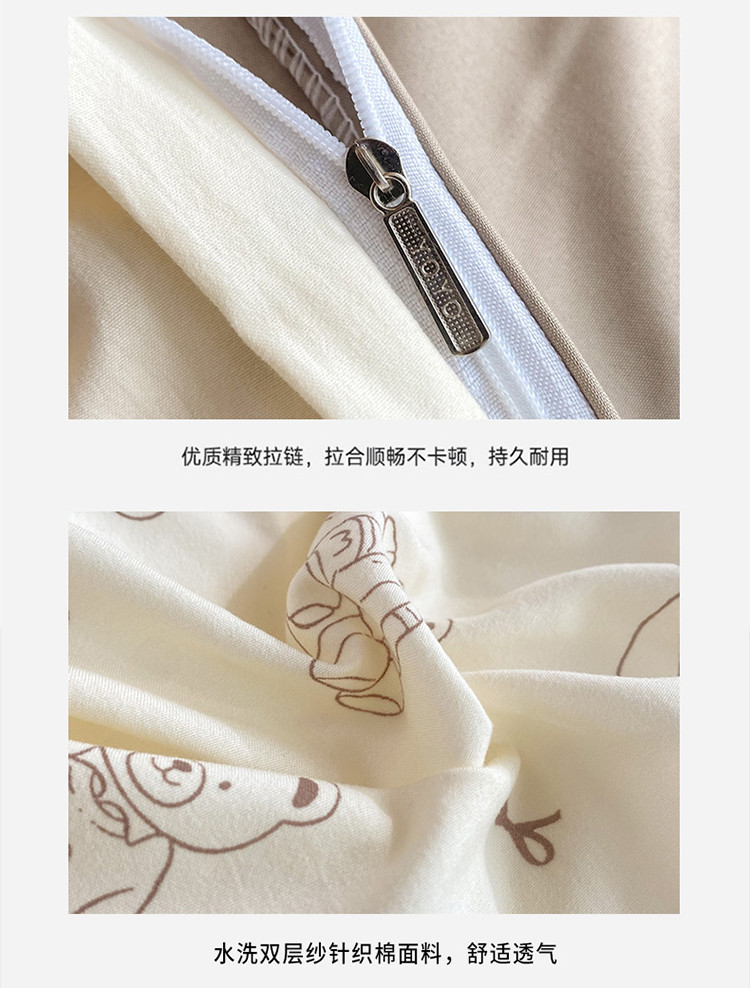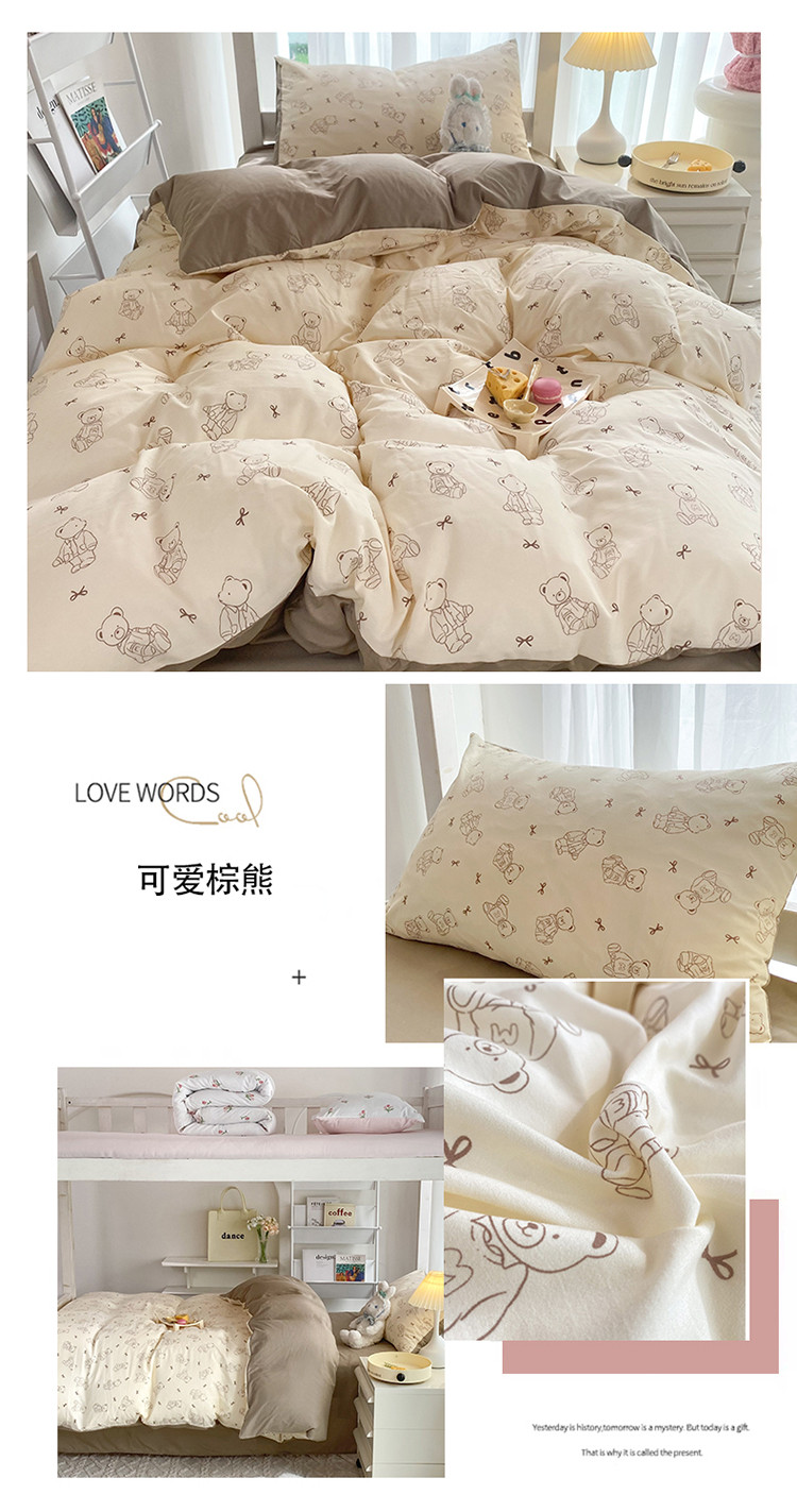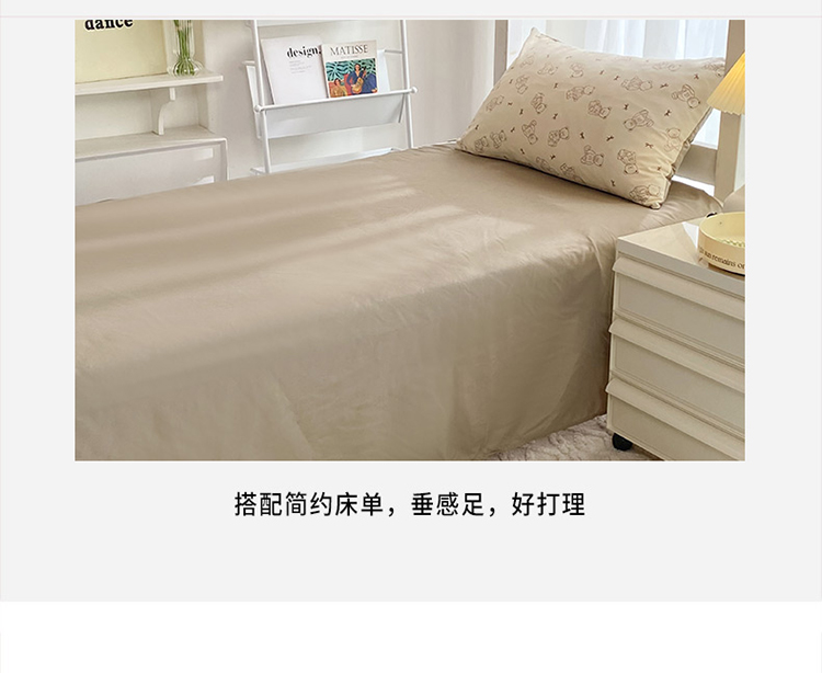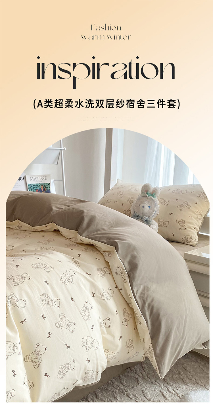 商品名称:妖妖家纺 2023新款超柔水洗双层纱三件套宿舍床 可爱棕熊