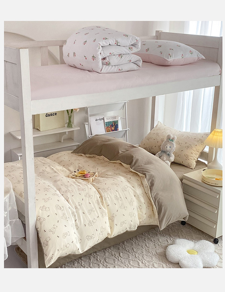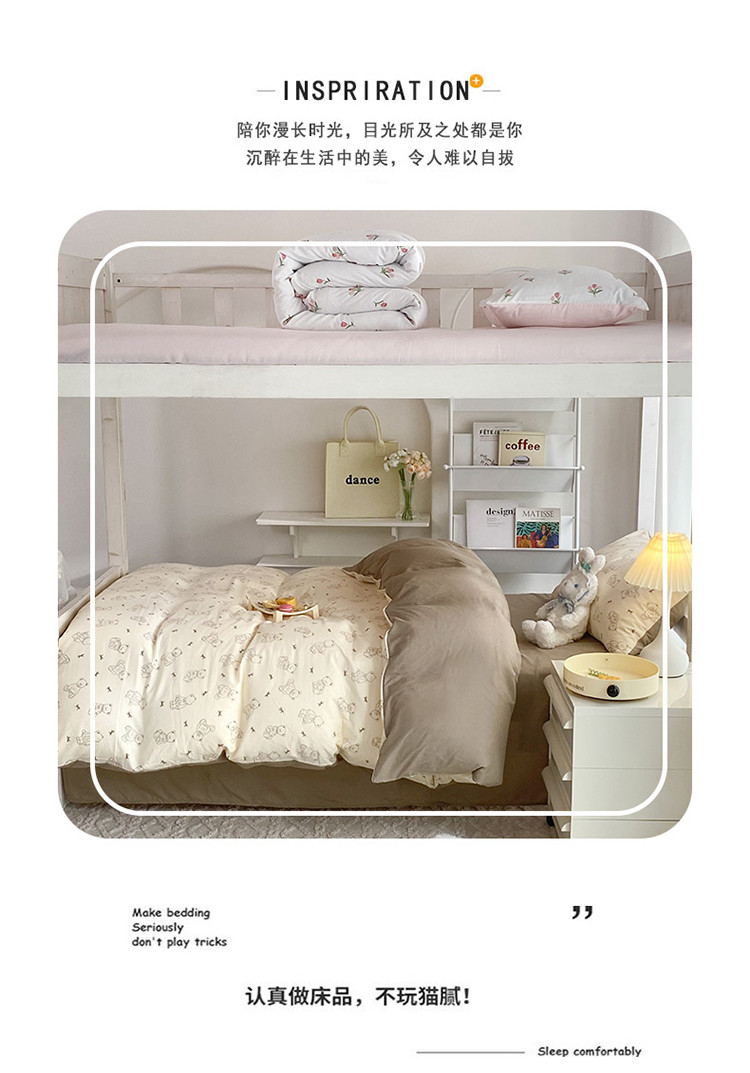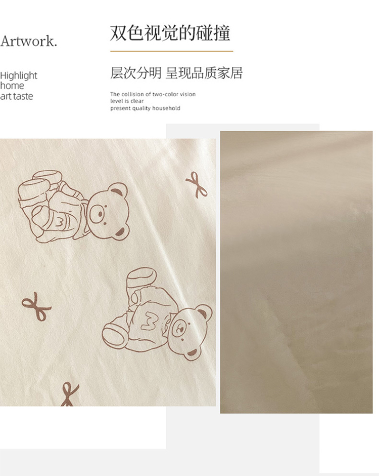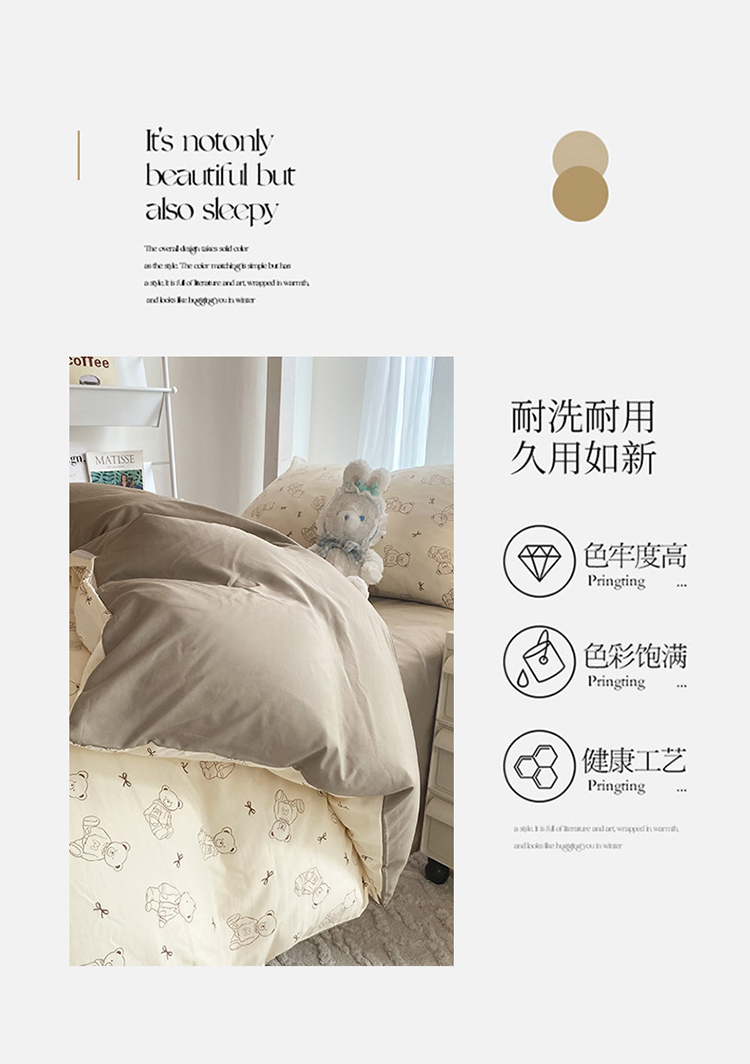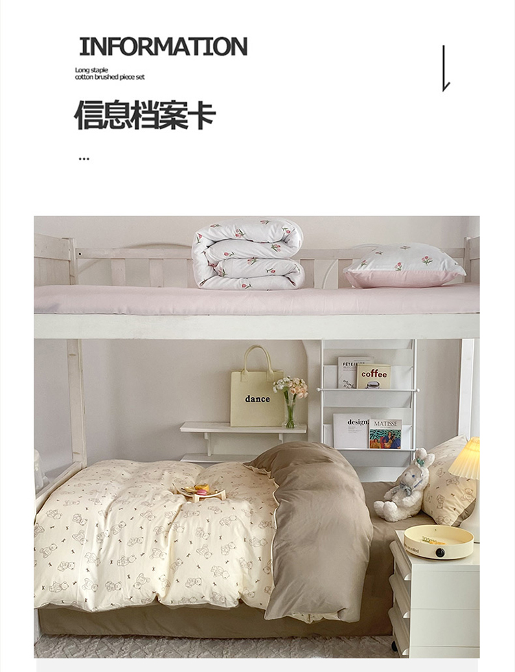 商品名称:妖妖家纺 2023新款超柔水洗双层纱三件套宿舍床 可爱棕熊