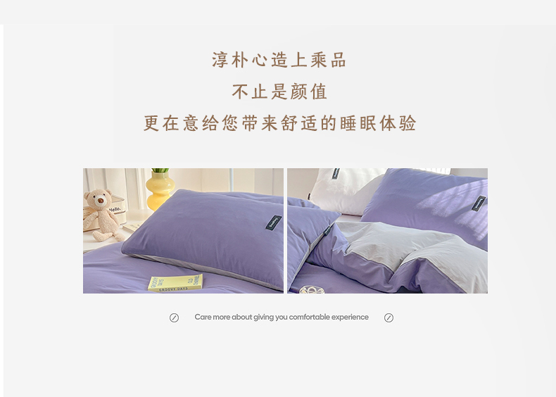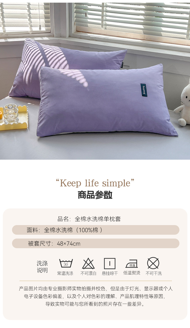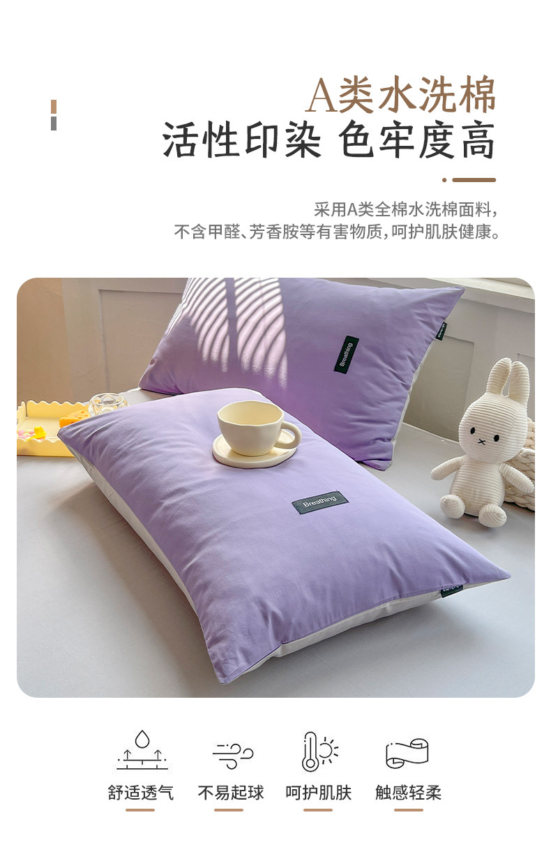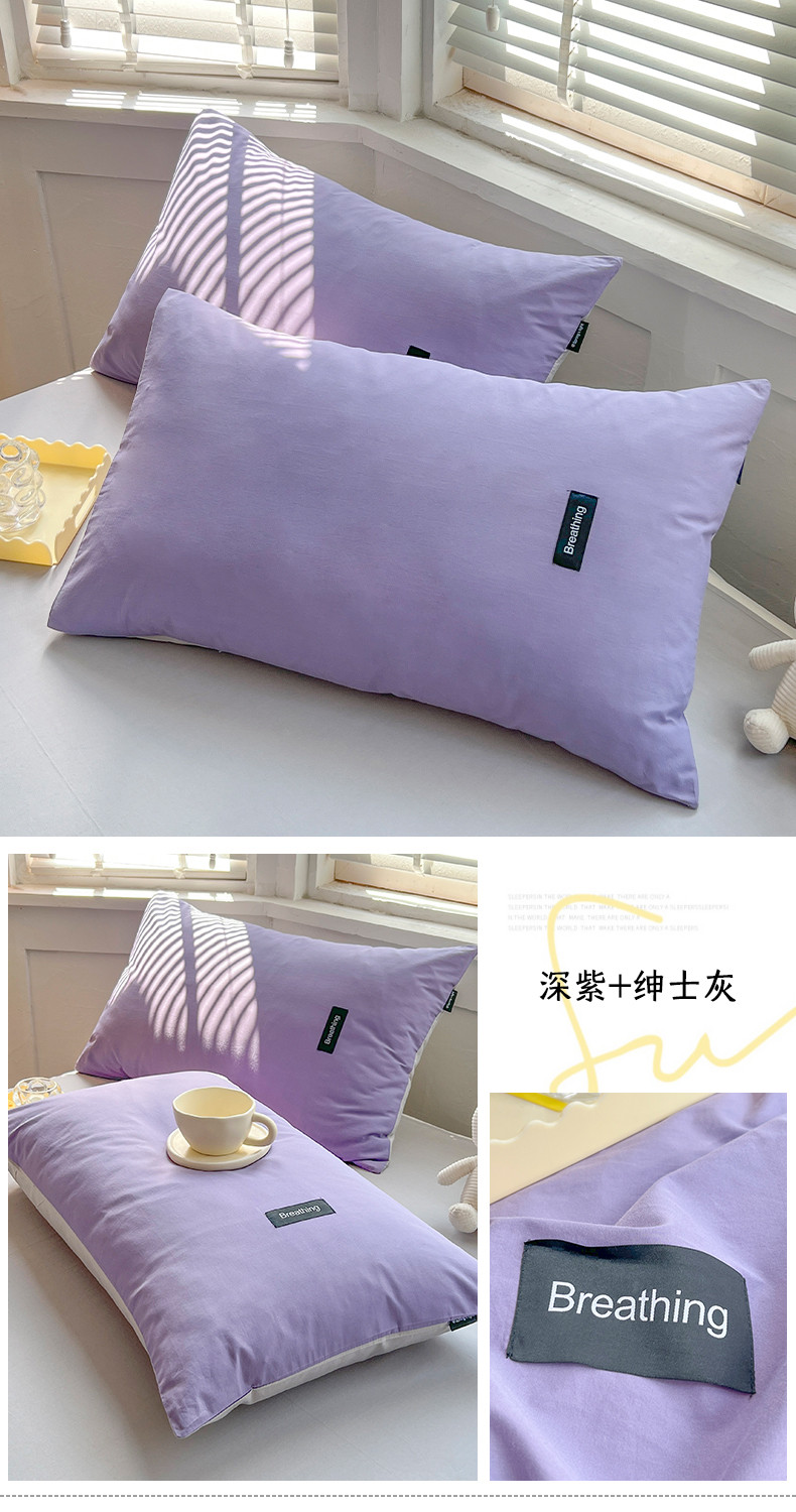 商品名称:绵庭家纺 2023新款全棉水洗棉拼色单品枕套 深紫+绅士灰