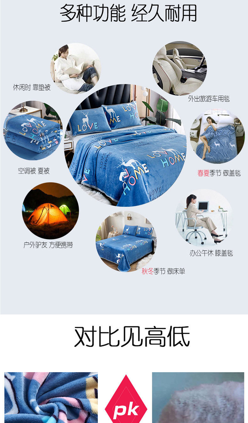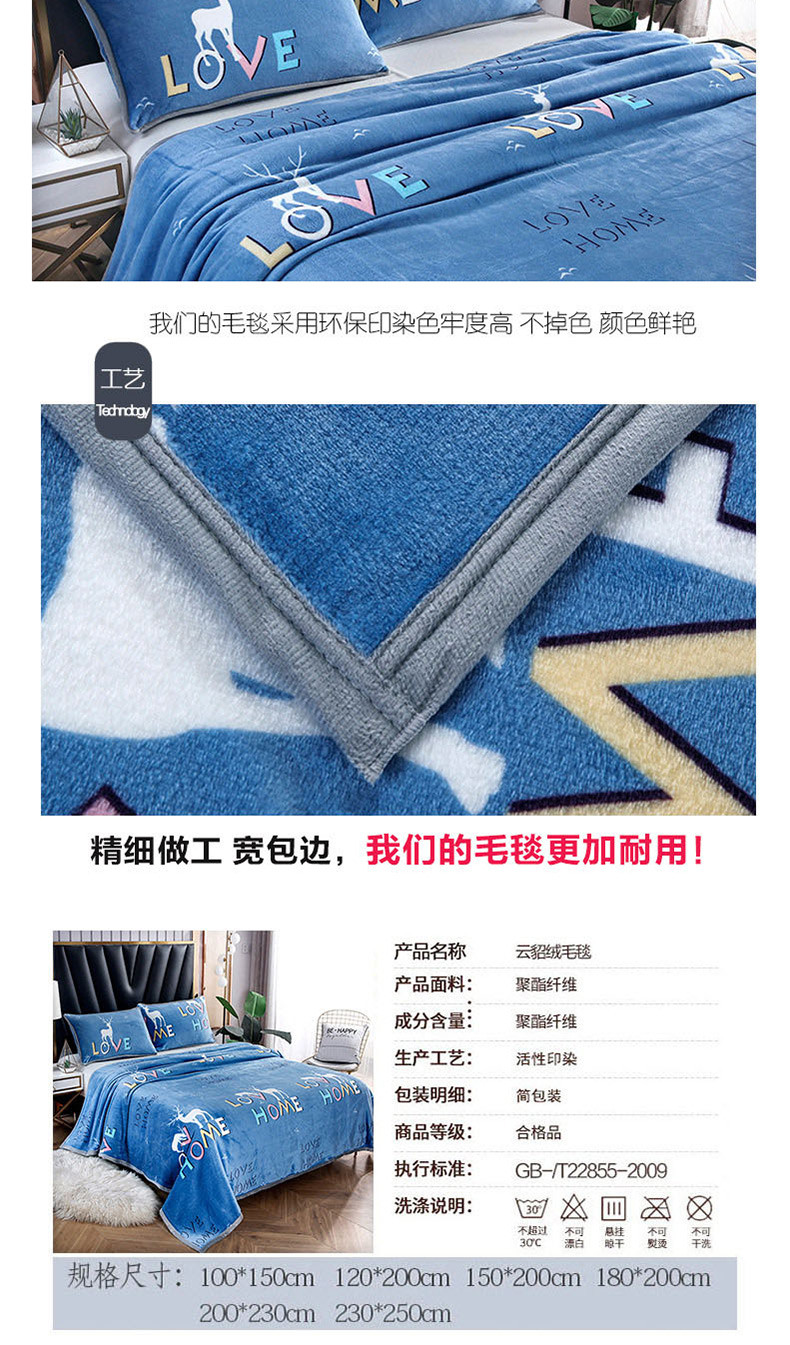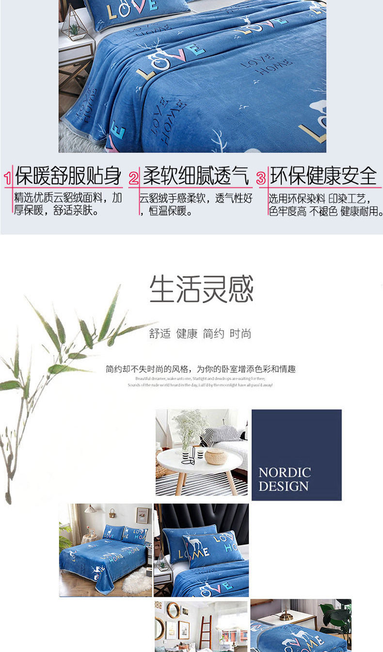 当前位置: 91家纺网 > 商品网购 > 毛毯休闲毯绒毯 > 法莱绒毯 > 赋雅 新款300克双面绒毯子超柔加厚云貂绒法莱绒 爱家