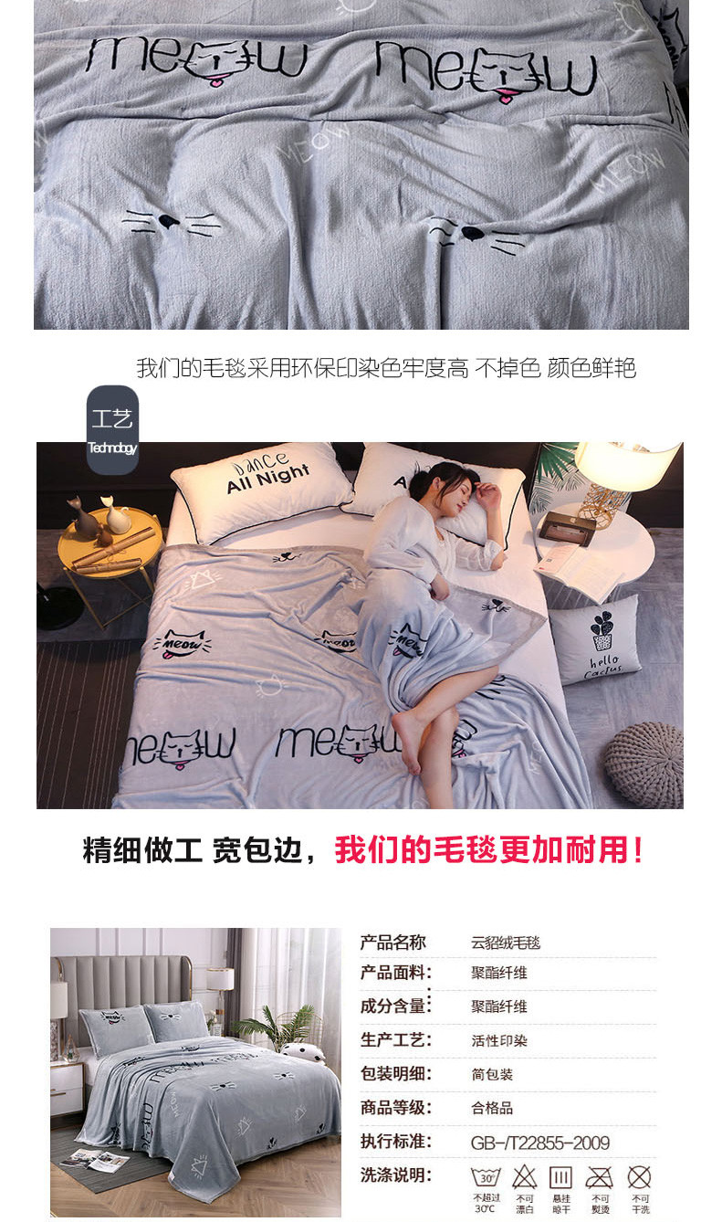 当前位置: 91家纺网 > 商品网购 > 毛毯休闲毯绒毯 > 法莱绒毯 > 赋雅 新款300克双面绒毯子超柔加厚云貂绒法莱绒 喵喵喵