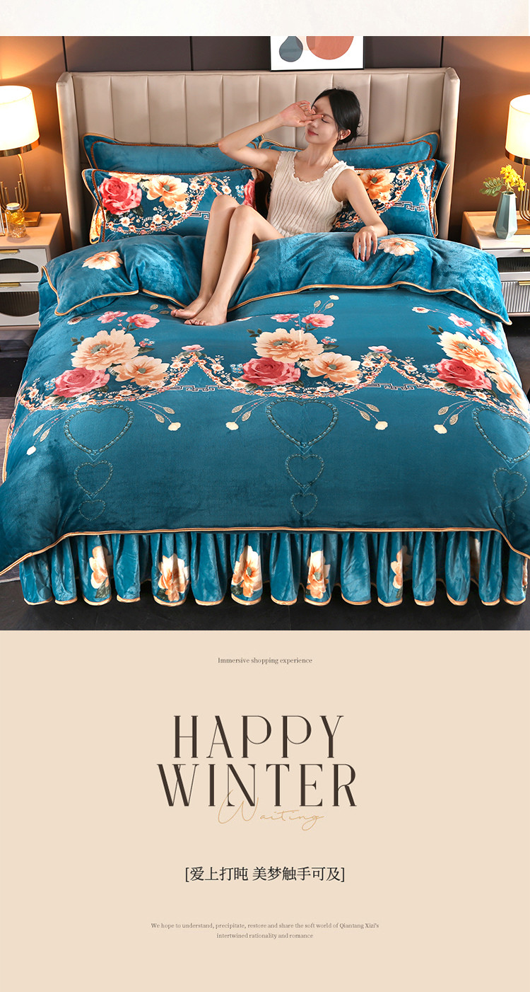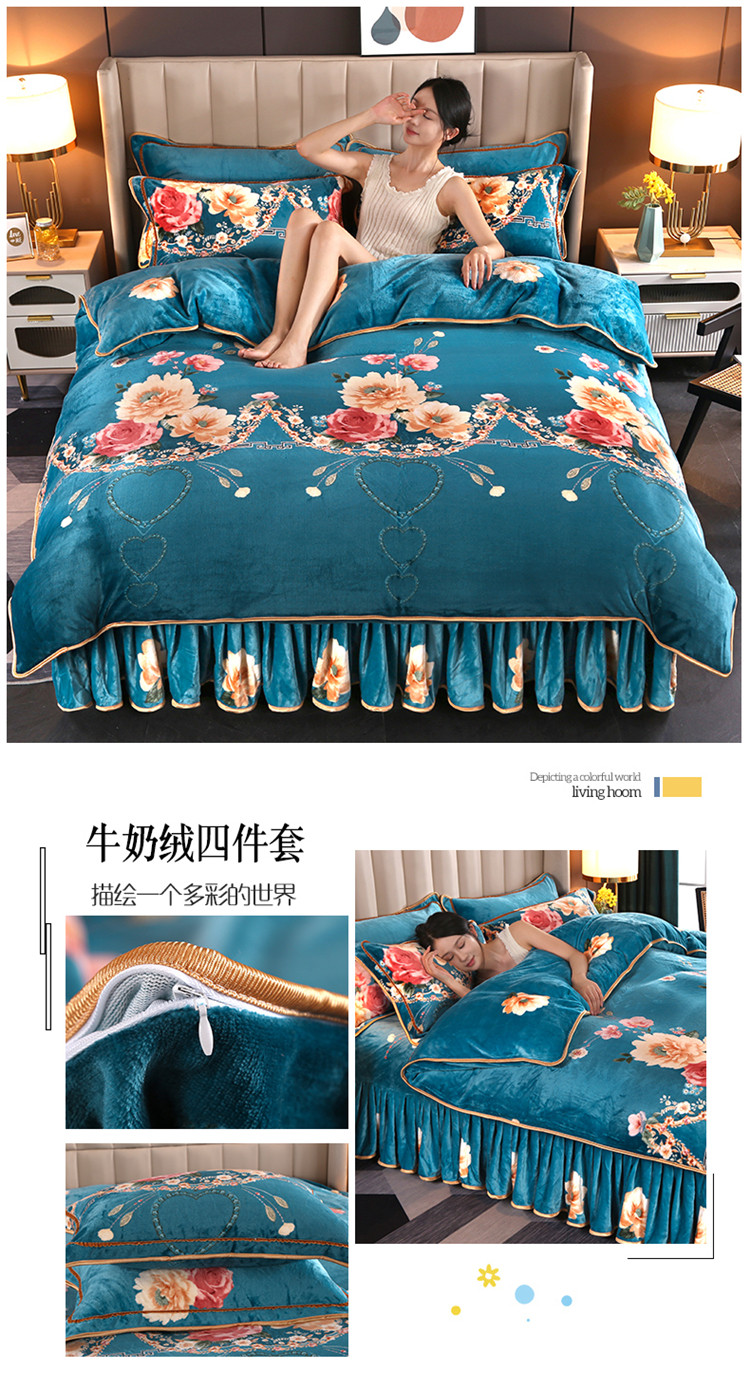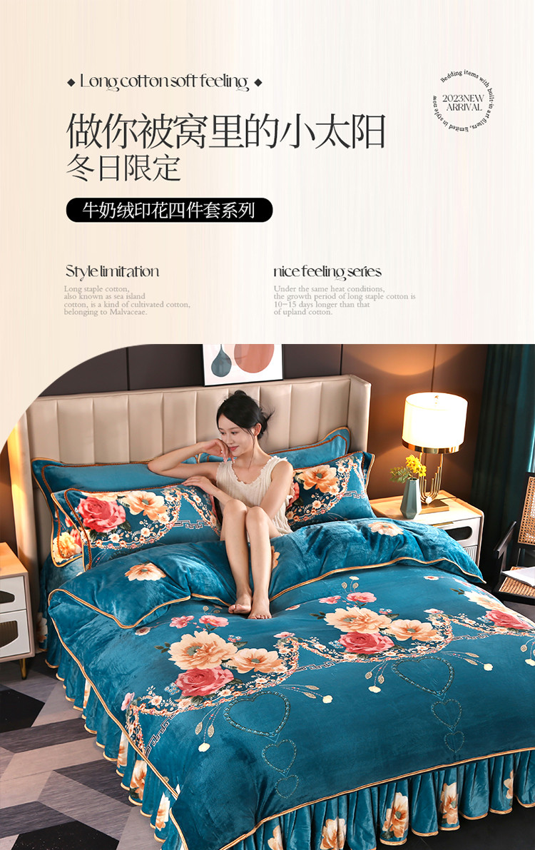商品名称:莱凯家纺 2023新款牛奶绒轻奢四件套【七斤】花韵柔情