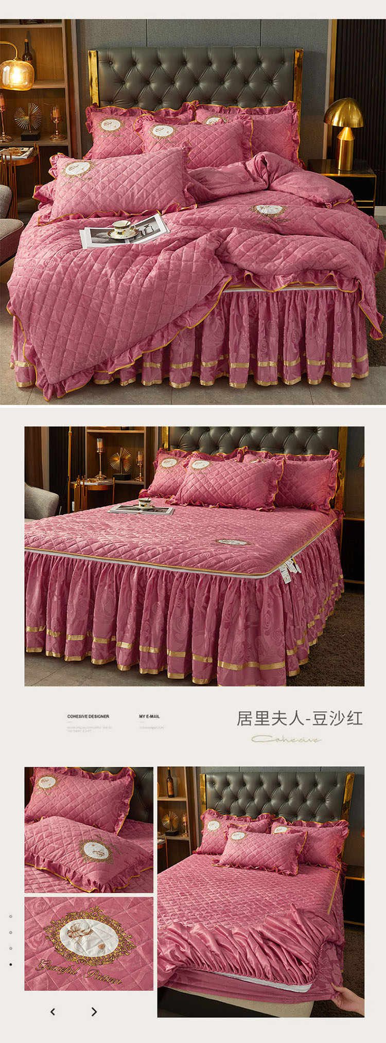 当前位置: 91家纺网 > 商品网购 > 床品套件 > 四件套 > 磨绒四件套 > 大豆蛋白棉天鹅绒夹棉床笠加床裙拉链可脱卸床裙 居里夫人-豆沙红