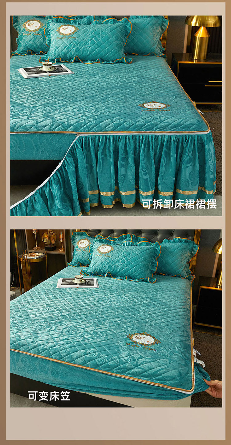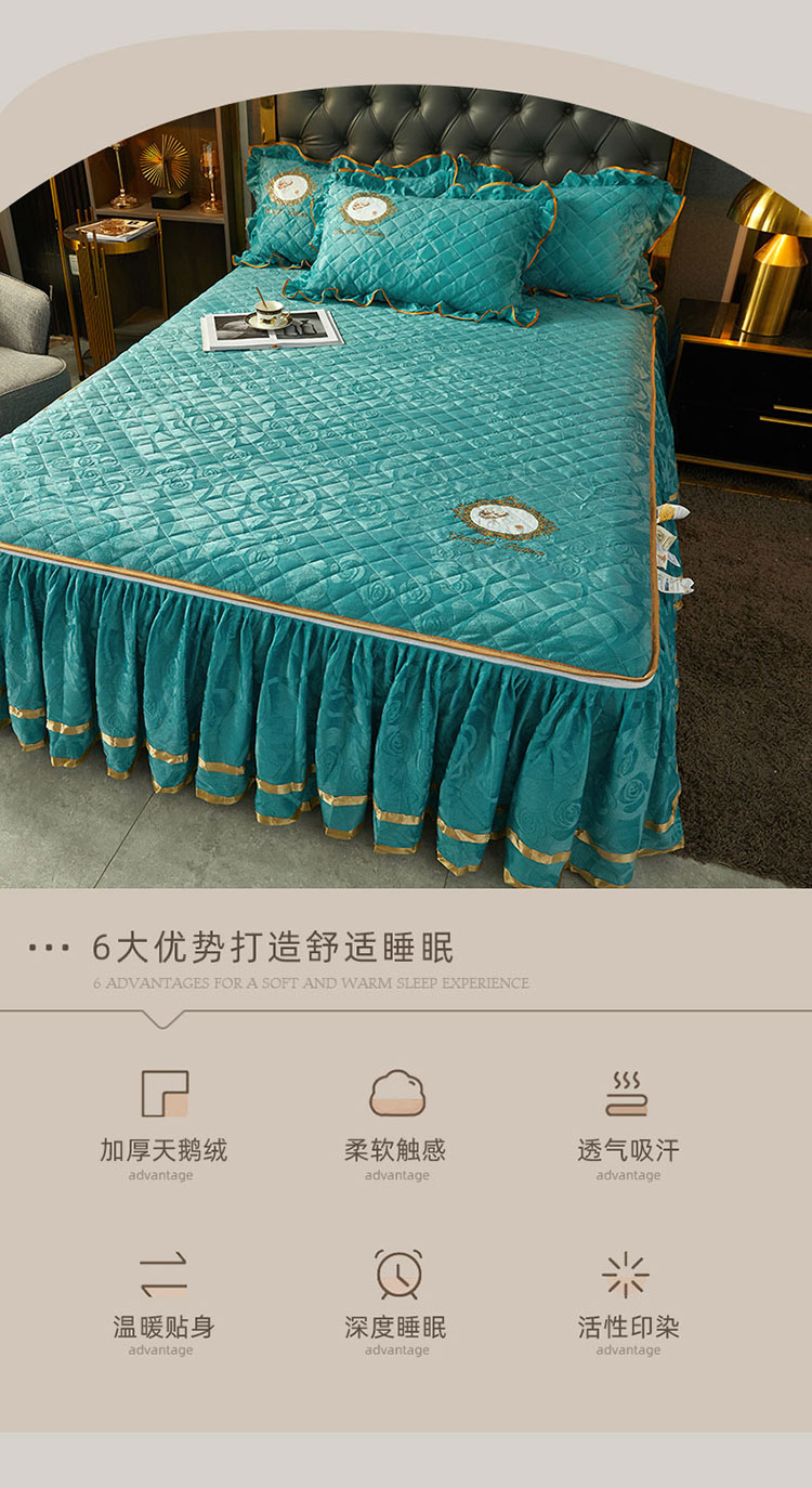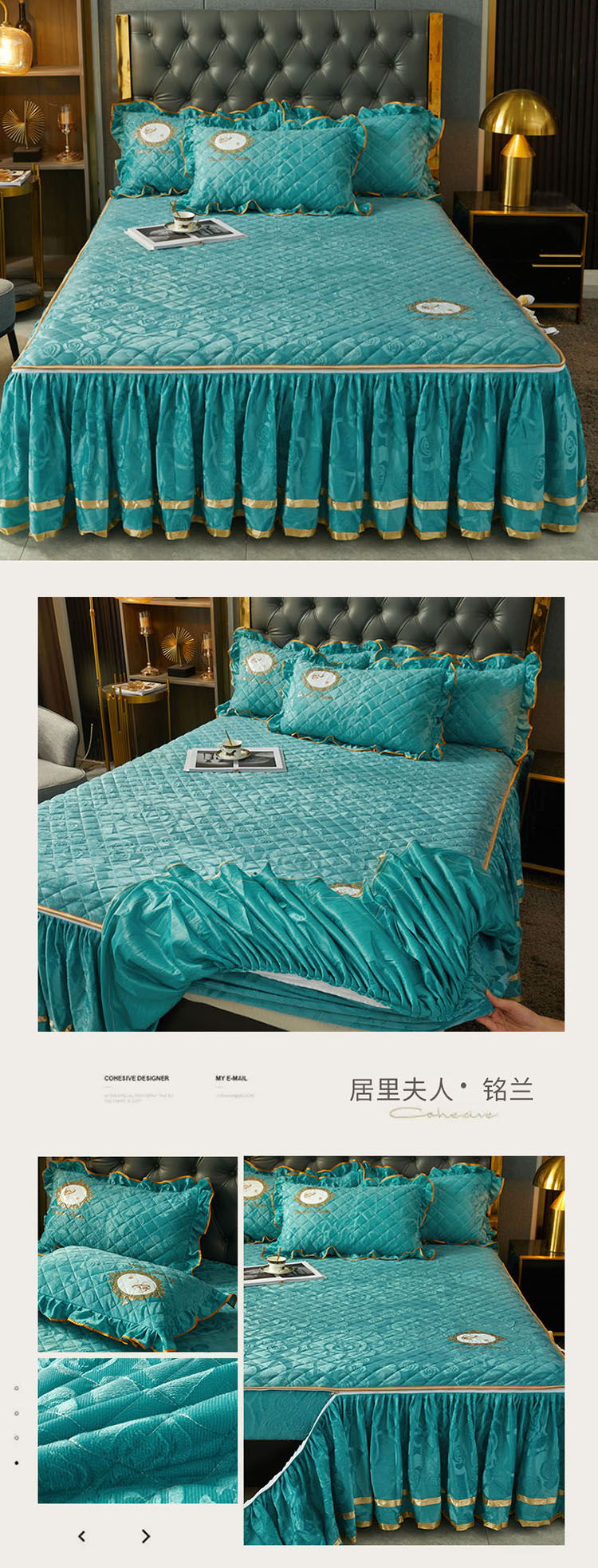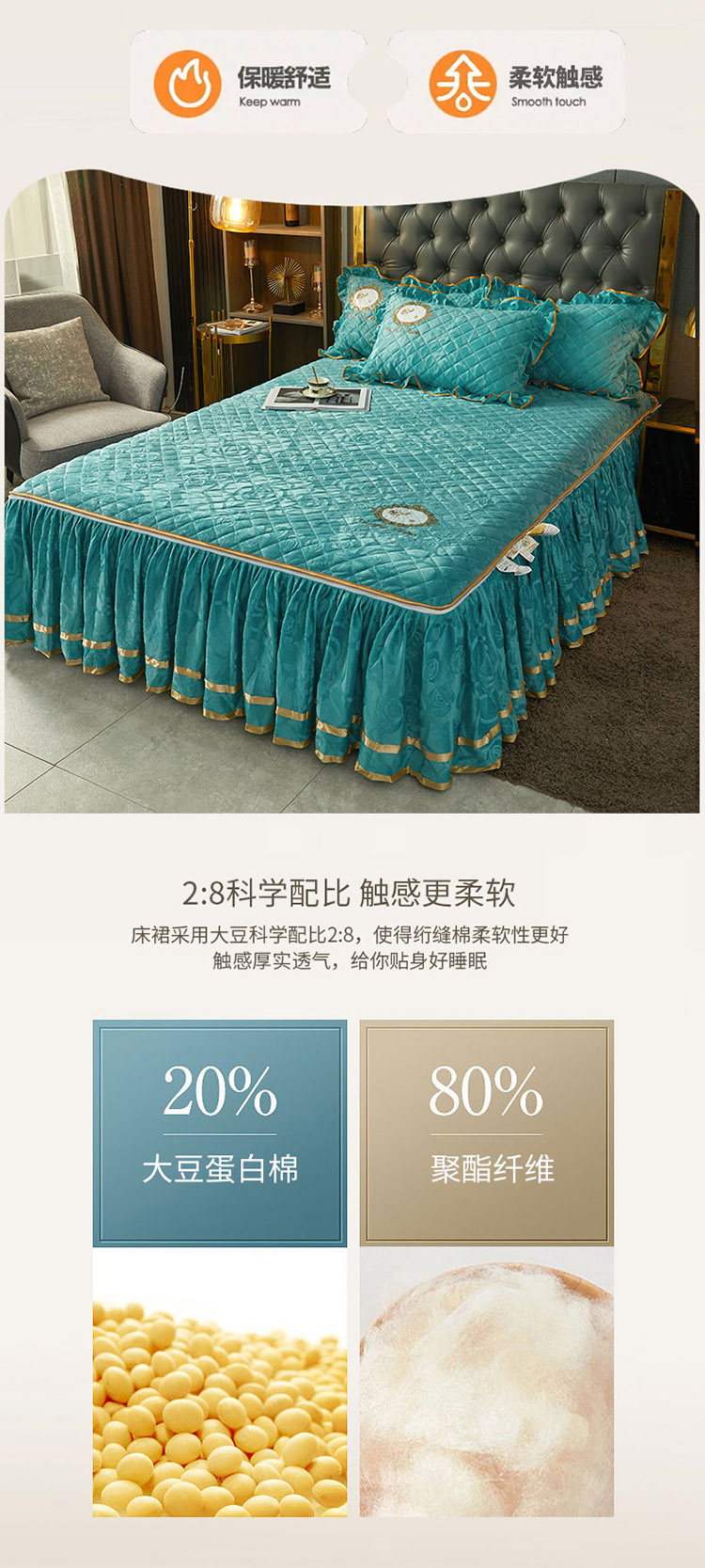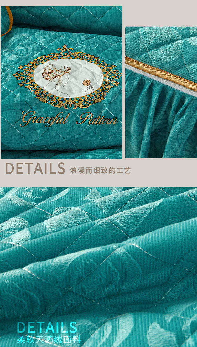 恋尚 新款大豆蛋白棉天鹅绒夹棉床笠加床裙可脱卸床裙 居里夫人-铭兰