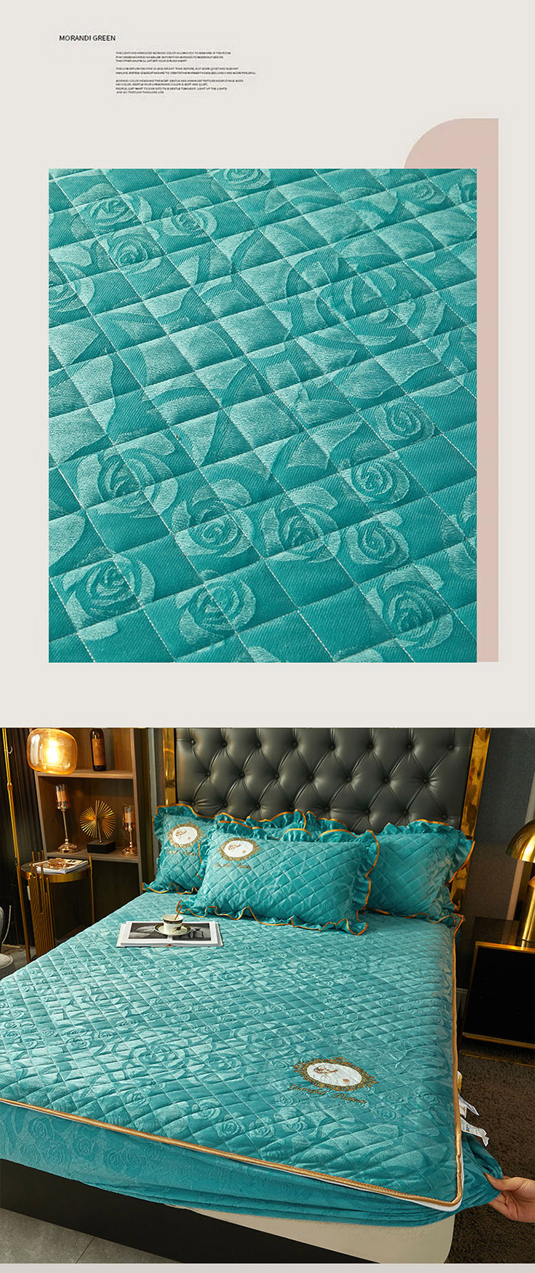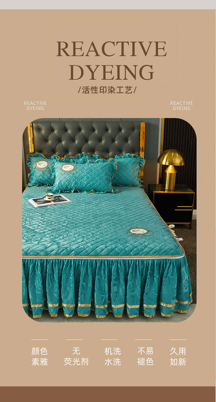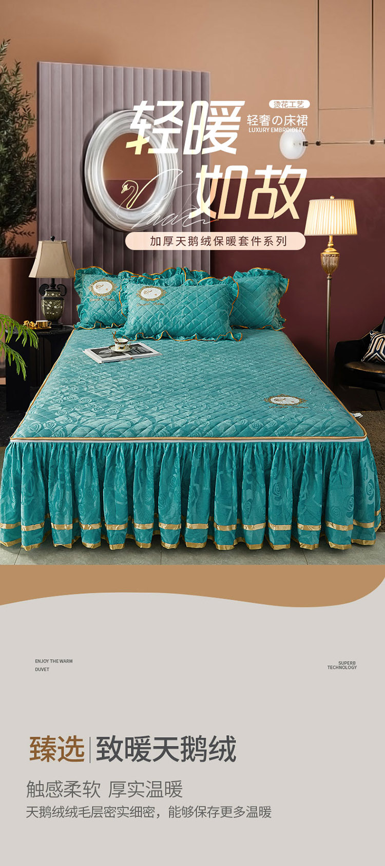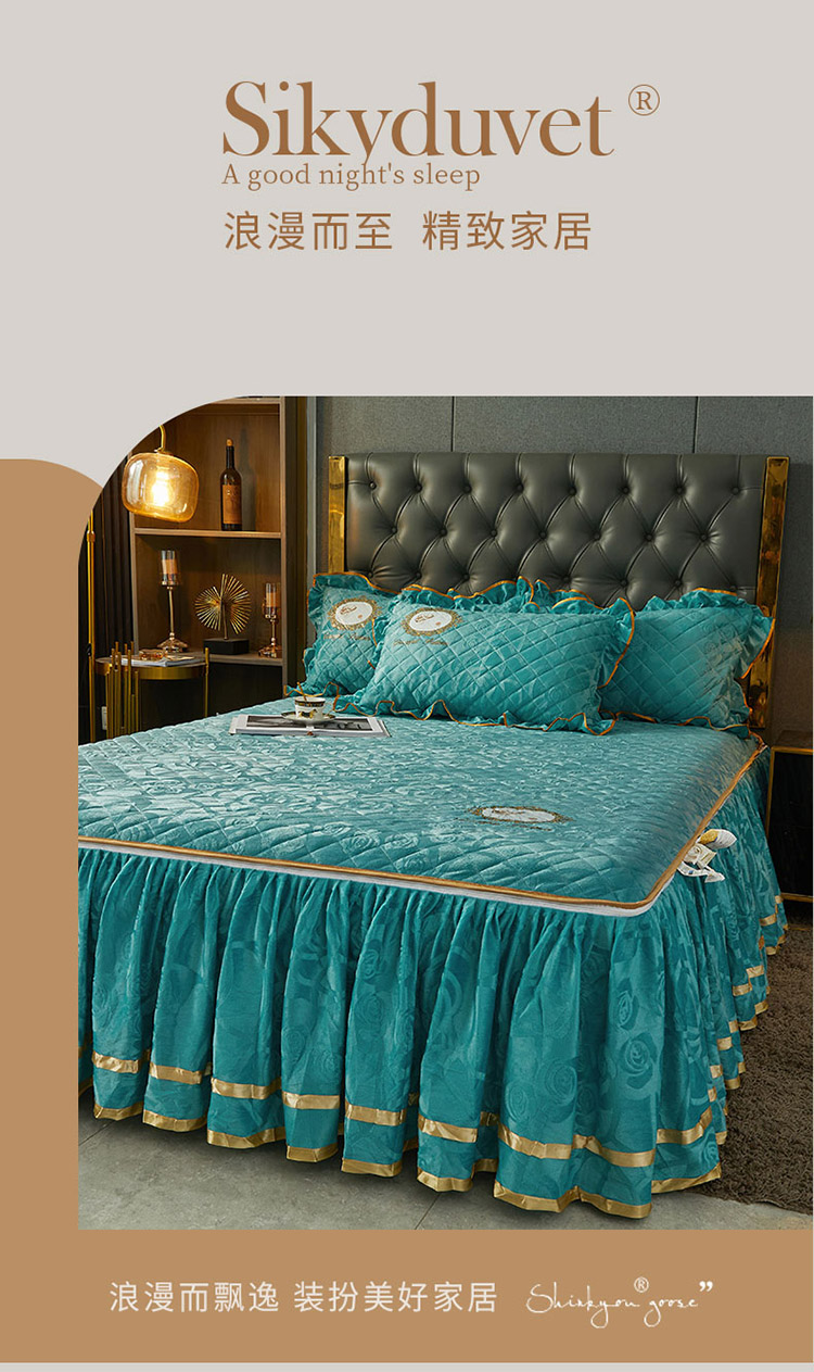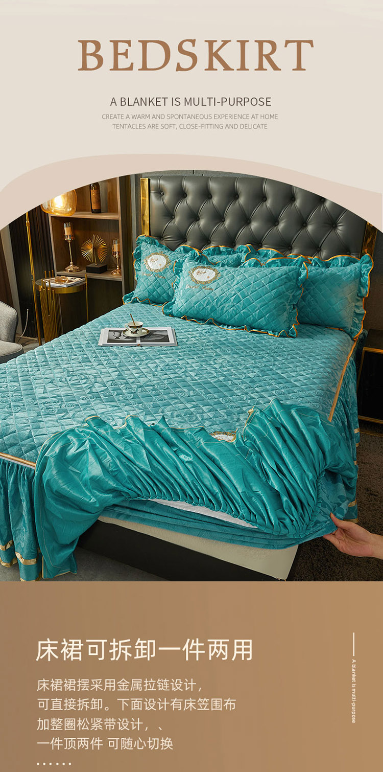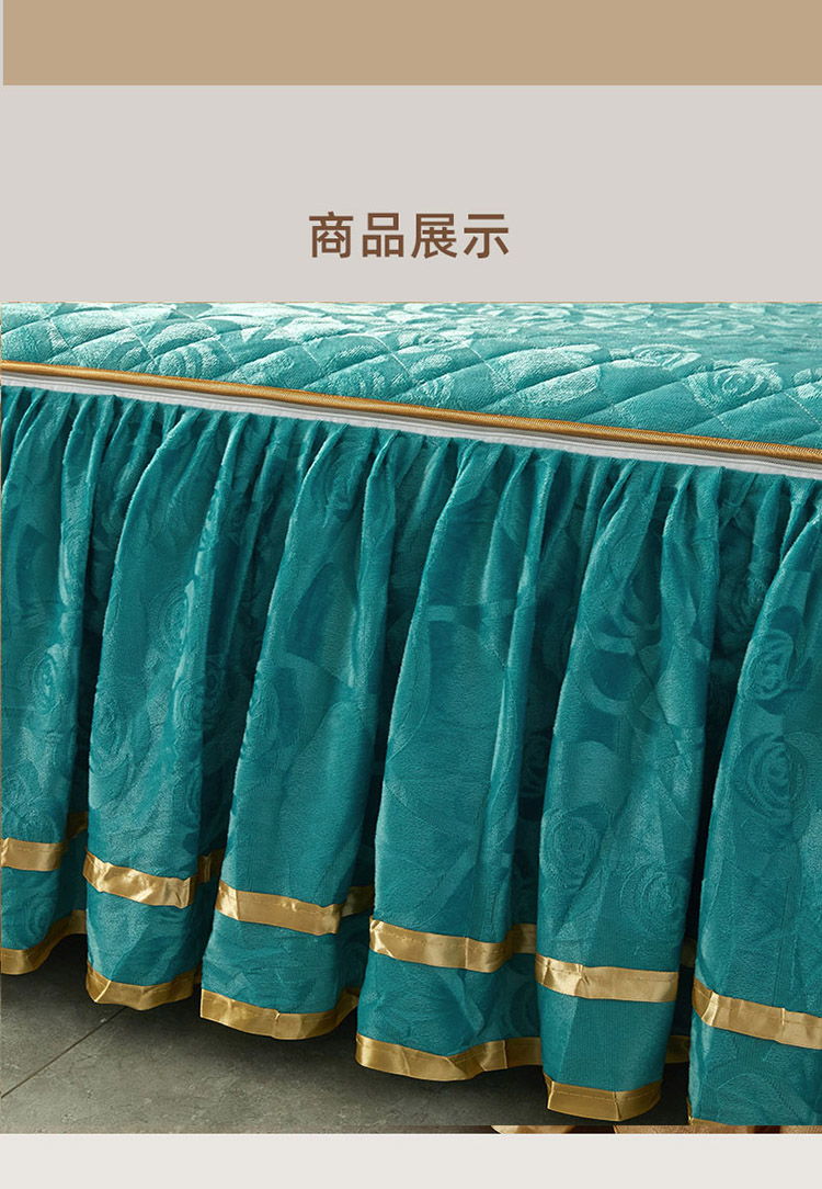 恋尚 新款大豆蛋白棉天鹅绒夹棉床笠加床裙可脱卸床裙 居里夫人-铭兰