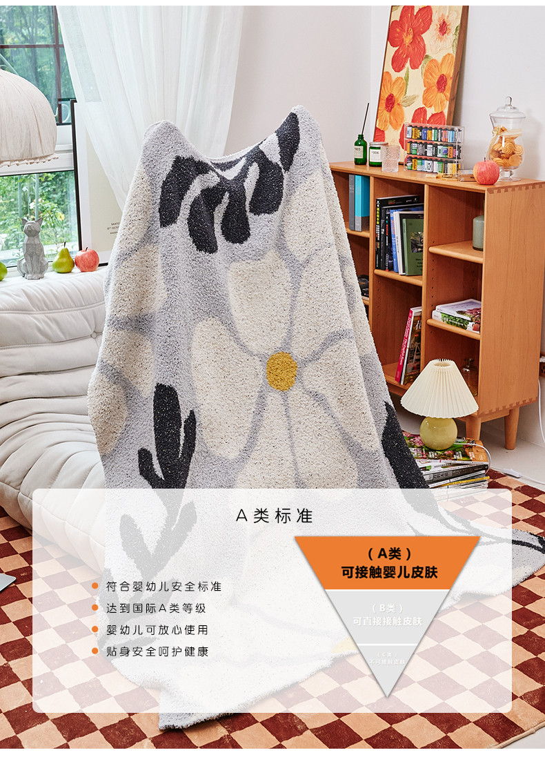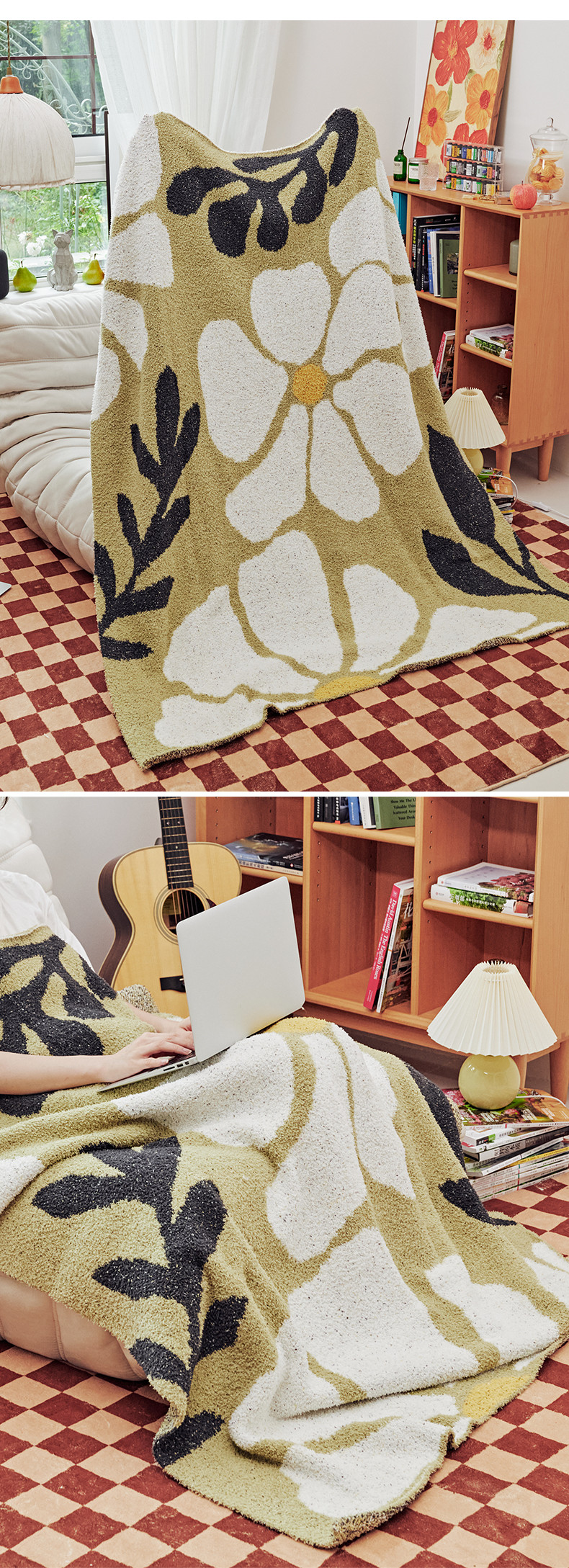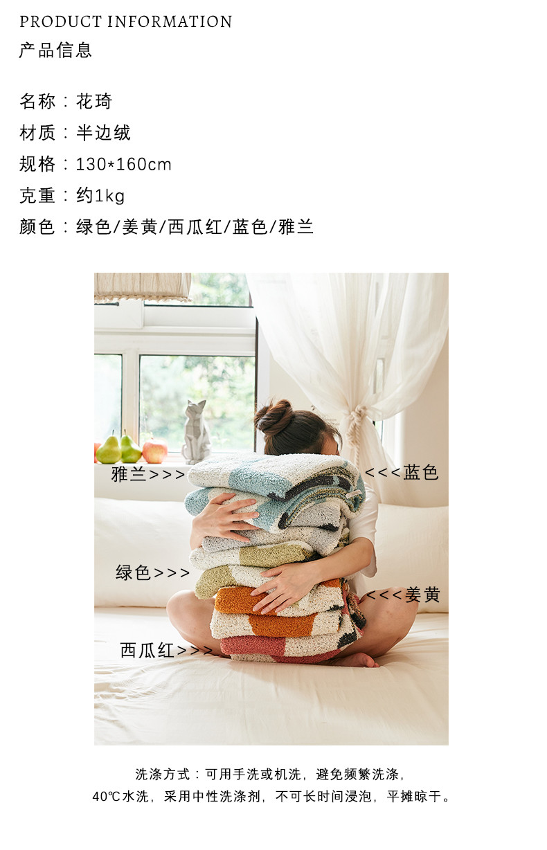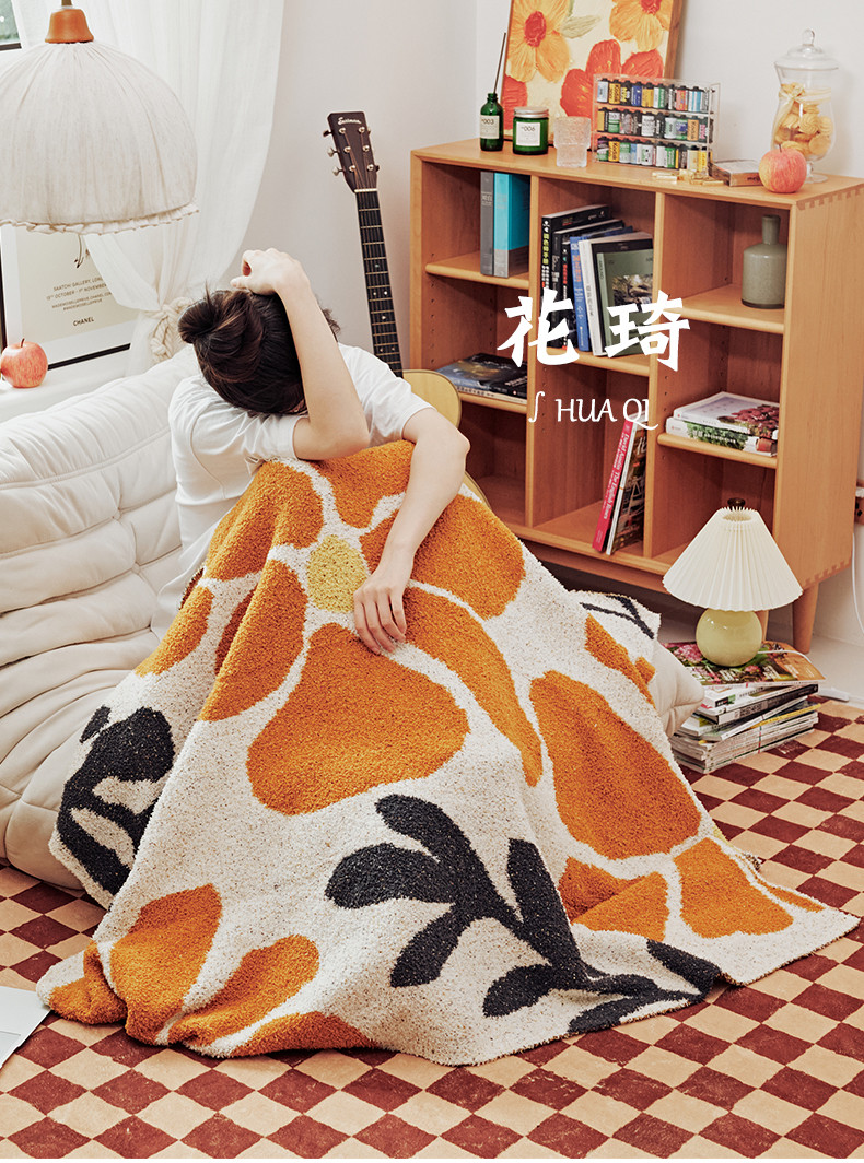 商品名称:暖绵绵家纺 2025新款花琦系列半边绒办公室午睡毯休闲毯 姜黄