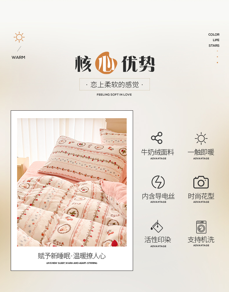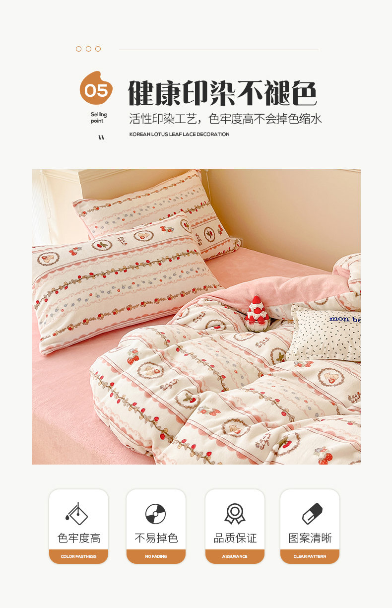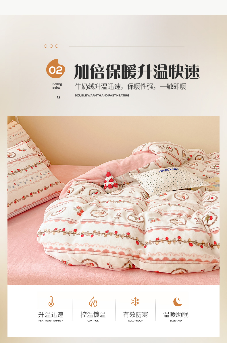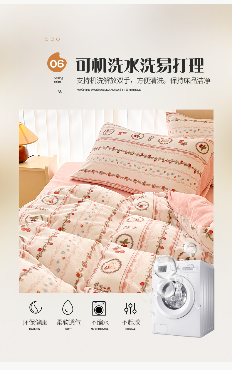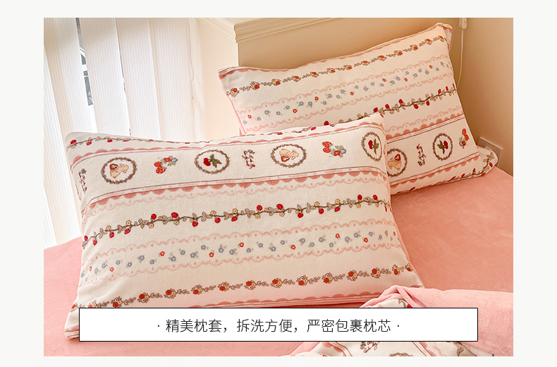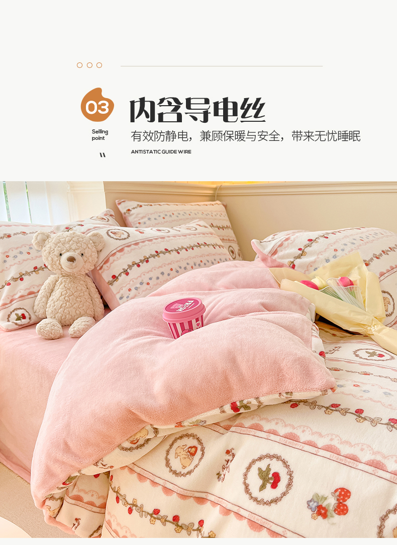 商品名称:桃子 2023新款ins小清新韩系卡通少女心奶油兔子加厚牛奶绒系列四件套-第一批 绒-可颂粉