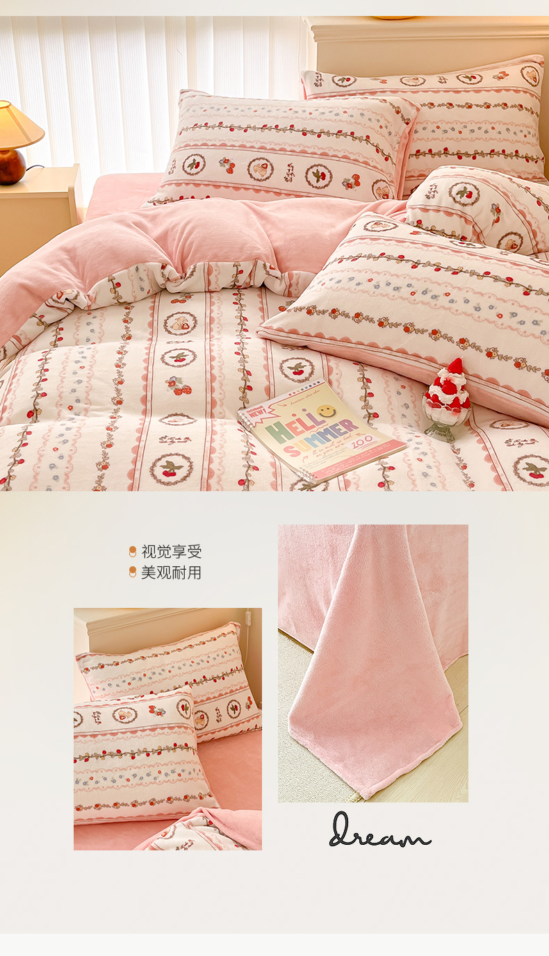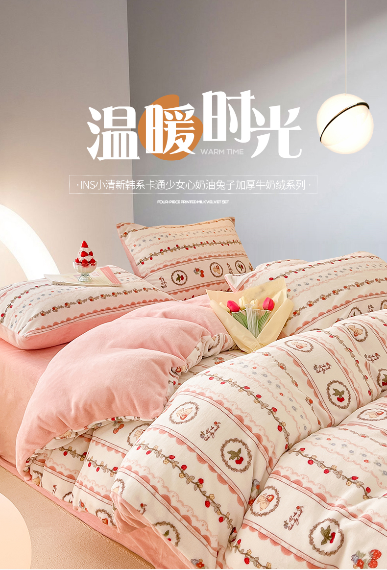 桃子 2023新款ins小清新韩系卡通少女心奶油兔子加厚牛奶绒系列四件套-第一批 绒-可颂粉