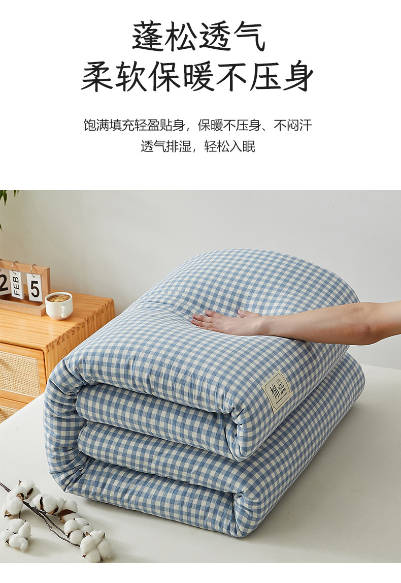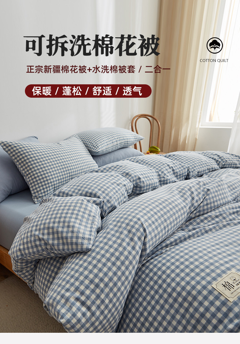 商品名称:暖阳 2025新款50%可拆卸款棉花被 浅蓝小格