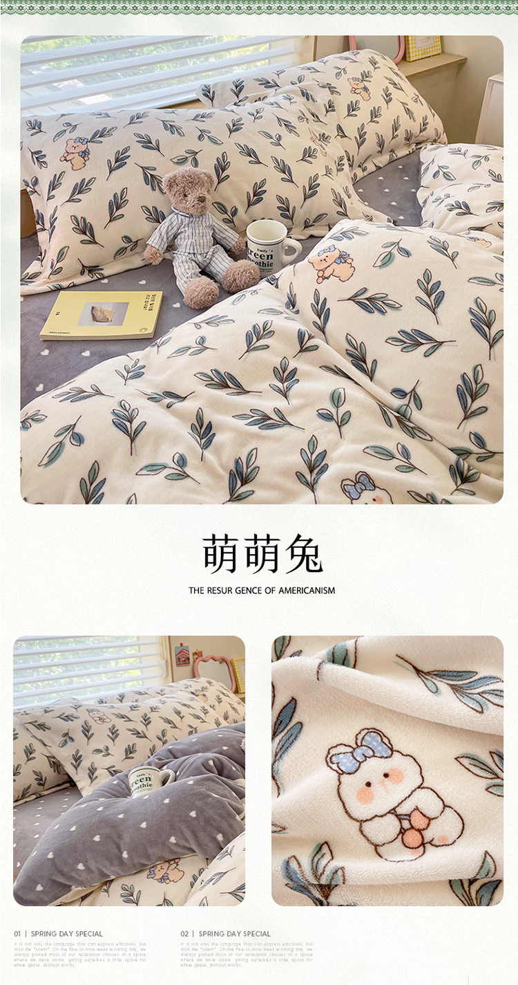 (总)名兮 2023新款全棉印花卡通风四件套,抱抱熊,波波熊,菲菲兔,机器小新,可爱萌宠,可爱兔