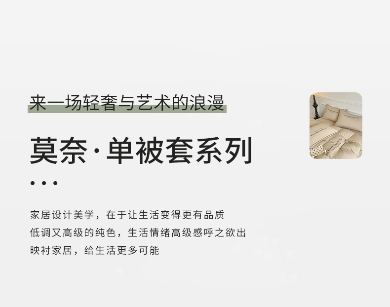 商品名称:尤米 2023新款莫奈系列水洗棉绣花麻绳款单被套 莫奈-米杏色