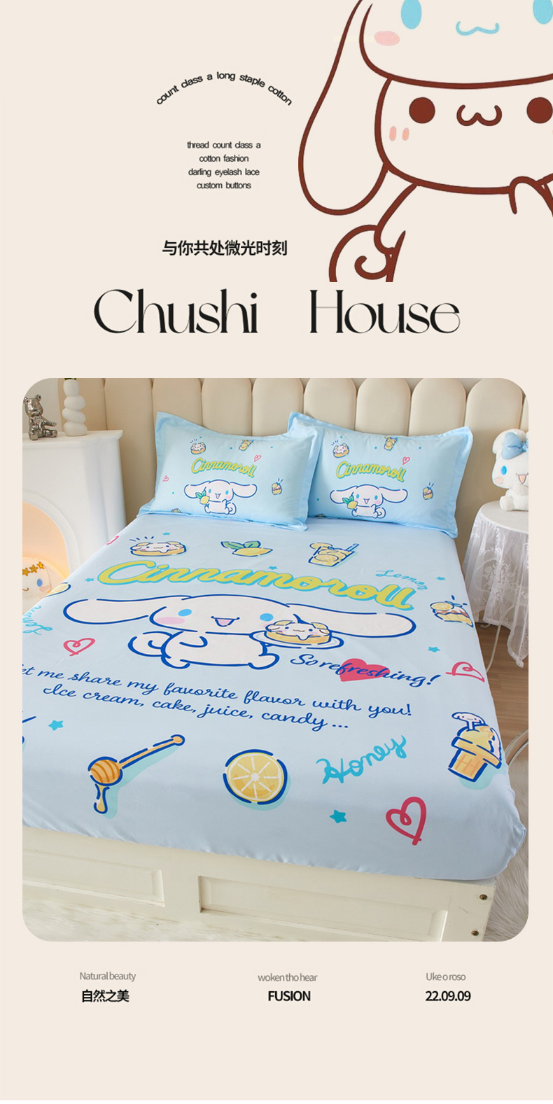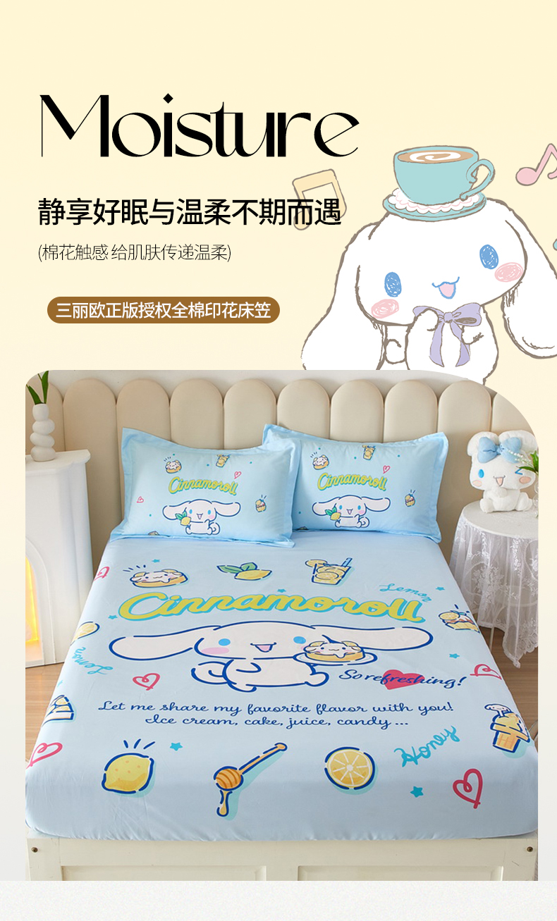 • 91家纺网 家纺一手货源 找家纺 蘭菲 2023新款三丽鸥全棉单床笠 圆宝
