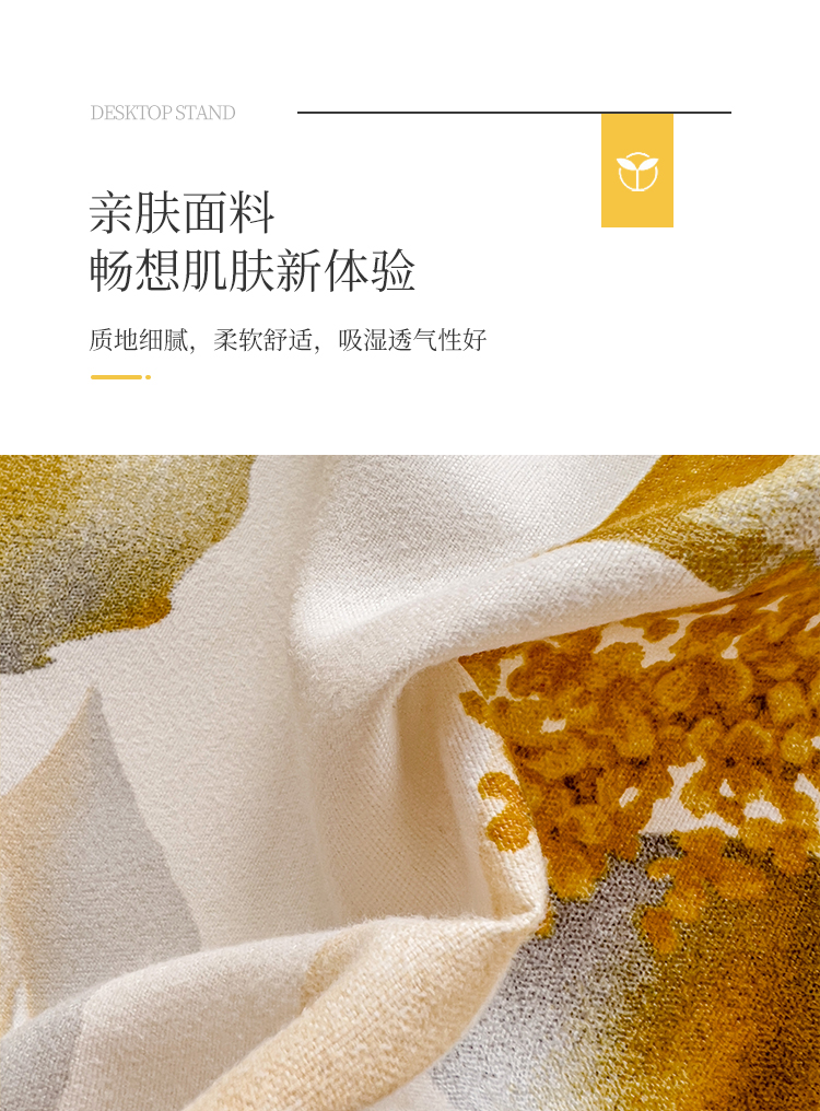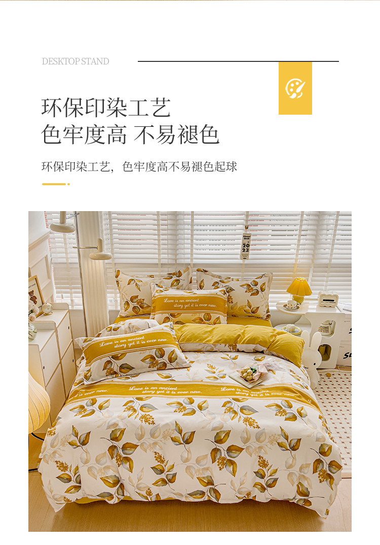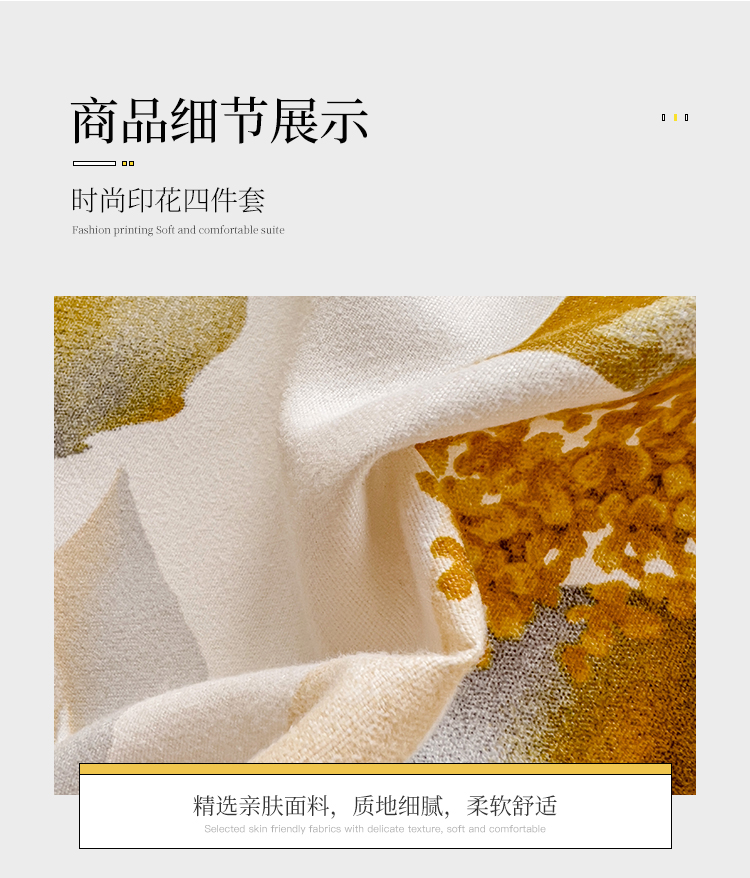 商品名称:好亿来 2025新款植物羊绒加厚斜纹磨毛四件套金叶飘香