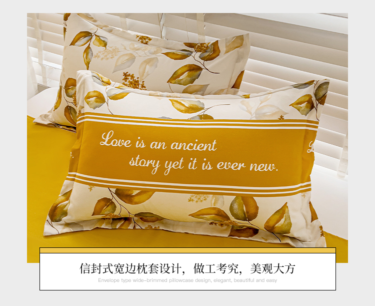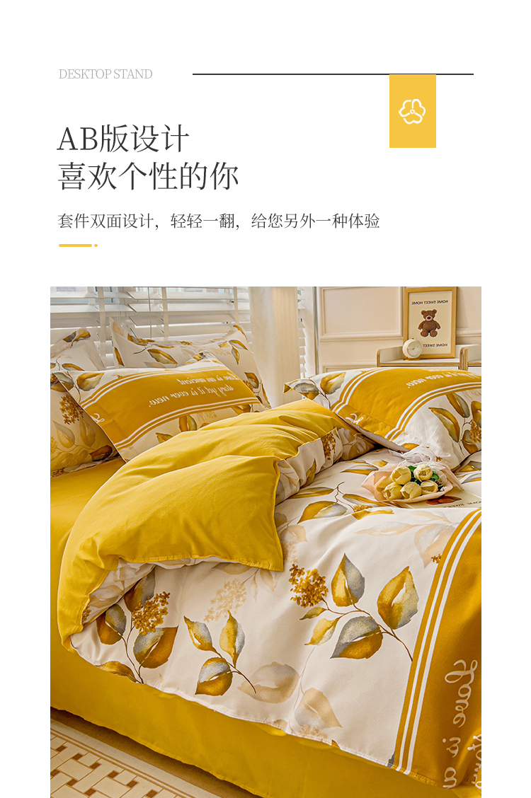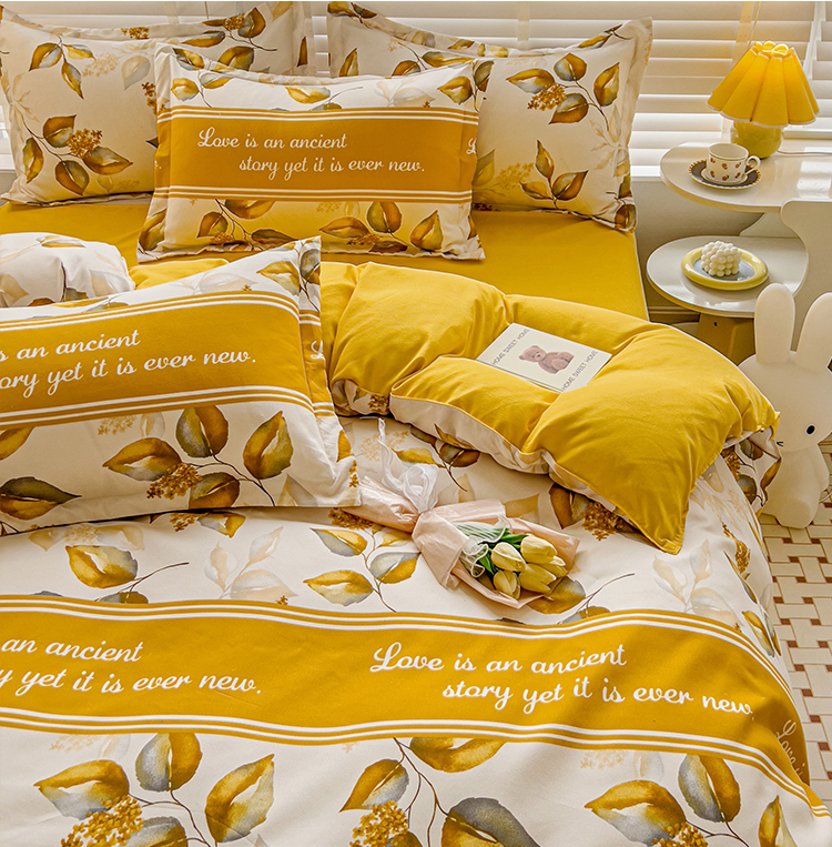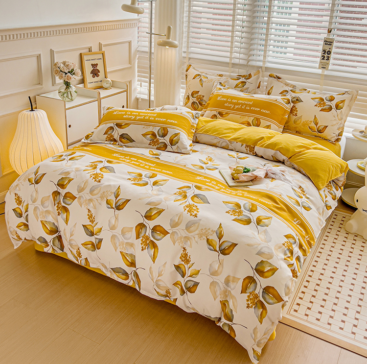 好亿来 2025新款植物羊绒加厚斜纹磨毛四件套金叶飘香