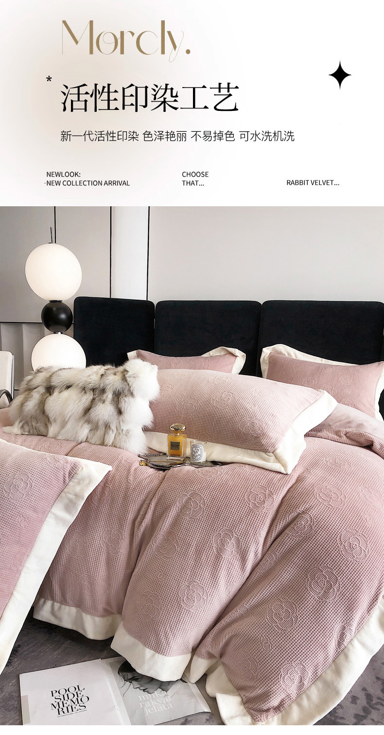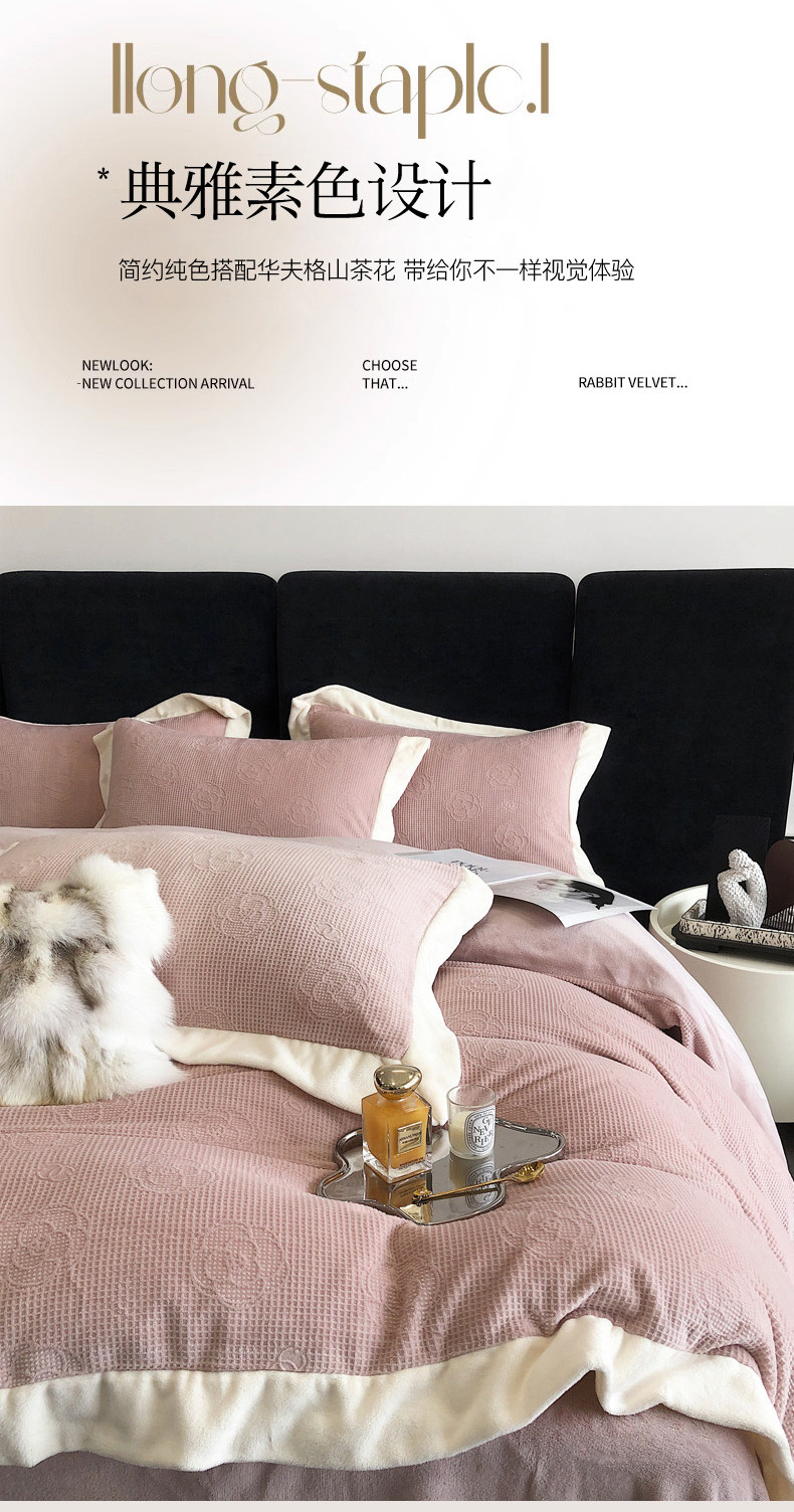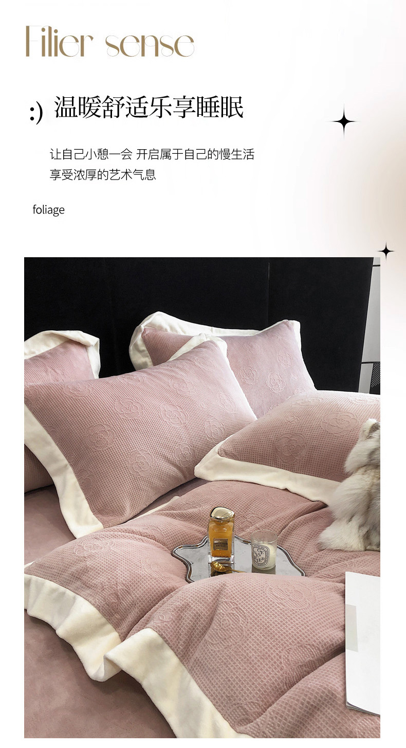 商品名称:万盛家纺 2025新款小香风山茶花牛奶绒四件套 山茶花—樱粉