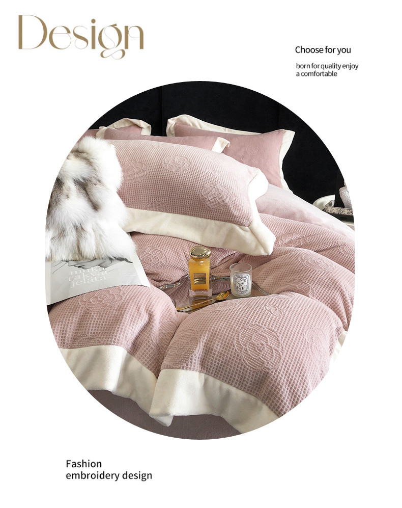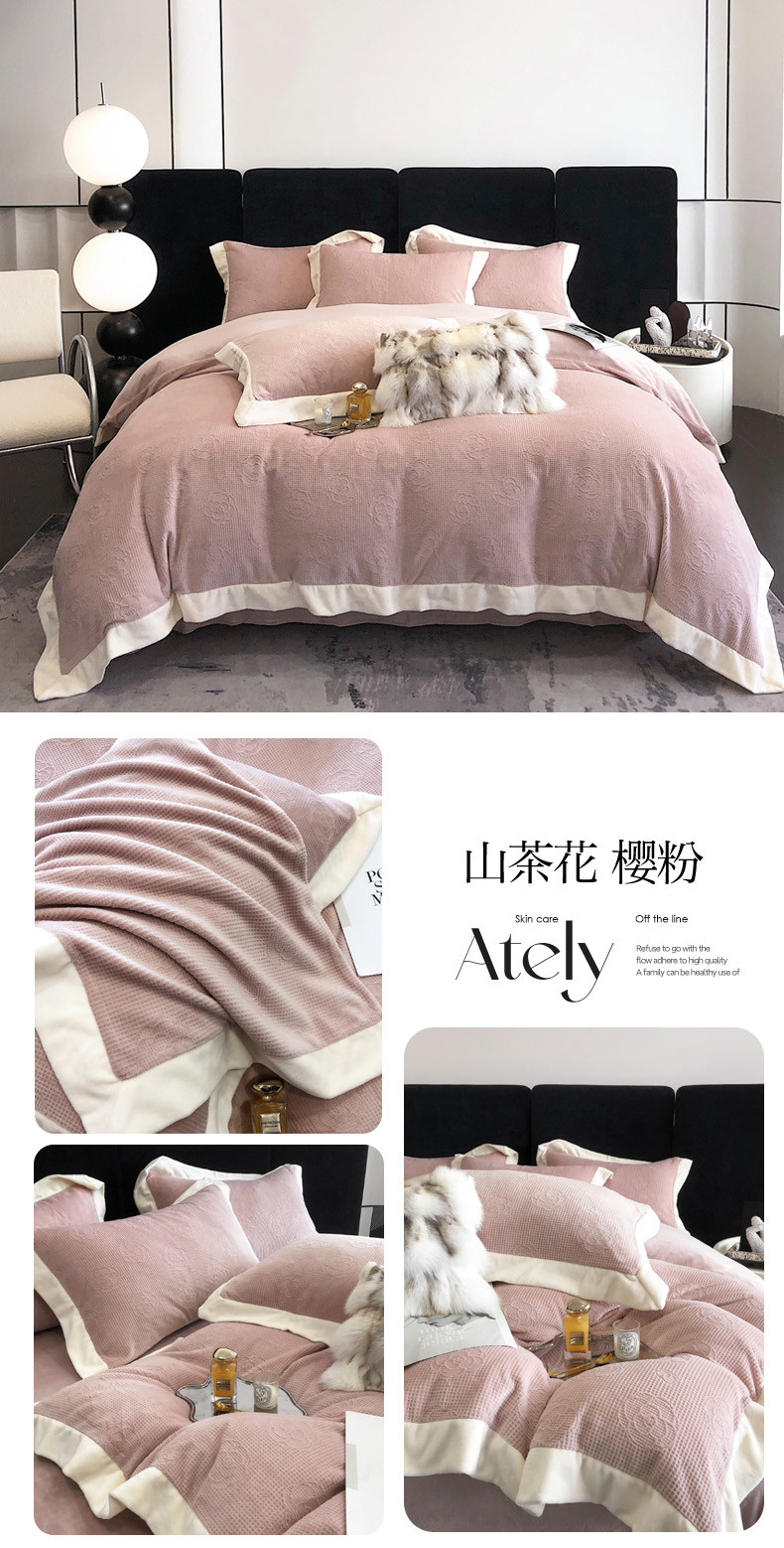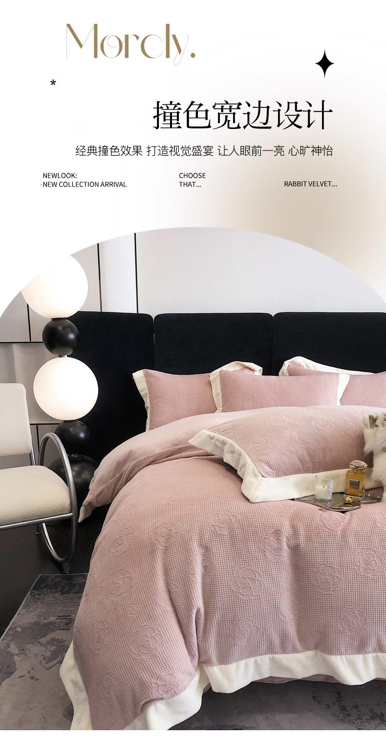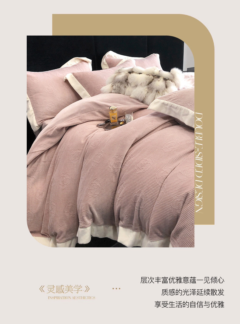万盛家纺 2025新款小香风山茶花牛奶绒四件套 山茶花—樱粉