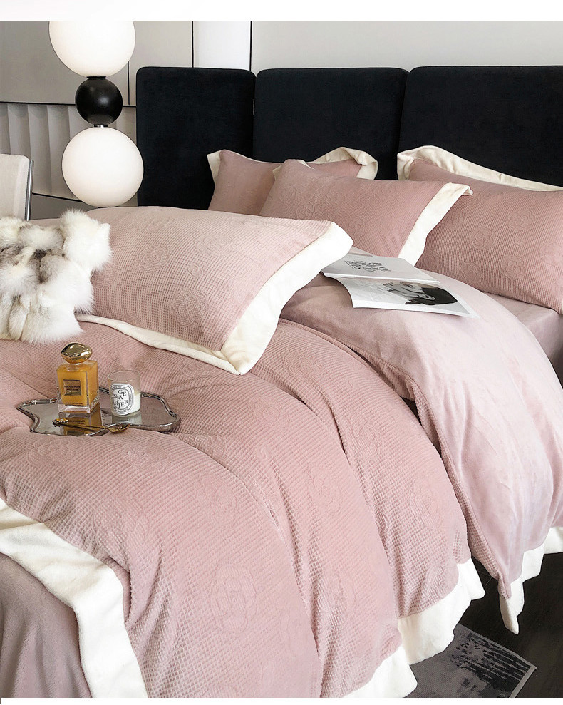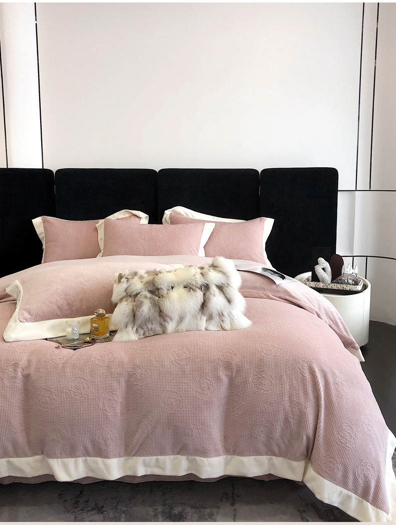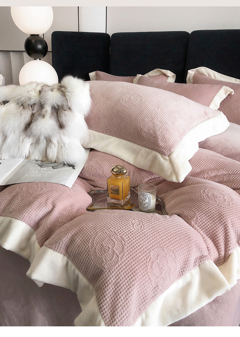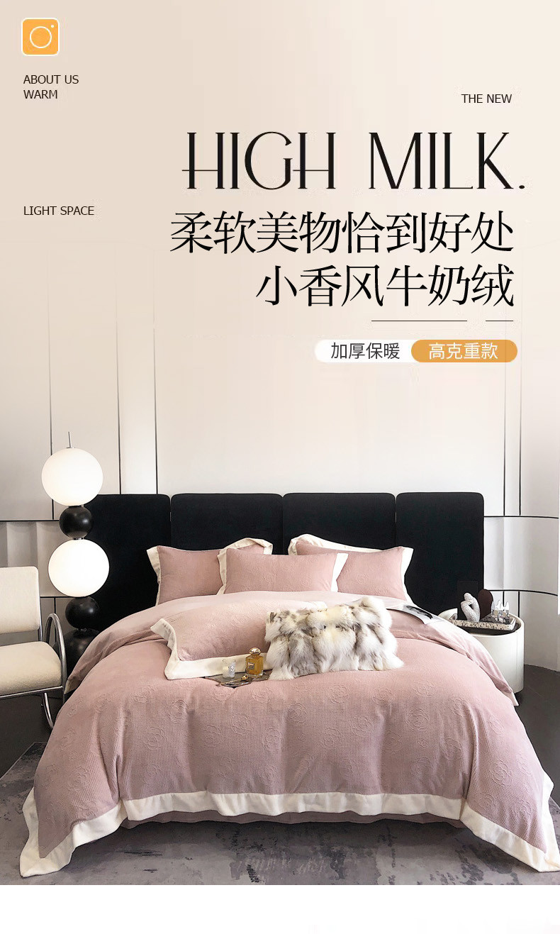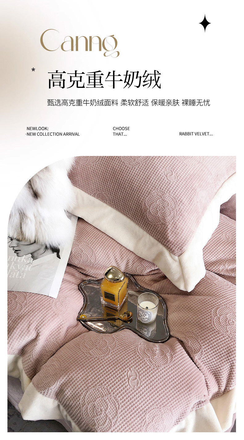 万盛家纺 2025新款小香风山茶花牛奶绒四件套 山茶花—樱粉