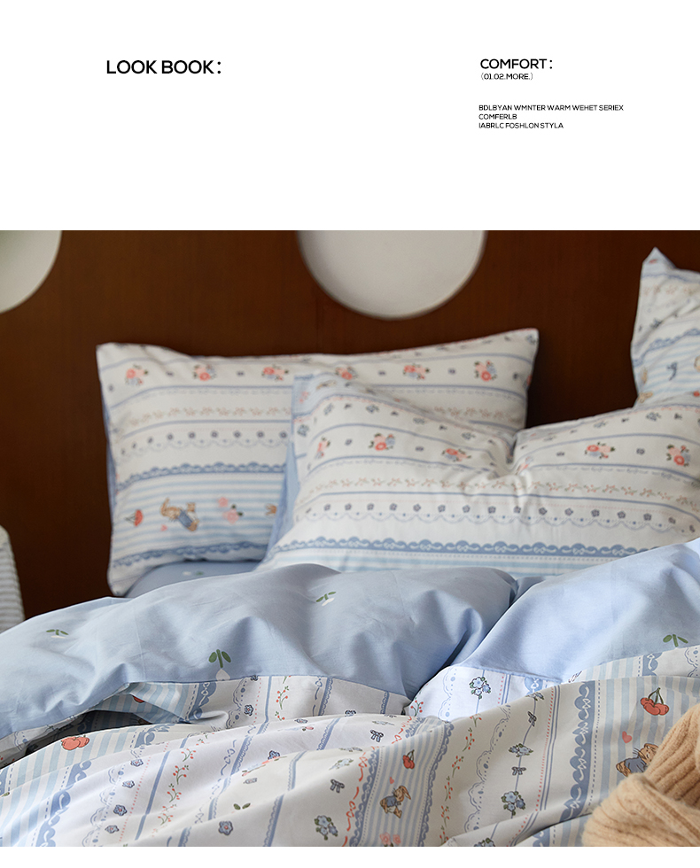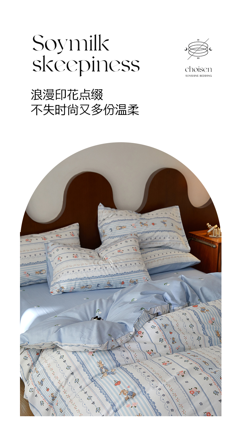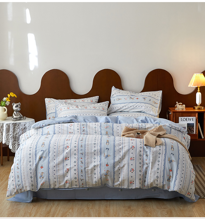 当前位置: 91家纺网 > 商品网购 > 床品套件 > 四件套 > 全棉普通四件套 > 麦伦家居 2023新款全棉斜纹小清新四件套-紫樱花系列 彼得兔