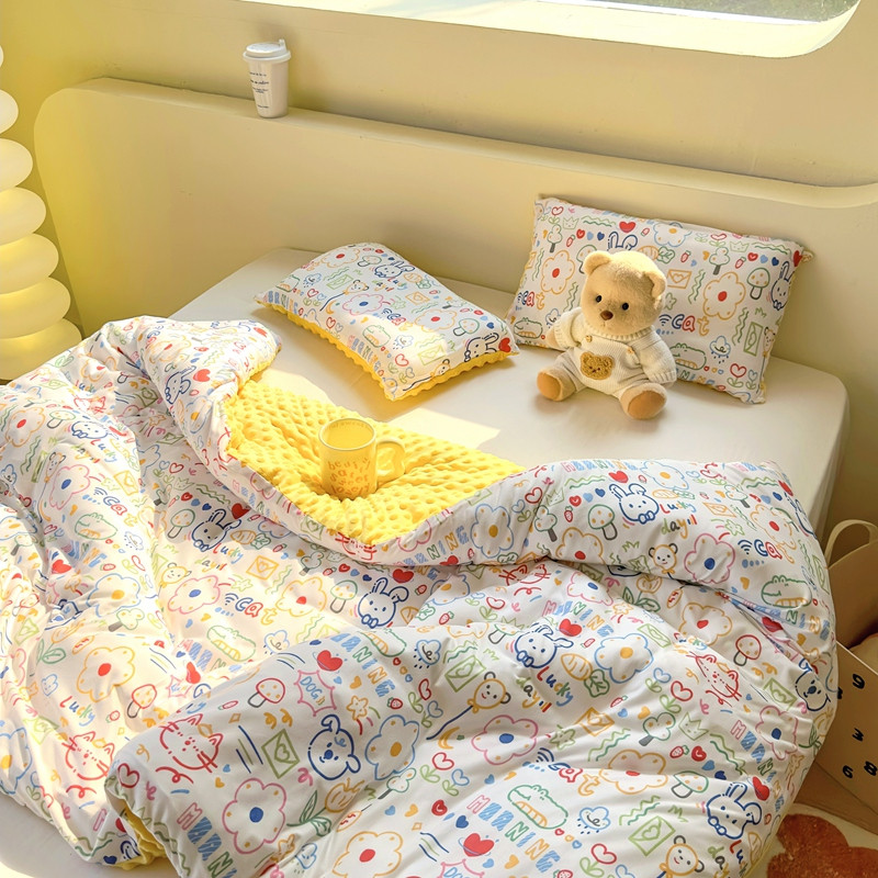 (总)希诺 2023新款普版豆豆绒多功能被套盖毯针织棉宝宝盖毯