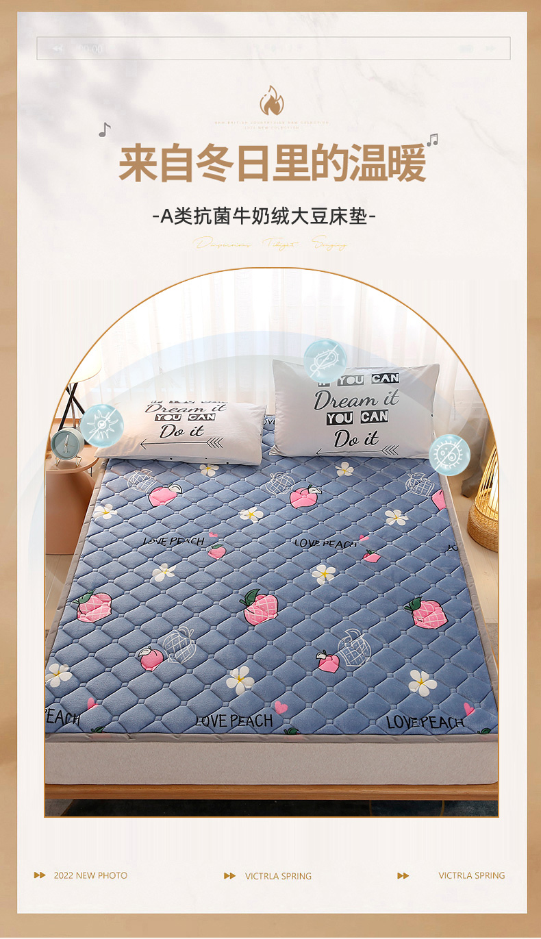 商品名称:东宇 2024年新款A类抗菌牛奶绒大床加厚床垫 蜜桃花语