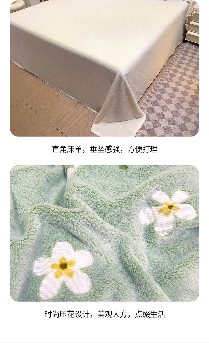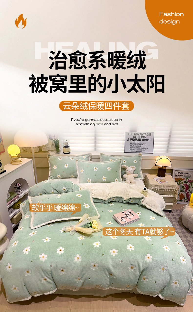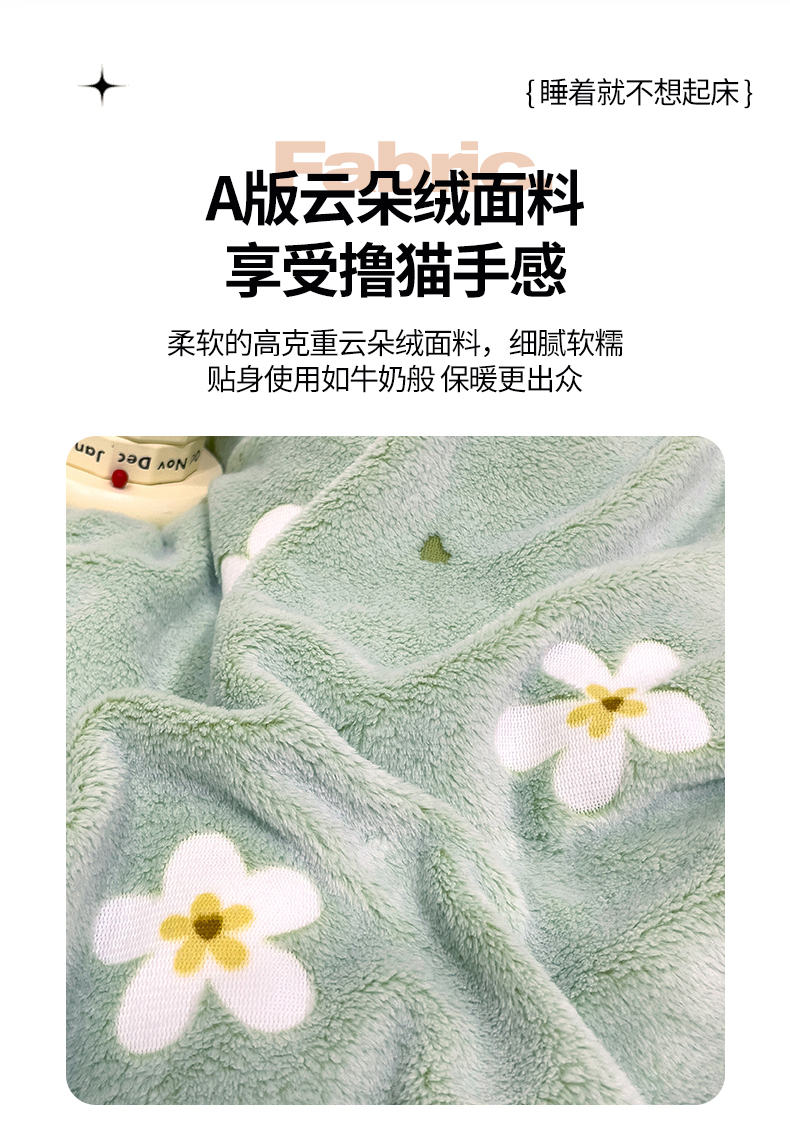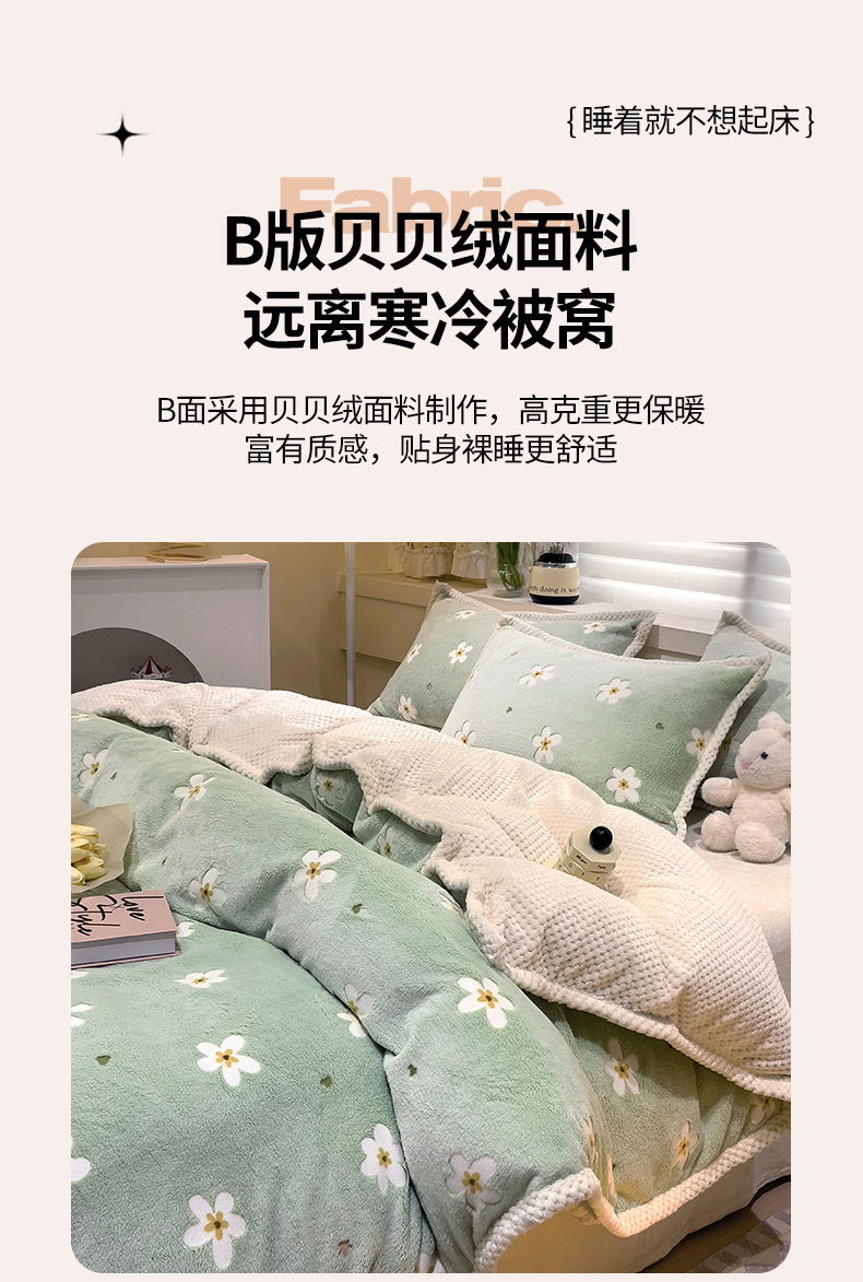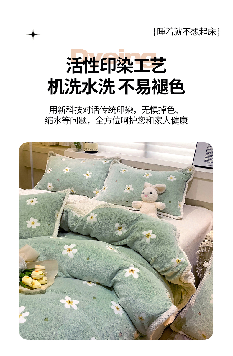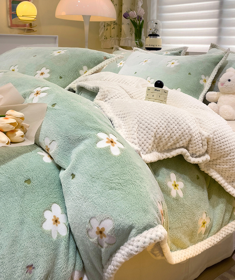 当前位置: 91家纺网 > 商品网购 > 床品套件 > 四件套 > 贝贝绒四件套 > 宜派 2023新款压花云朵绒贝贝绒保暖四件套 小花绿