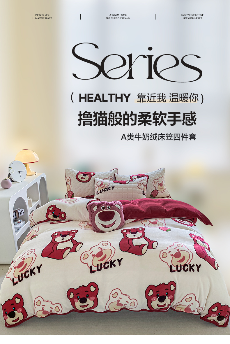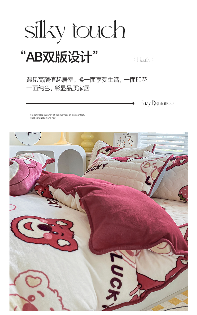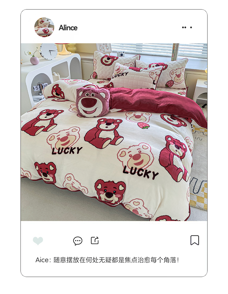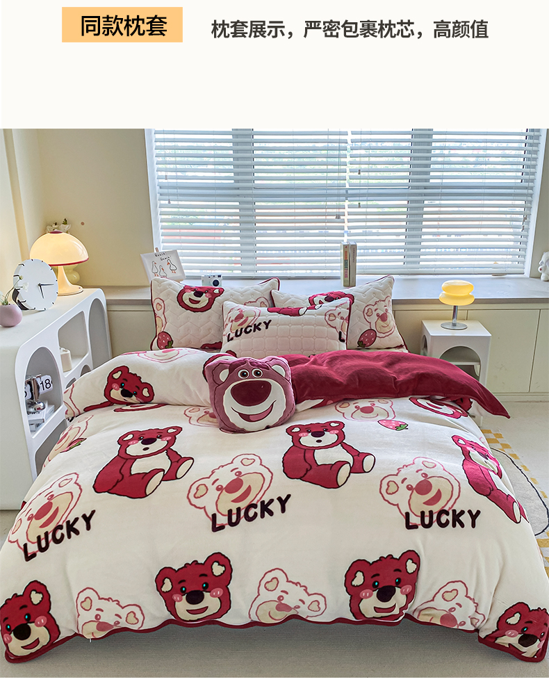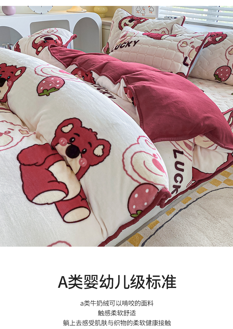 卡伦家纺 2025新款A类牛奶绒印花被套 粉红熊