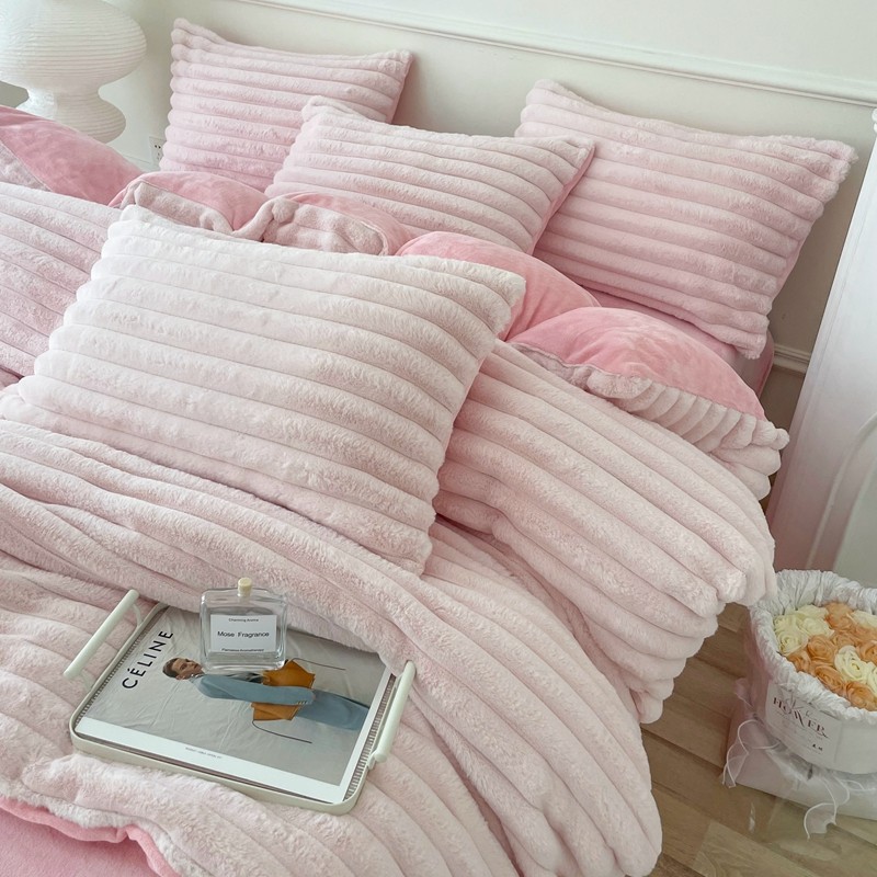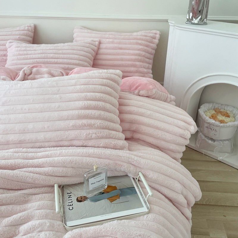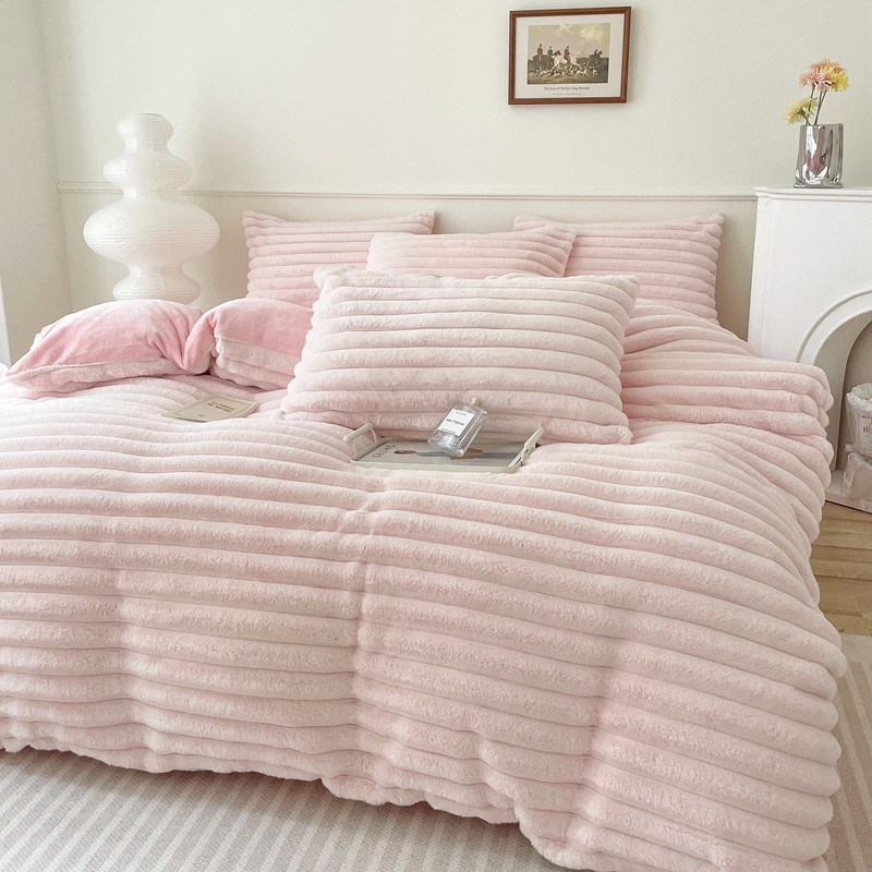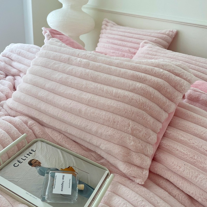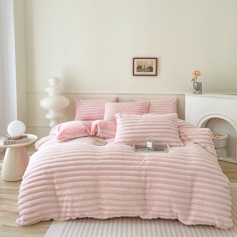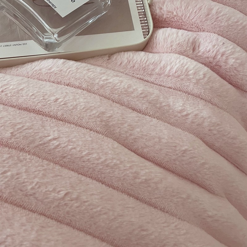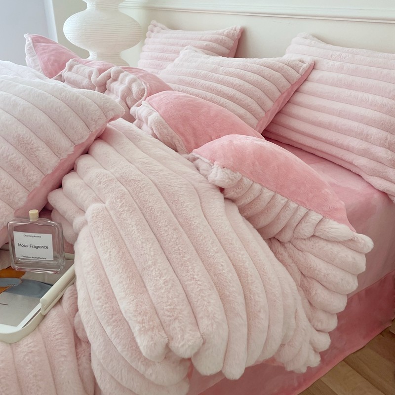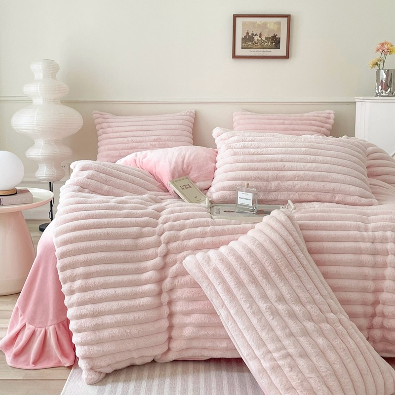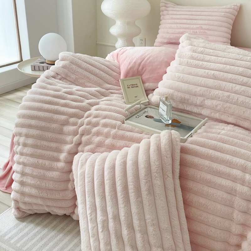 畅畅家纺 2023新款兔毛绒兔兔绒懒兔绒立体剪花牛奶绒四件套 波浪-浅粉
