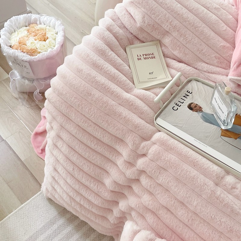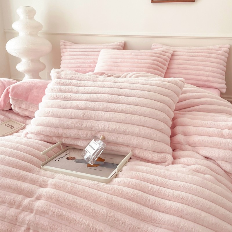 商品名称:畅畅家纺 2023新款兔毛绒兔兔绒懒兔绒立体剪花牛奶绒四件套 波浪-浅粉