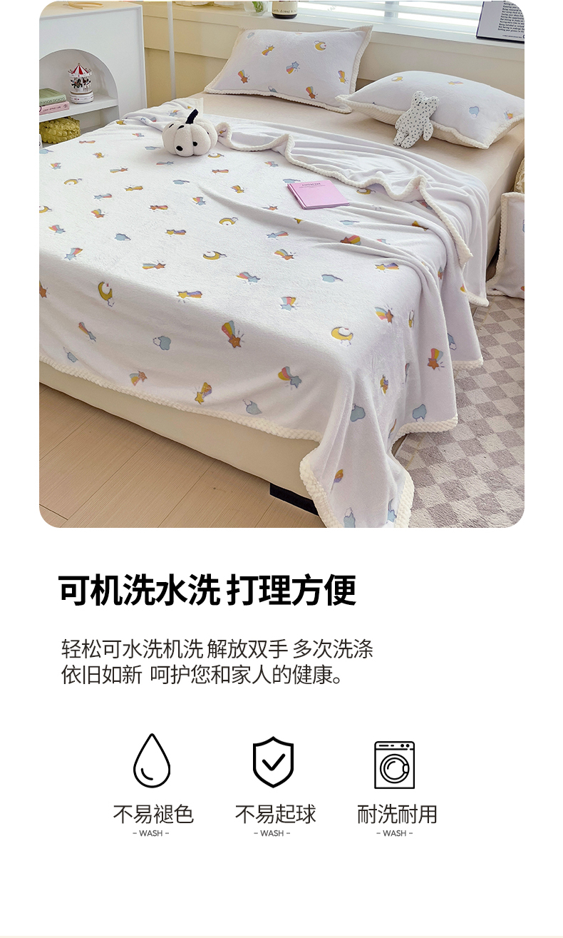 商品名称:宜派家纺 2023新款压花云朵绒多功能毛毯 彩虹白