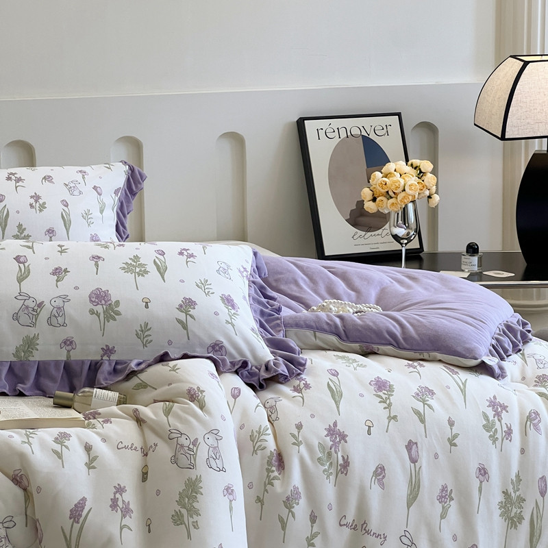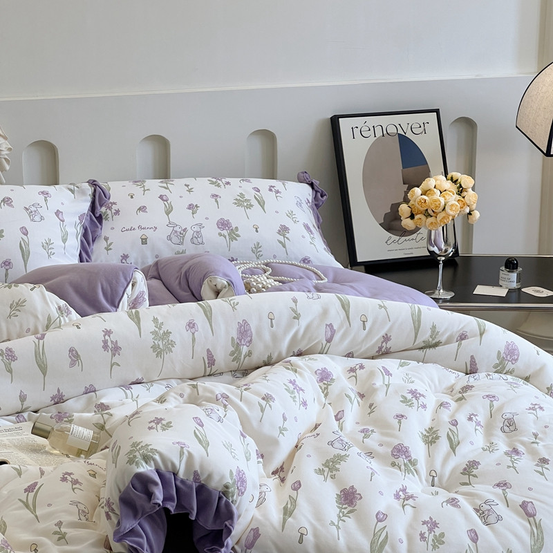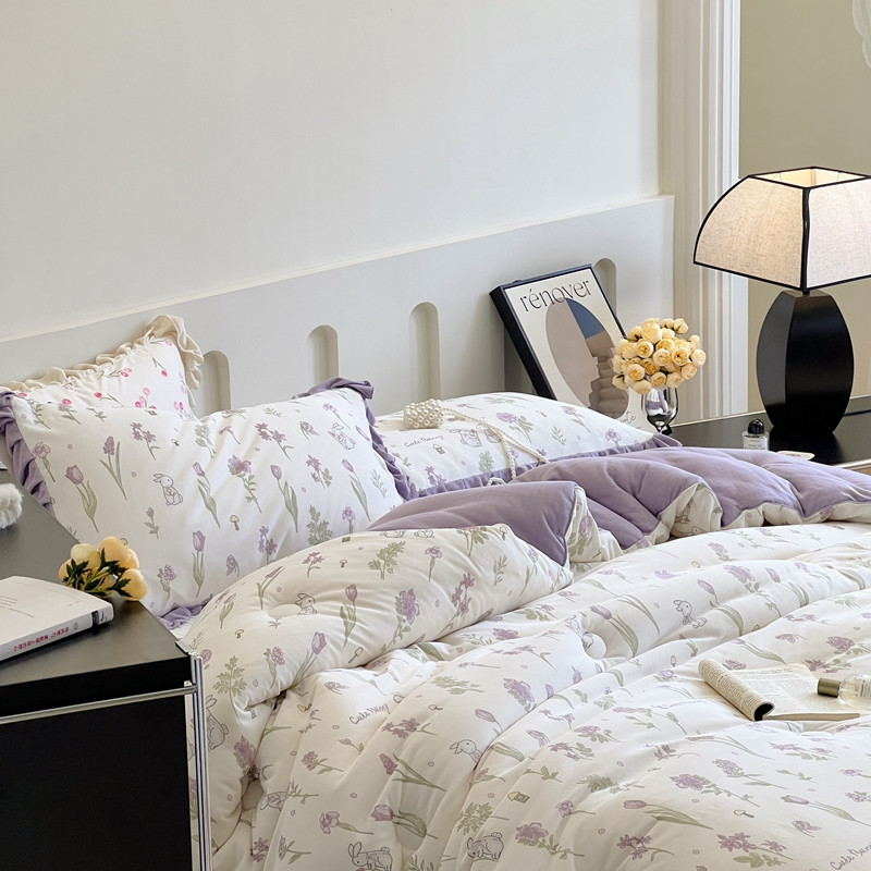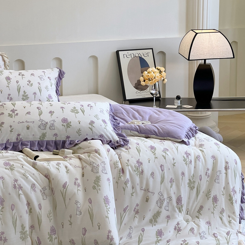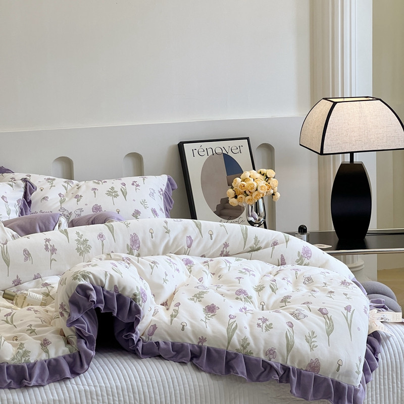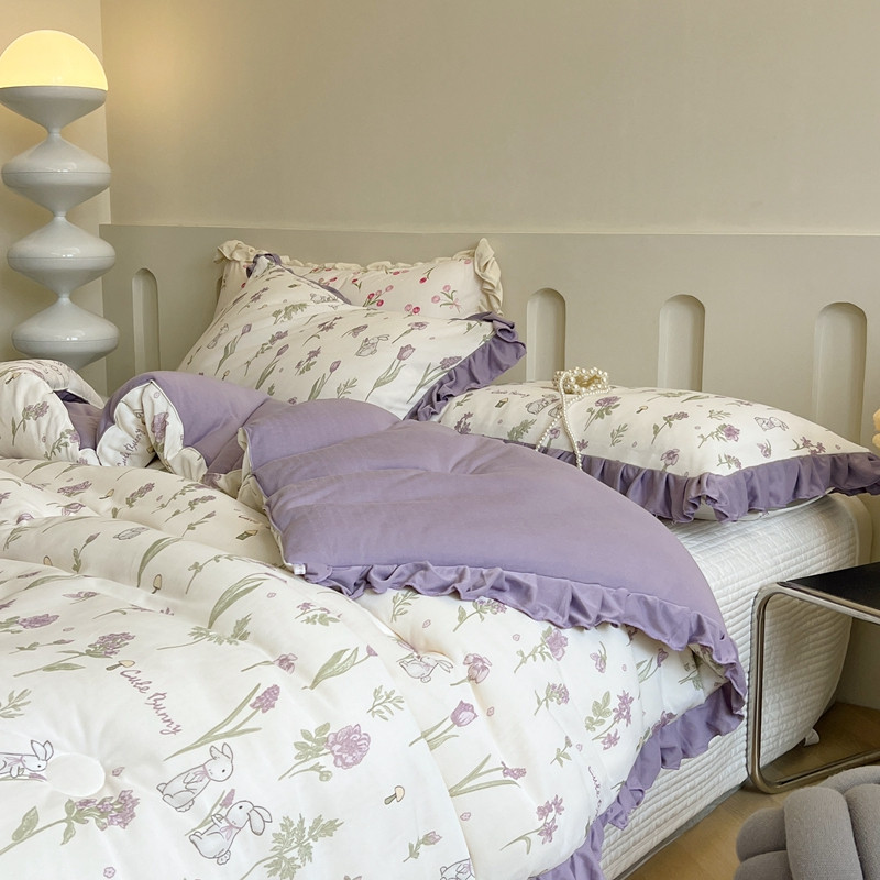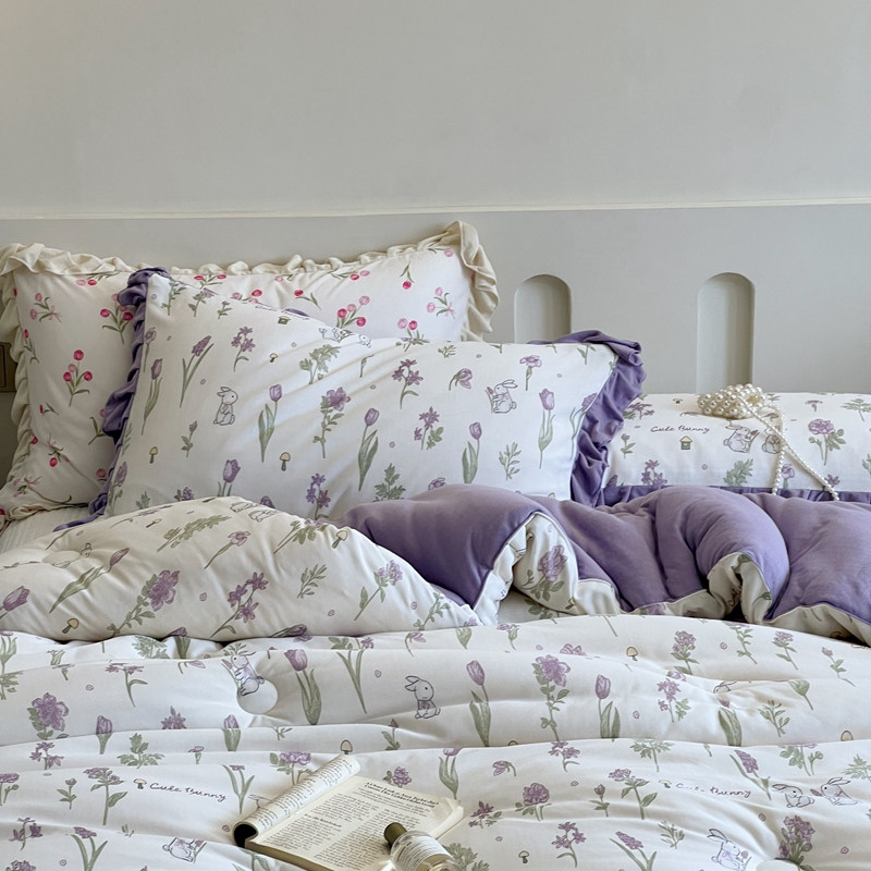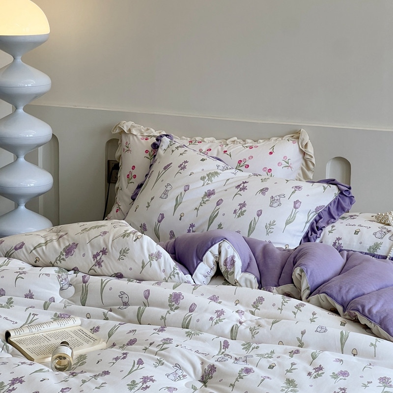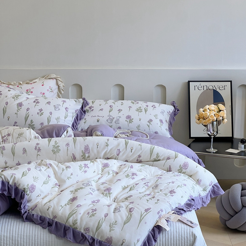(总)安莱生活 2026年新品全棉纯棉小碎花刺绣花边款四件套-小碎花系列,花漾粉,花梦紫,凯特花园,漫语花,泡芙花园