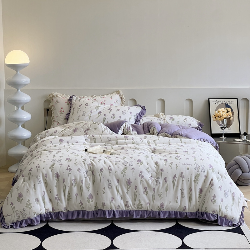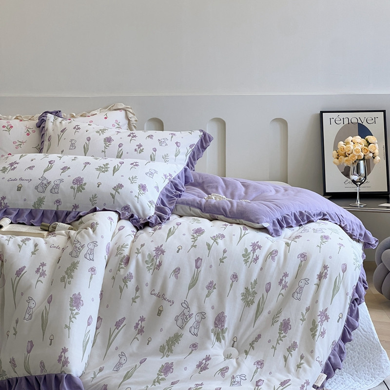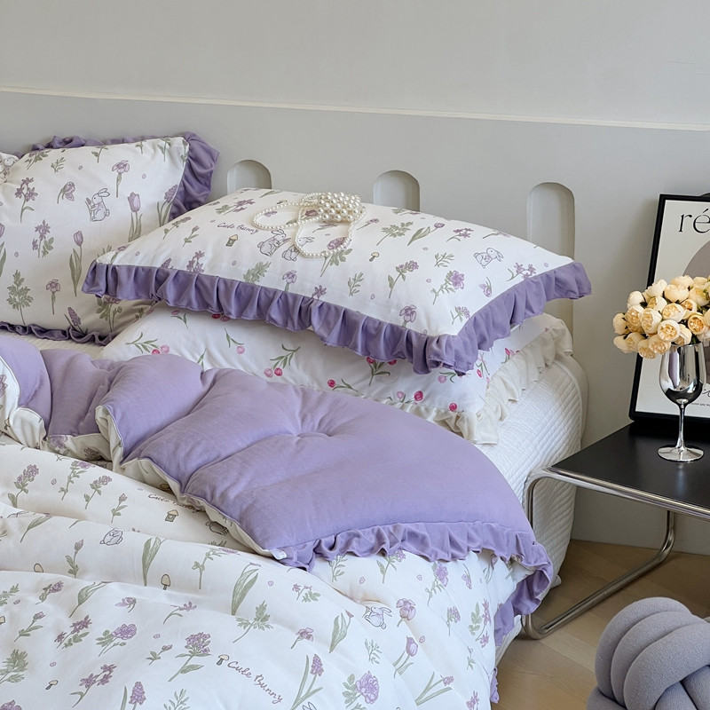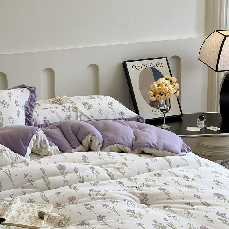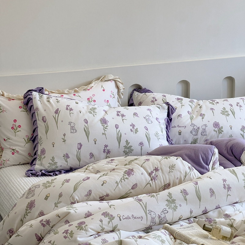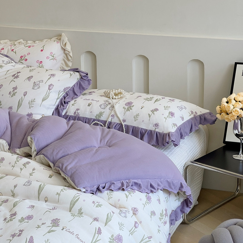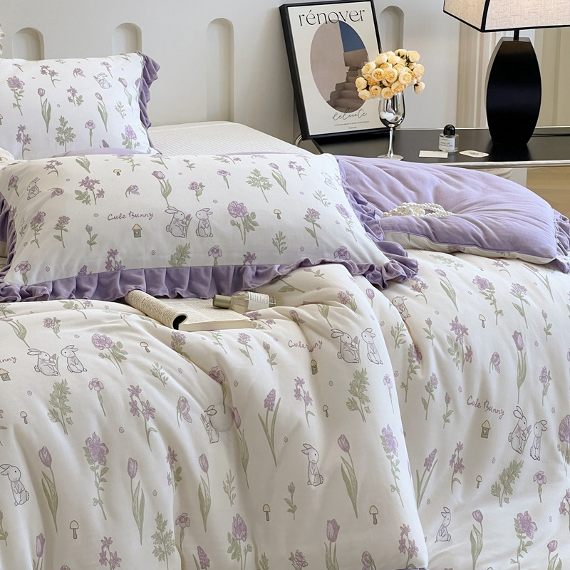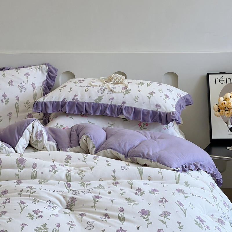 (总)安莱生活 2026年新品全棉纯棉小碎花刺绣花边款四件套-小碎花系列,花漾粉,花梦紫,凯特花园,漫语花,泡芙花园