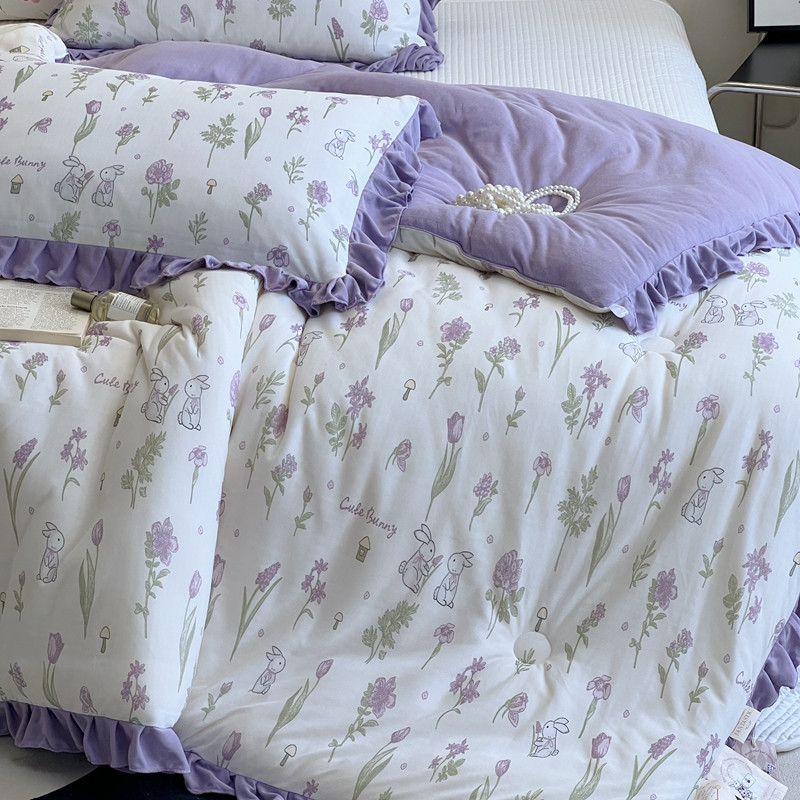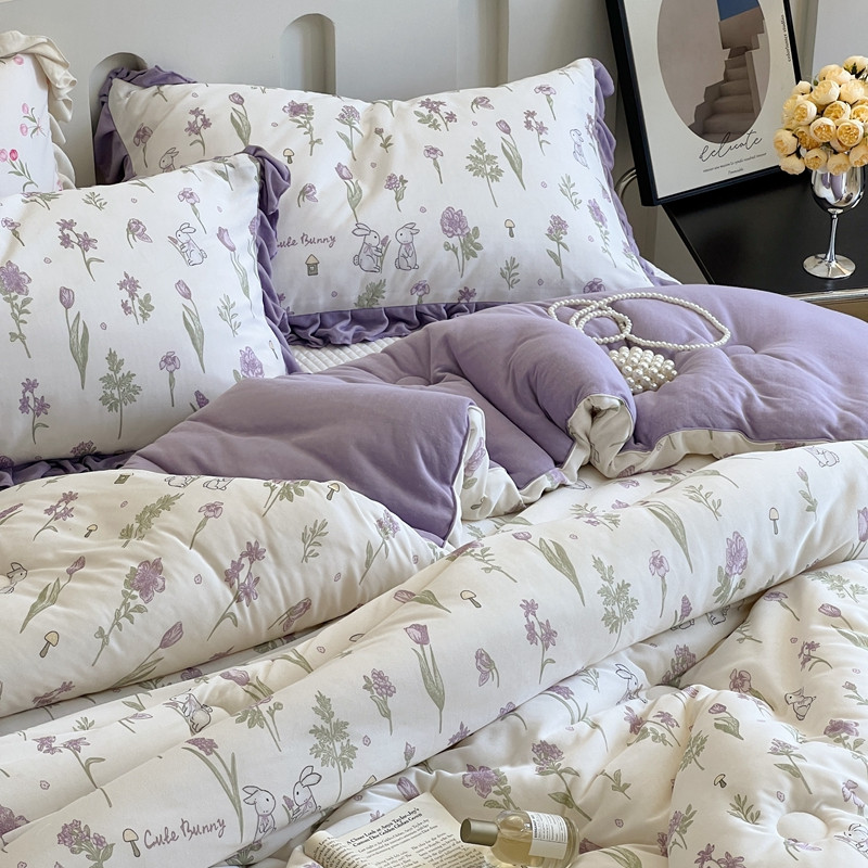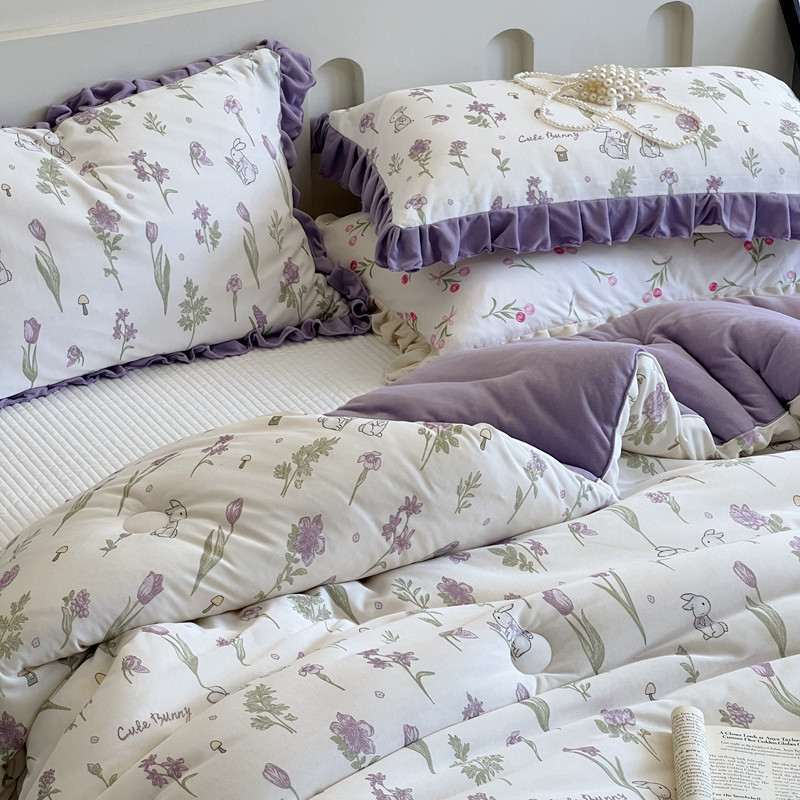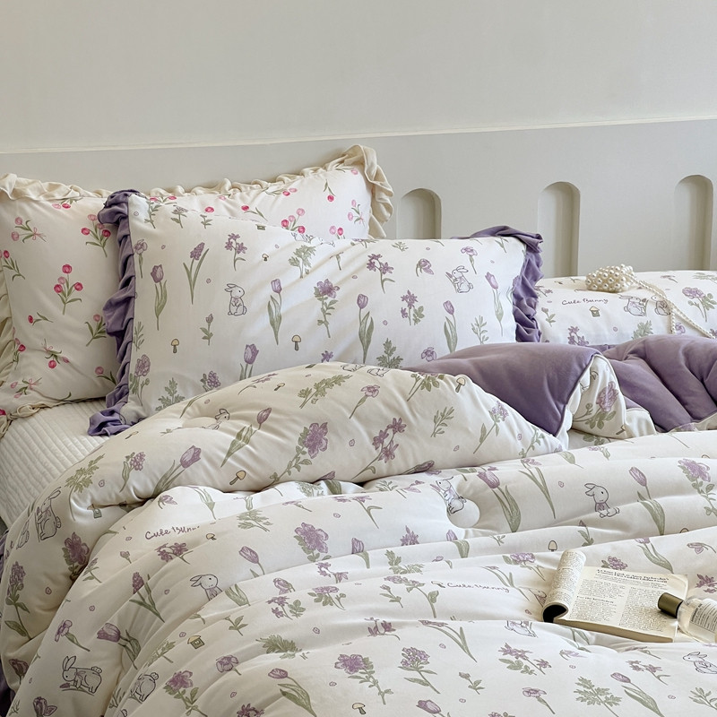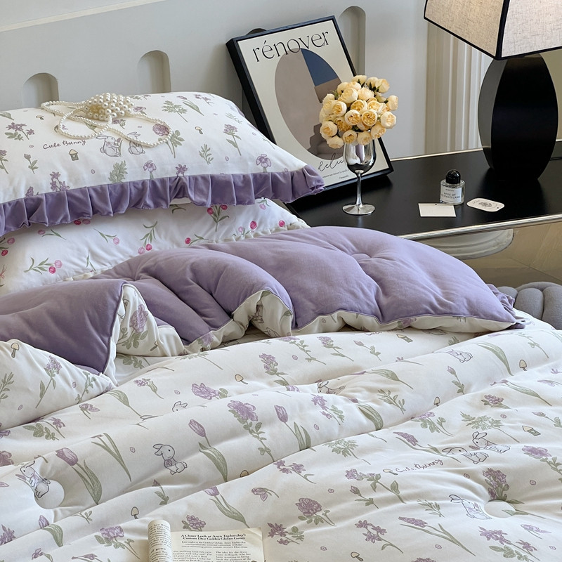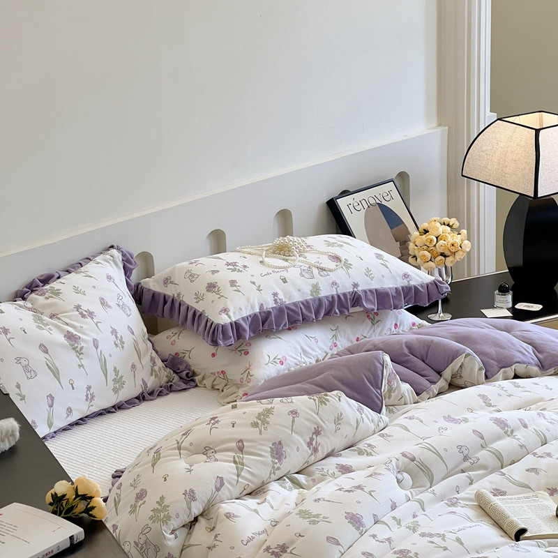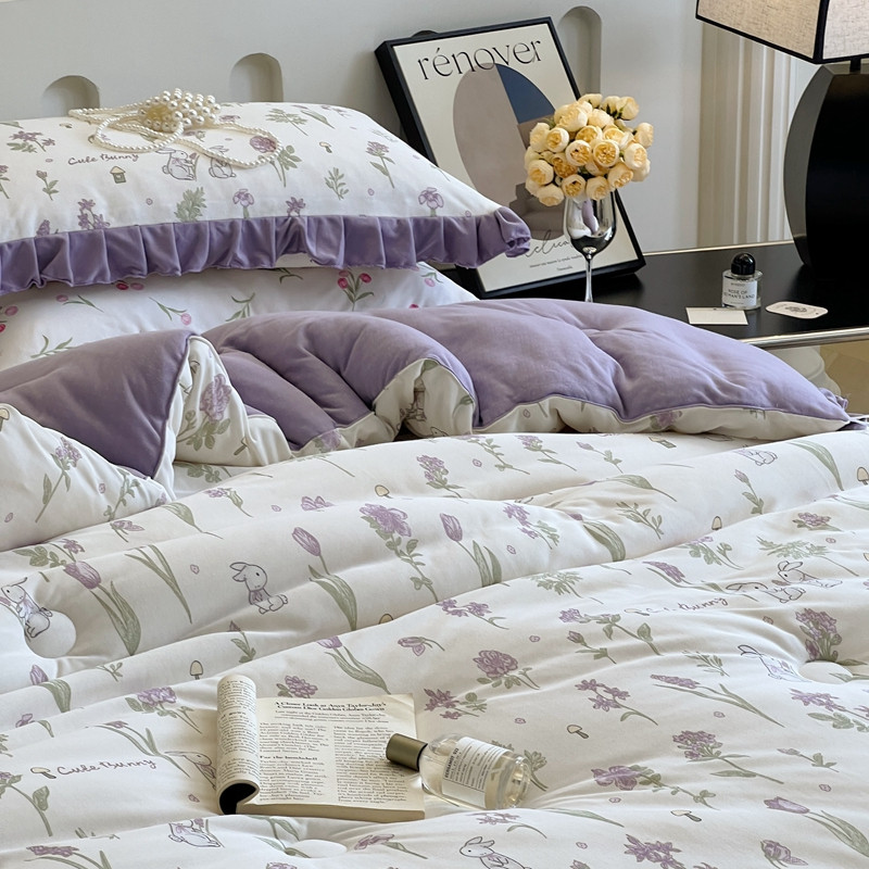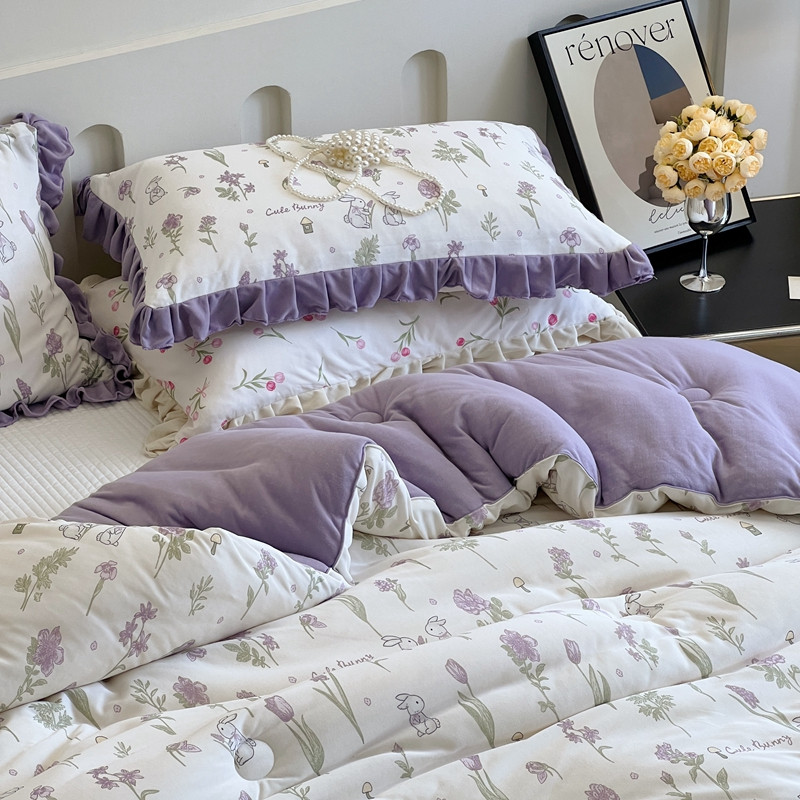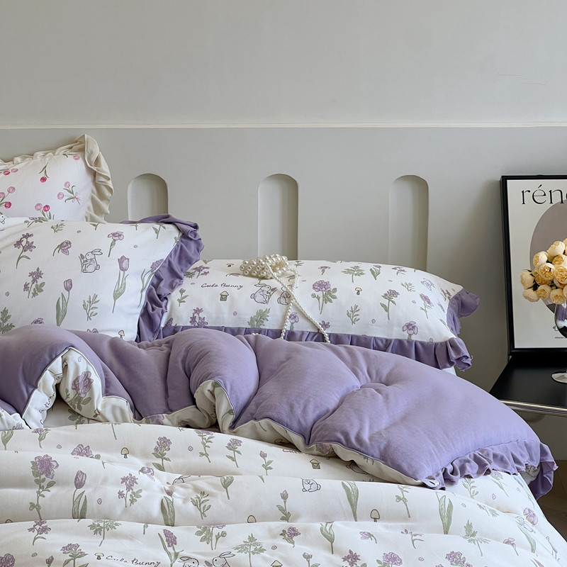 (总)安莱生活 2026年新品全棉纯棉小碎花刺绣花边款四件套-小碎花系列,花漾粉,花梦紫,凯特花园,漫语花,泡芙花园