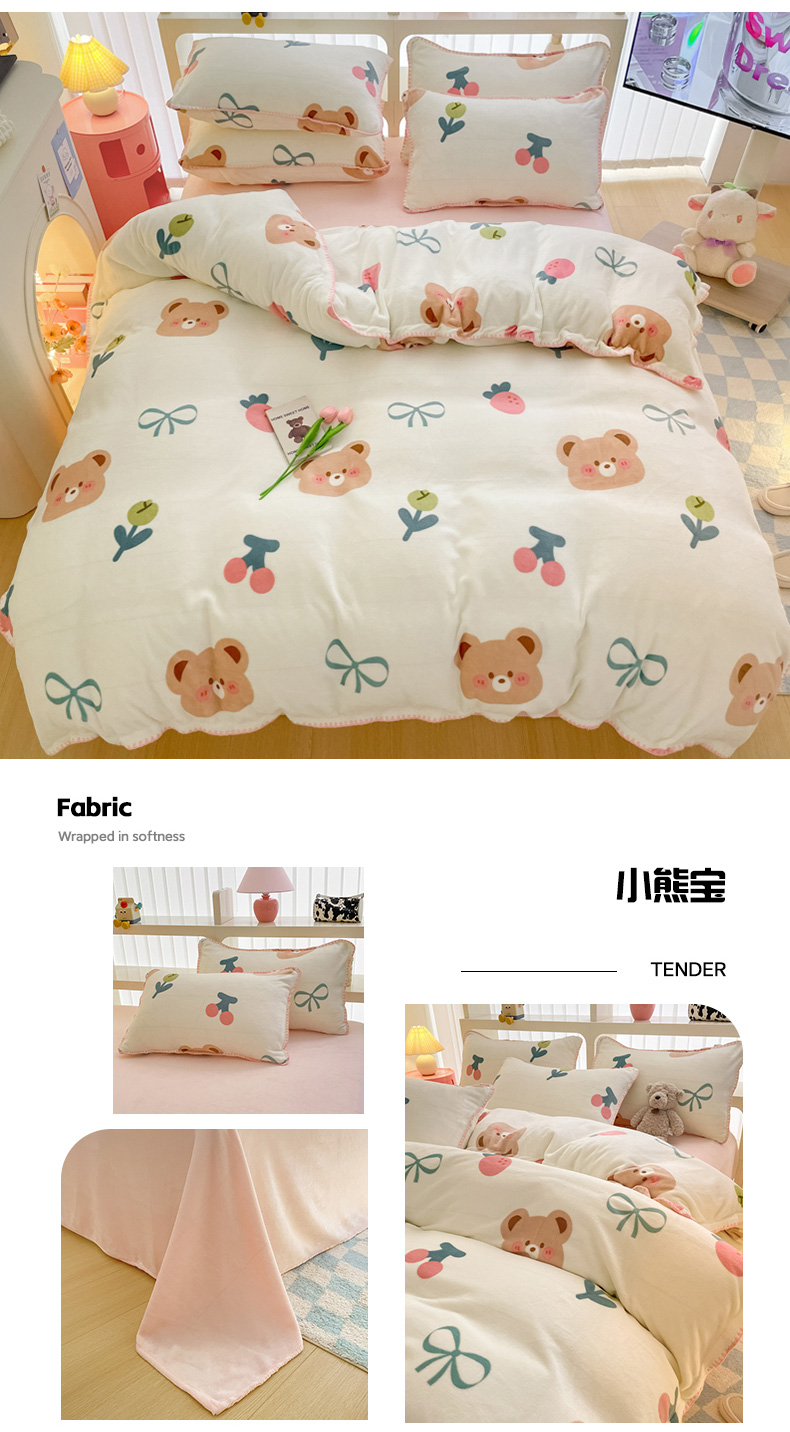 当前位置: 91家纺网 > 商品网购 > 床品套件 > 四件套 > 牛奶绒四件套 > 安哆啦家纺 2024新款牛奶绒三角针四件套 小熊宝