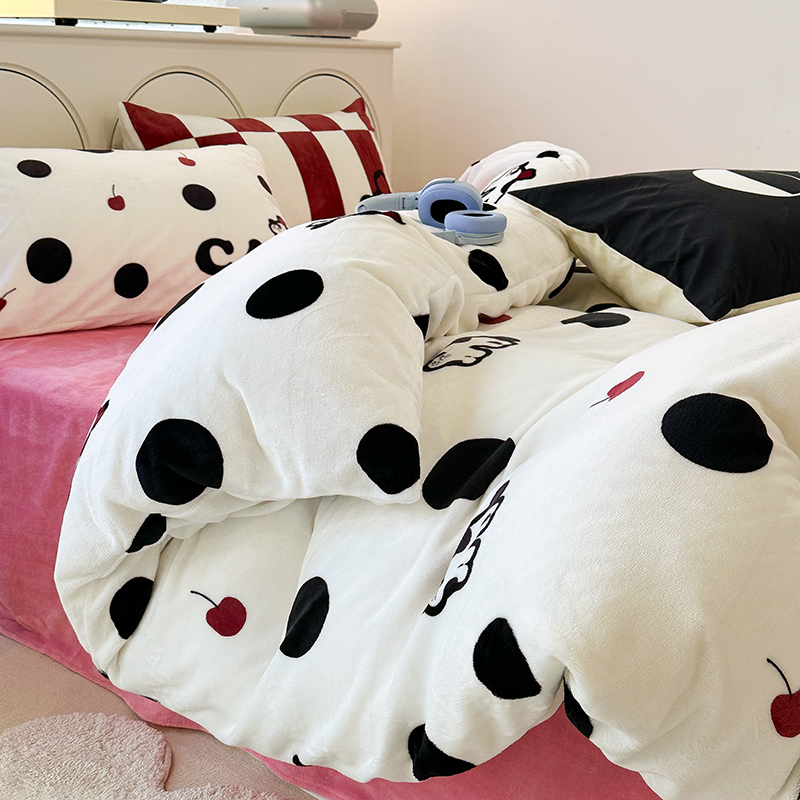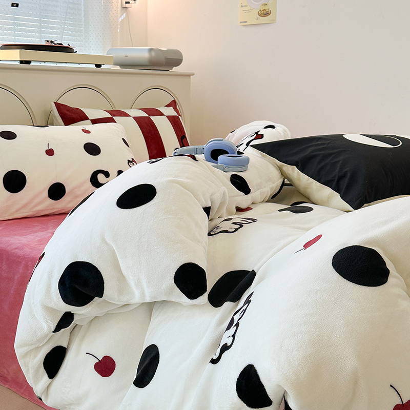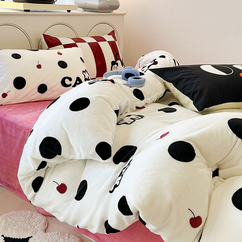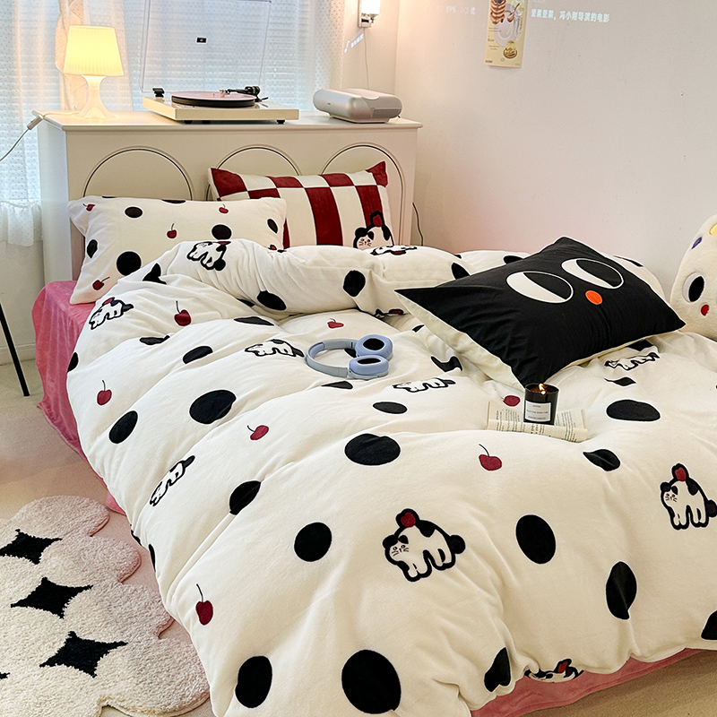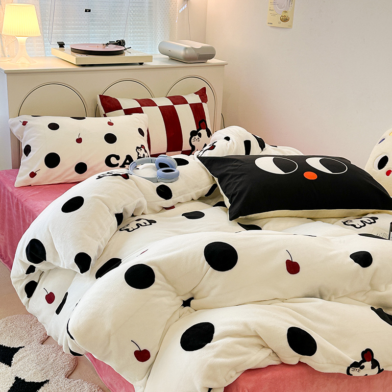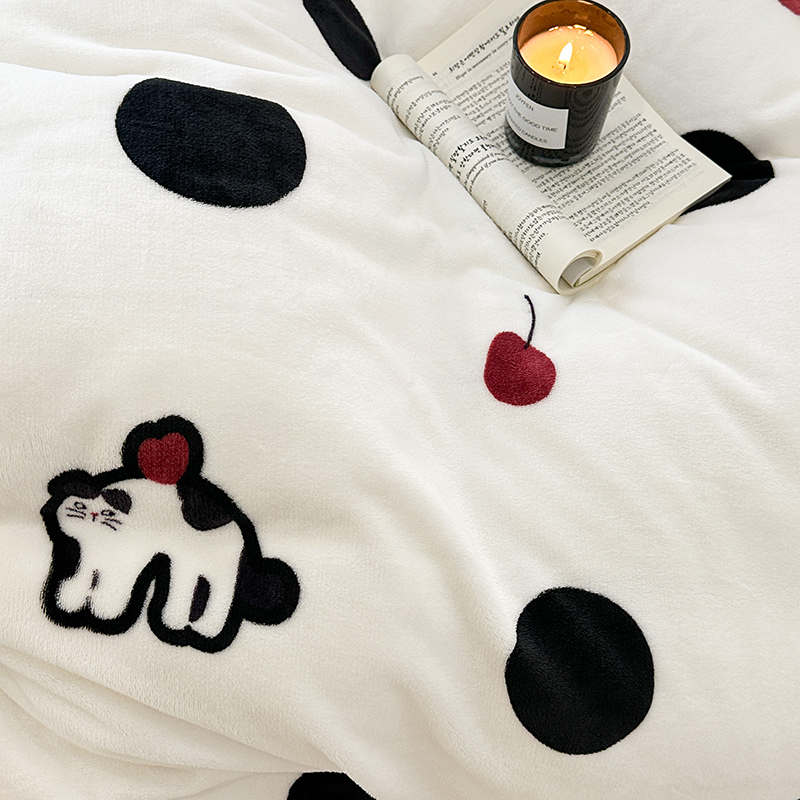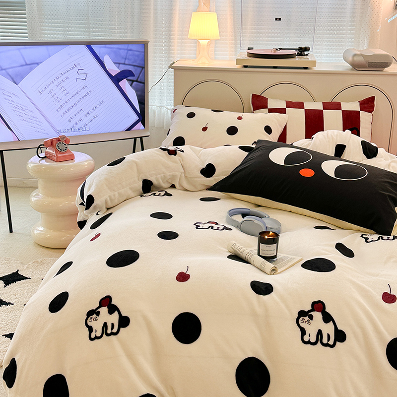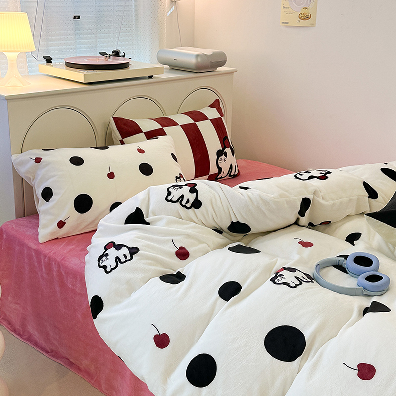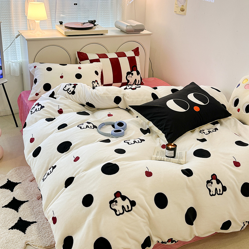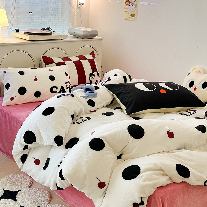 昔可家纺 2023新款大版印花枕套牛奶绒系列四件套 波点猫