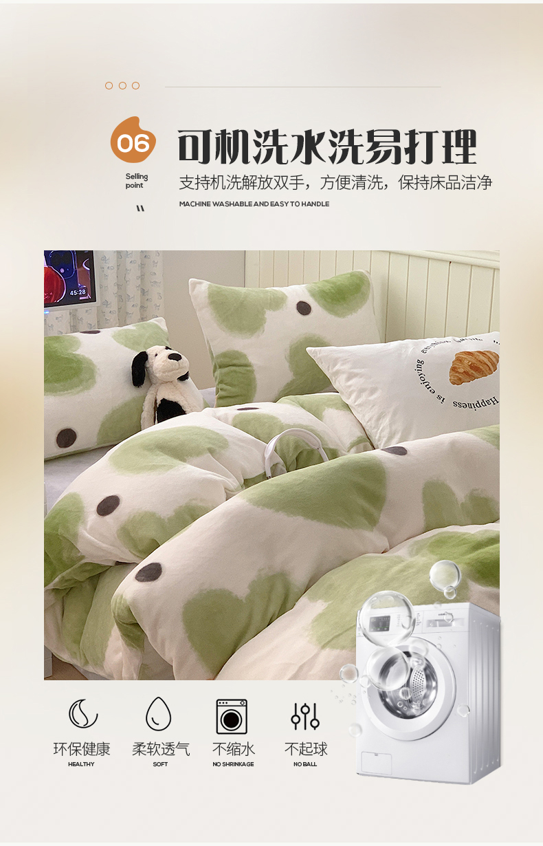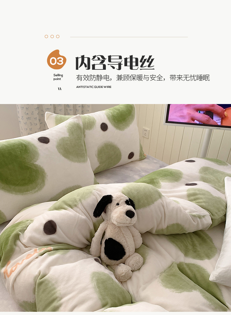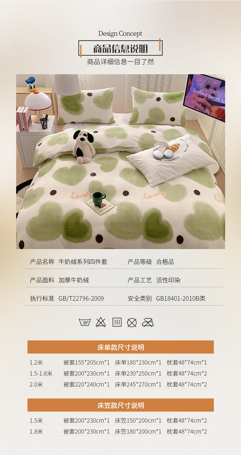 商品名称:桃子家居 2023新款ins简约时尚奶油格子北欧极简加厚牛奶绒四件套 抹茶心语