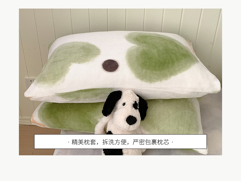 桃子家居 2023新款ins简约时尚奶油格子北欧极简加厚牛奶绒四件套 抹茶心语