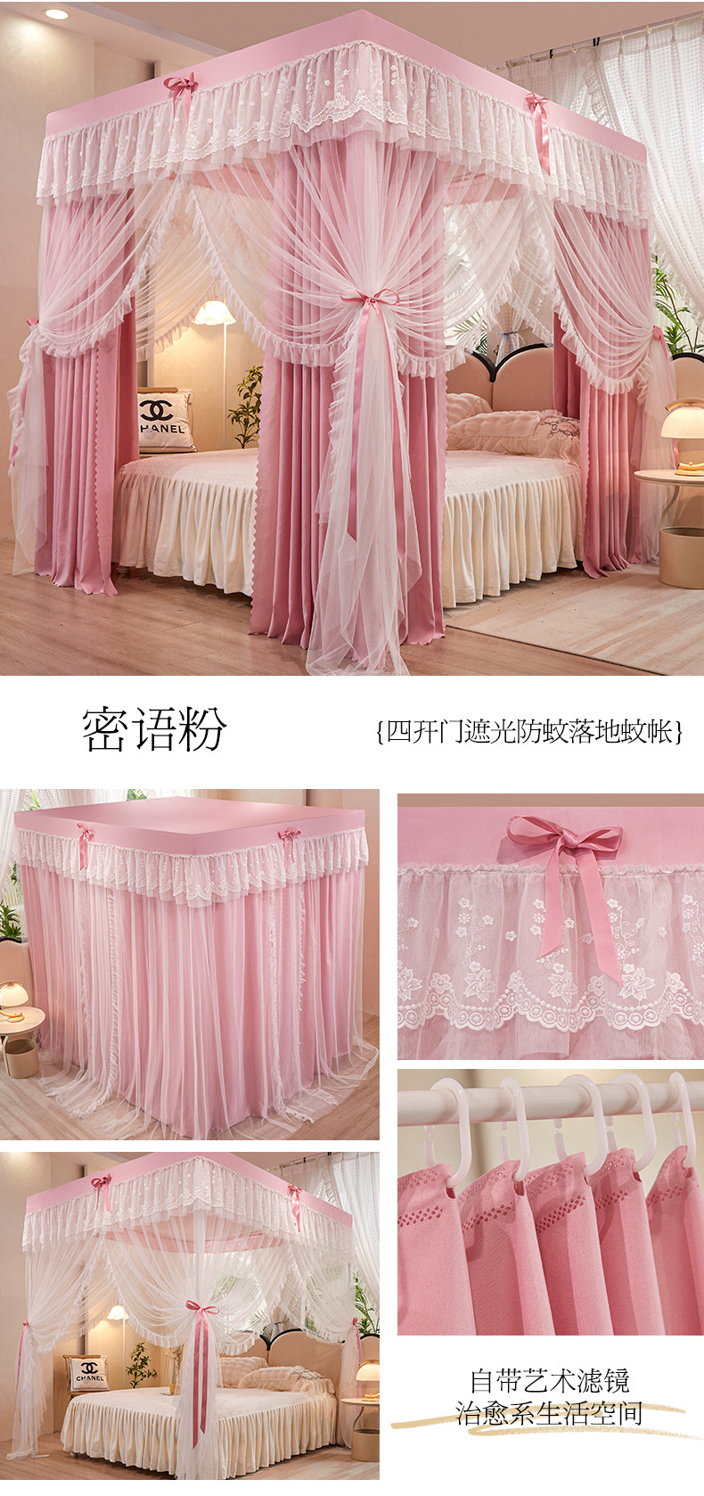 商品名称:艾晶美2023冬季保暖蚊帐双层床帘蚊帐四开门落地宫廷蚊帐4季款 密语粉