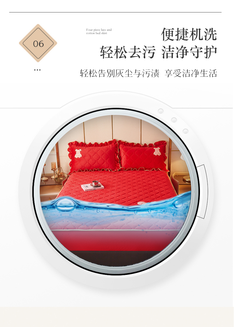 (总)屹成 2024新款水洗棉蕾丝四季款床笠床裙单品套件-床裙三件套,粉玉,豆沙,粉红,大红,橄榄绿,卡其,玫红,浅紫,水绿,天蓝,银灰